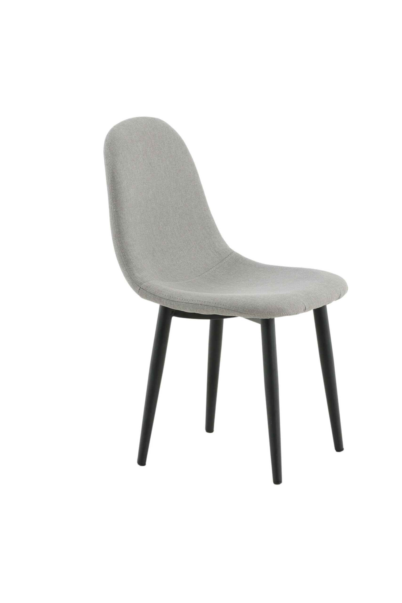 Täielikult riietatud disainiga laste söögitool, mille jalad on musta pulbervärvitud metallist ning mille seljatugi ja iste on kergelt ümardatud hallist sametkangast. Vajalik on kergem montaaž.