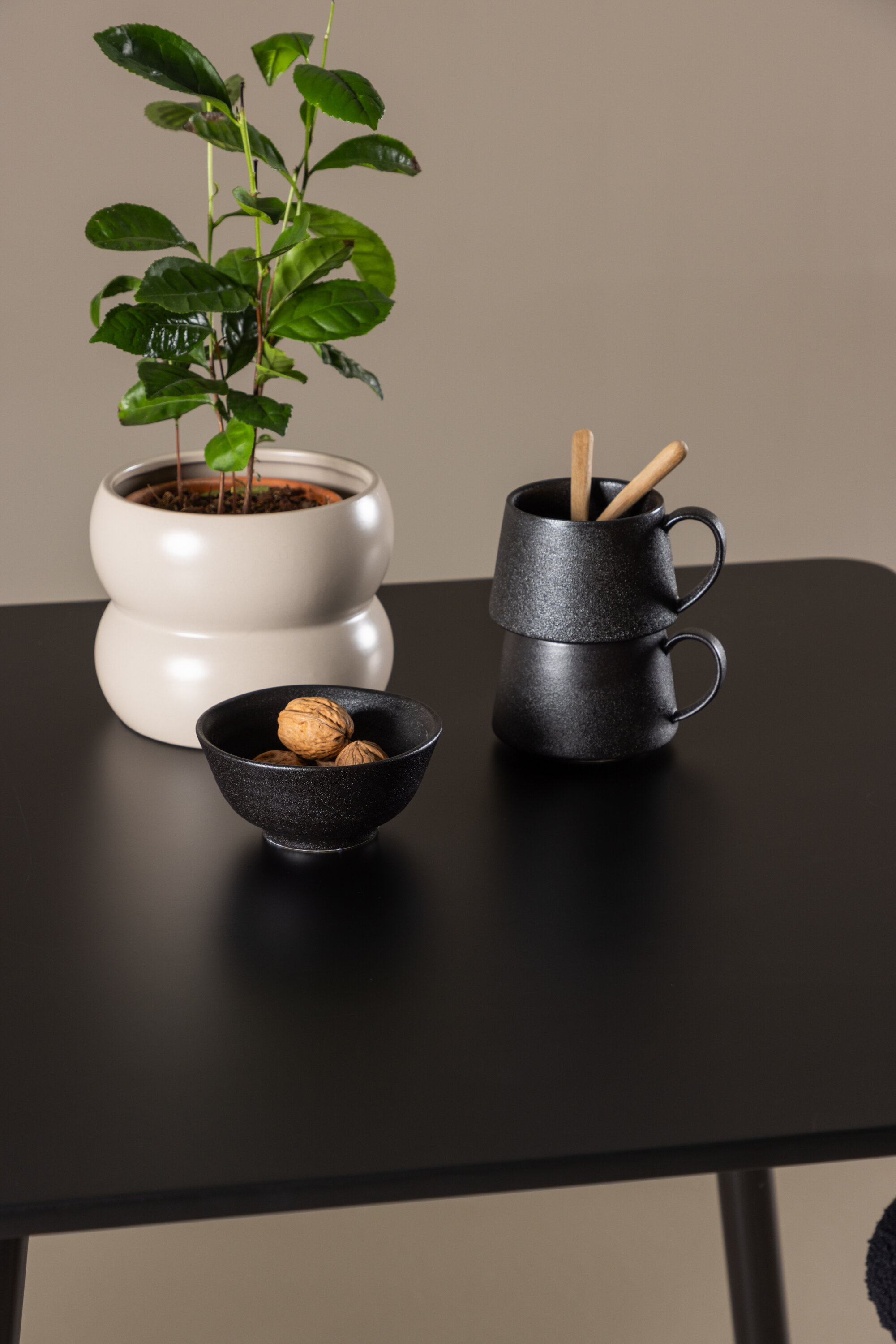 Looge kaasaegne ja kutsuv söögituba meie stiilse söögikomplektiga, mis ühendab elegantse Polari laua mugavate Modesto toolidega. See söögikomplekt, mis sobib ideaalselt nii väikesteks eineteks kui ka õdusateks õhtusöökideks, loob teie söögitoale või köögile peene ja harmoonilise atmosfääri. MDF-st valmistatud Polari laual on elegantne must värv, mis lisab teie kodule modernse ja elegantse tunde. Laua mõõtmed on 75×75 cm ning see pakub kompaktset, kuid avarat pinda toidu ja vestluste jaoks, mistõttu on see ideaalne väiksematesse ruumidesse või intiimsetesse söögikohtadesse. Laua tugev konstruktsioon tagab pikaajalise kasutamise ja stabiilsuse. Kaks Modesto tooli täiendavad lauda suurepäraselt oma elegantsete musta polüesterkarussiga polsterdatud istmetega. Need toolid pakuvad nii mugavust kui ka stiili, mistõttu on need ideaalsed pikkadeks ja nauditavateks söögikordadeks. Nende kaasaegne disain koos kõrgete seljatugede ja pehmete istmetega annab teie söögitoale või köögile rafineeritud ja kaasaegse ilme. See söögikomplekt on täiuslik kombinatsioon esteetikast ja funktsionaalsusest, mistõttu on see suurepärane valik neile, kes otsivad elegantset ja mugavat väiksemas formaadis söögituba. Täiustage oma kodu Polari laua ja Modesto toolide kombinatsiooniga ning looge koht, kus jagatakse mälestusi ja rõõmu.