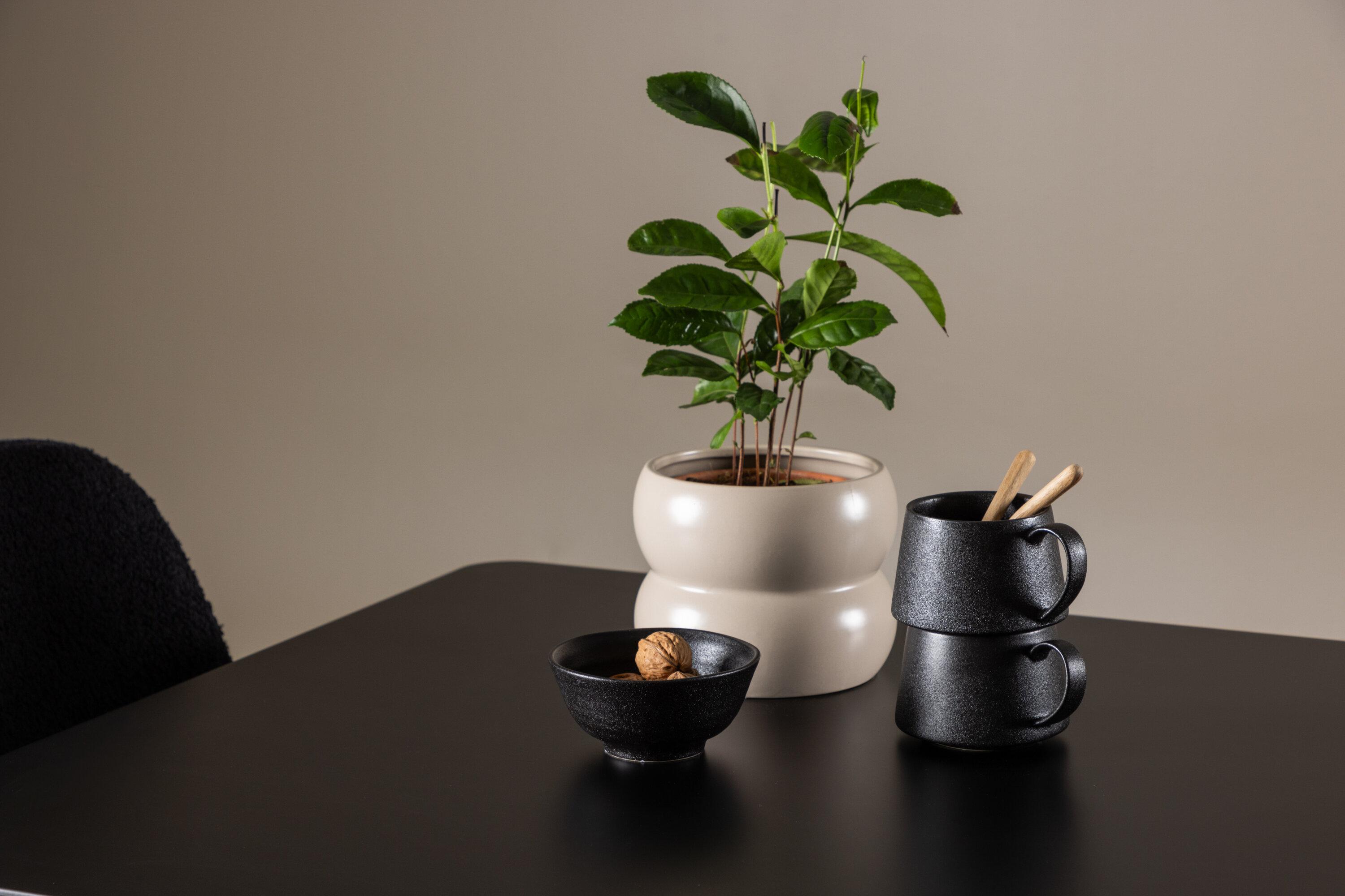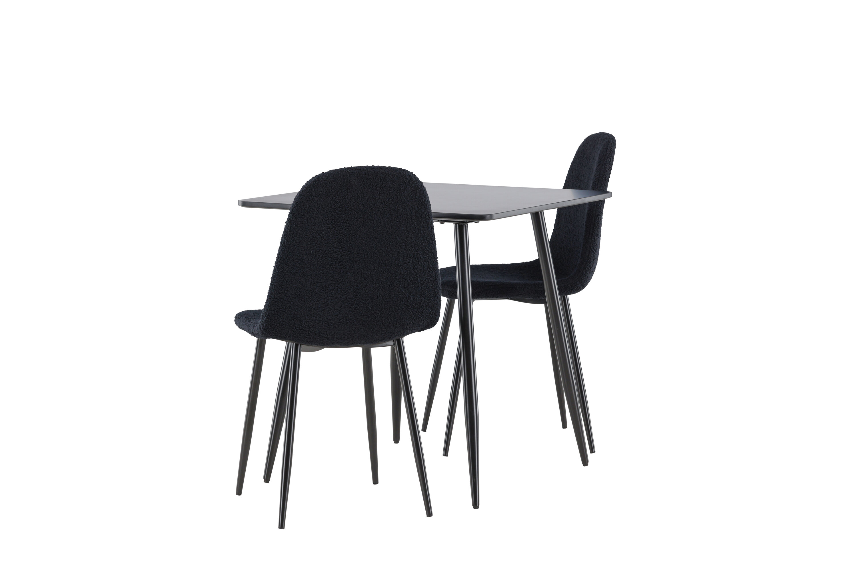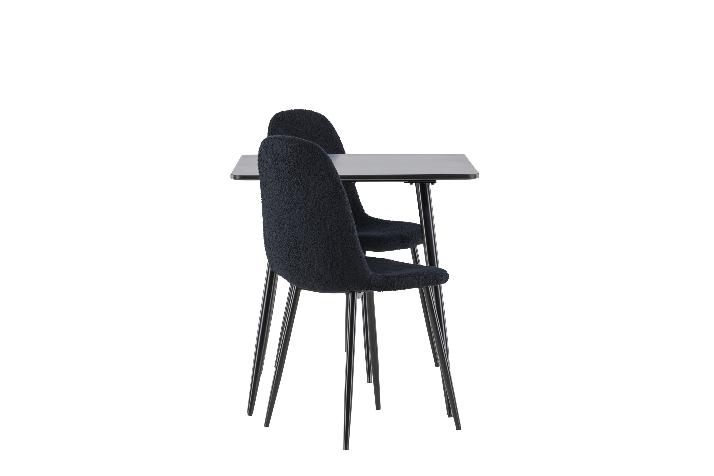 Looge elegantne ja kutsuv söögituba meie elegantse söögikomplektiga, mis ühendab kaasaegse Polari laua mugavate Polari toolidega. See söögikomplekt, mis sobib ideaalselt nii väikesteks eineteks kui ka õdusateks õhtusöökideks, loob teie söögitoale või köögile peene ja harmoonilise atmosfääri. MDF-st valmistatud Polari laual on elegantne must värv, mis lisab teie kodule modernse ja elegantse tunde. Laua mõõtmed on 75×75 cm ning see pakub kompaktset, kuid avarat pinda toidu ja vestluste jaoks, mistõttu on see ideaalne väiksematesse ruumidesse või intiimsetesse söögikohtadesse. Laua tugev konstruktsioon tagab pikaajalise kasutamise ja stabiilsuse. Kaks Polari tooli täiendavad lauda suurepäraselt oma elegantsete musta polüesterkarussiga polsterdatud istmetega. Need toolid pakuvad nii mugavust kui ka stiili, mistõttu on need ideaalsed pikkadeks ja nauditavateks söögikordadeks. Nende kaasaegne disain koos kõrgete seljatugede ja pehmete istmetega annab teie söögitoale või köögile rafineeritud ja kaasaegse ilme. See söögikomplekt on täiuslik kombinatsioon esteetikast ja funktsionaalsusest, mistõttu on see suurepärane valik neile, kes otsivad elegantset ja mugavat väiksemas formaadis söögituba. Täiustage oma kodu Polari laua ja Polari toolide kombinatsiooniga ning looge koht, kus jagatakse mälestusi ja rõõmu.