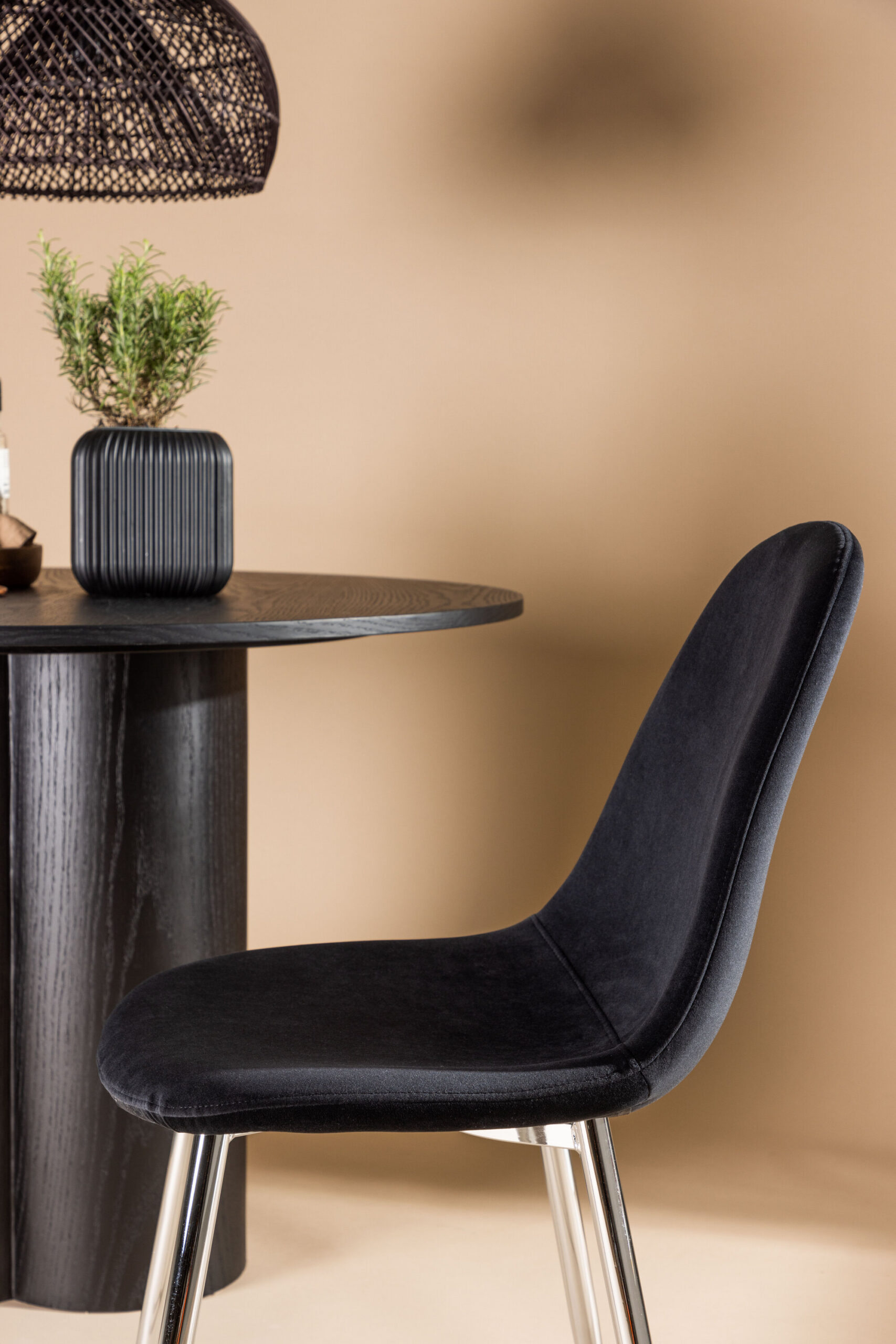 Luksuslikus vaimus elegantne söögitool! Polaril on täielikult riietatud disain, kroomitud metallist luud, kergelt ümardatud seljatugi ja iste, mis on valmistatud sihvakast mustast sametkangast ja pehme polstriga lisamugavuse tagamiseks. Siin ei pea te mugavuse ja disaini vahel järeleandmisi tegema. Sobitage mõne meie stiilse söögilauaga ja saate tervikliku toidugrupi kodu südamesse!