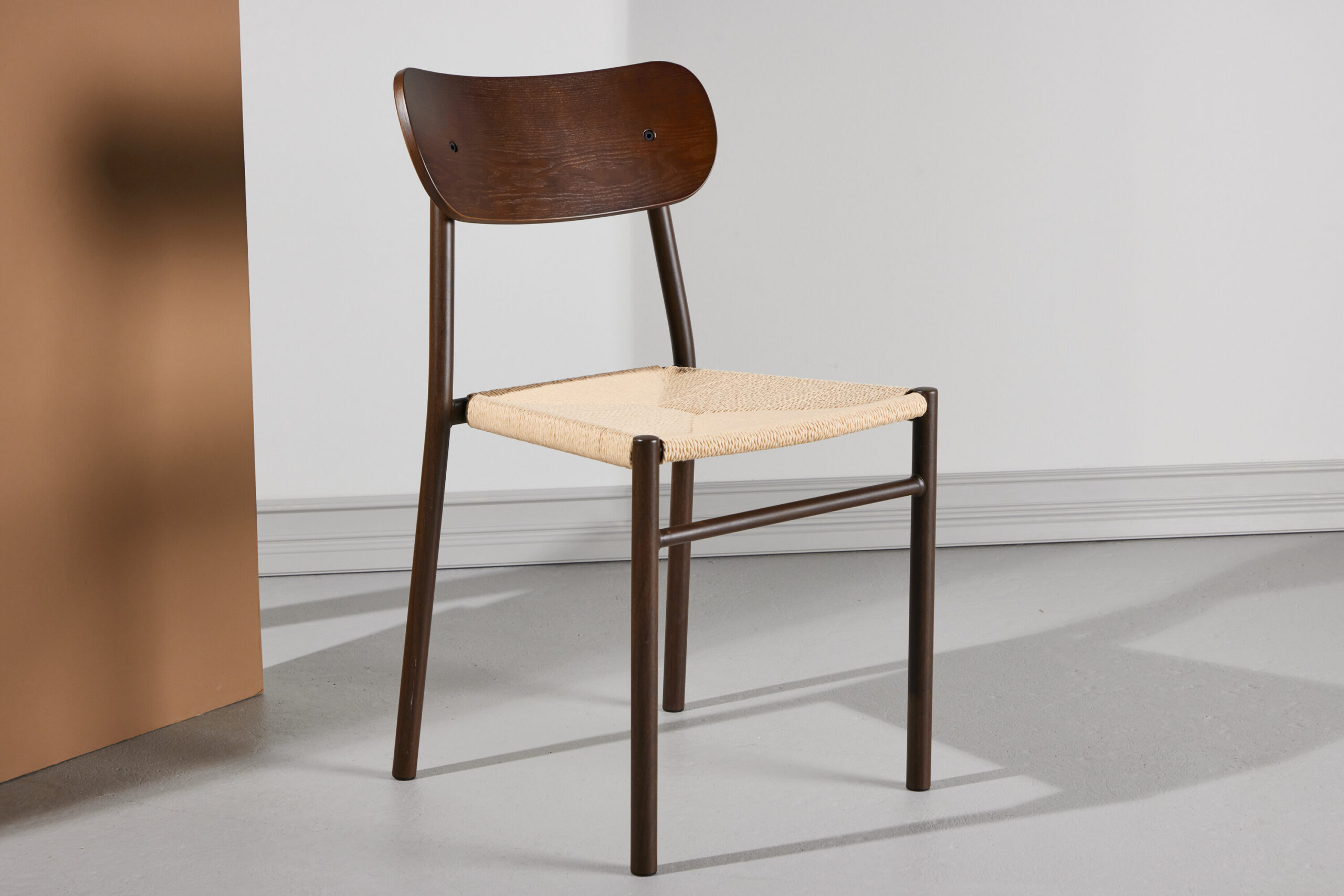 Tutvustame Pollyt – söögitooli, mis ühendab stiili ja meisterlikkuse kaasaegses väljenduses. Selle pruunist metallist ja vineerist raamiga pakub see sooja ja maalähedast alust, samal ajal kui kootud beež nööriistme lisab kergust ja tekstuuri. Värvikombinatsioon on ühtaegu peen ja kutsuv – ideaalne tasakaalustatud ja läbimõeldud söögiruumi loomiseks. Polly on midagi enamat kui lihtsalt tool – see on laua disainilahendus.