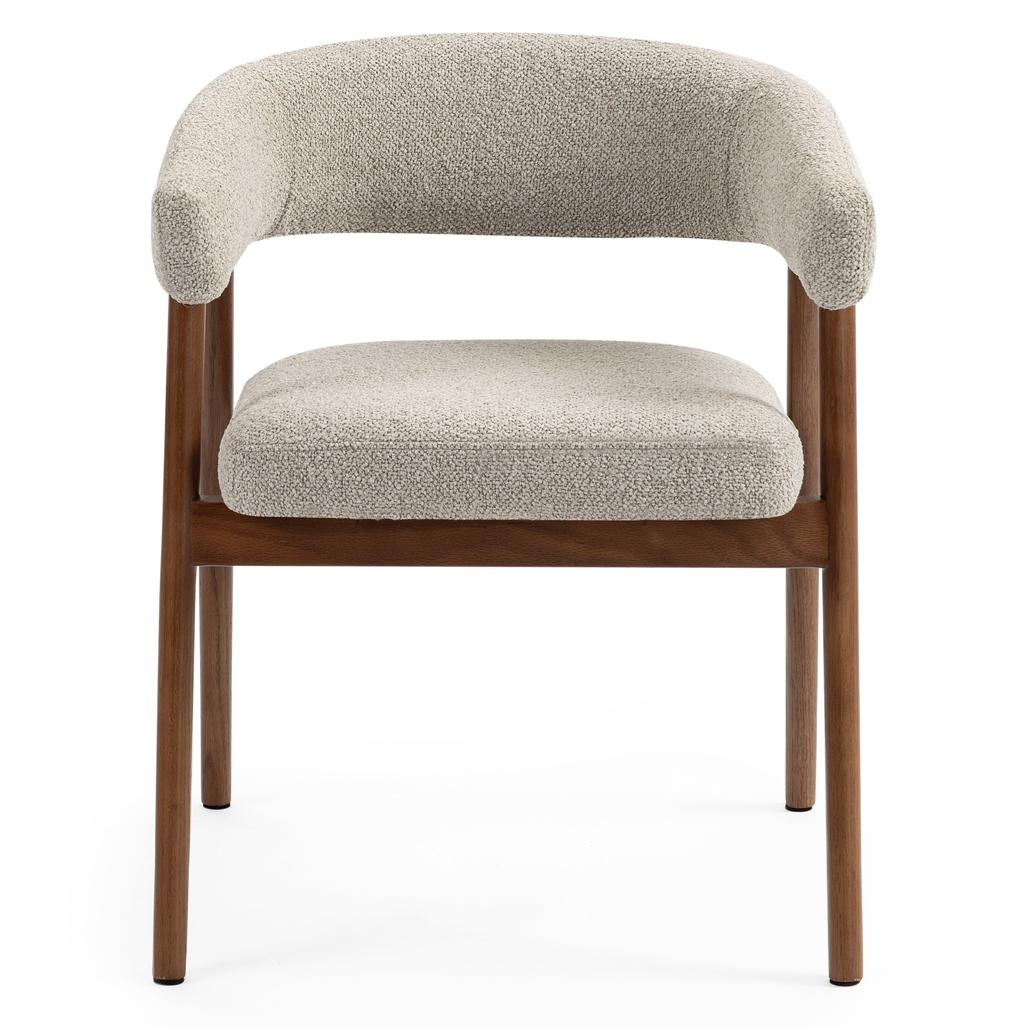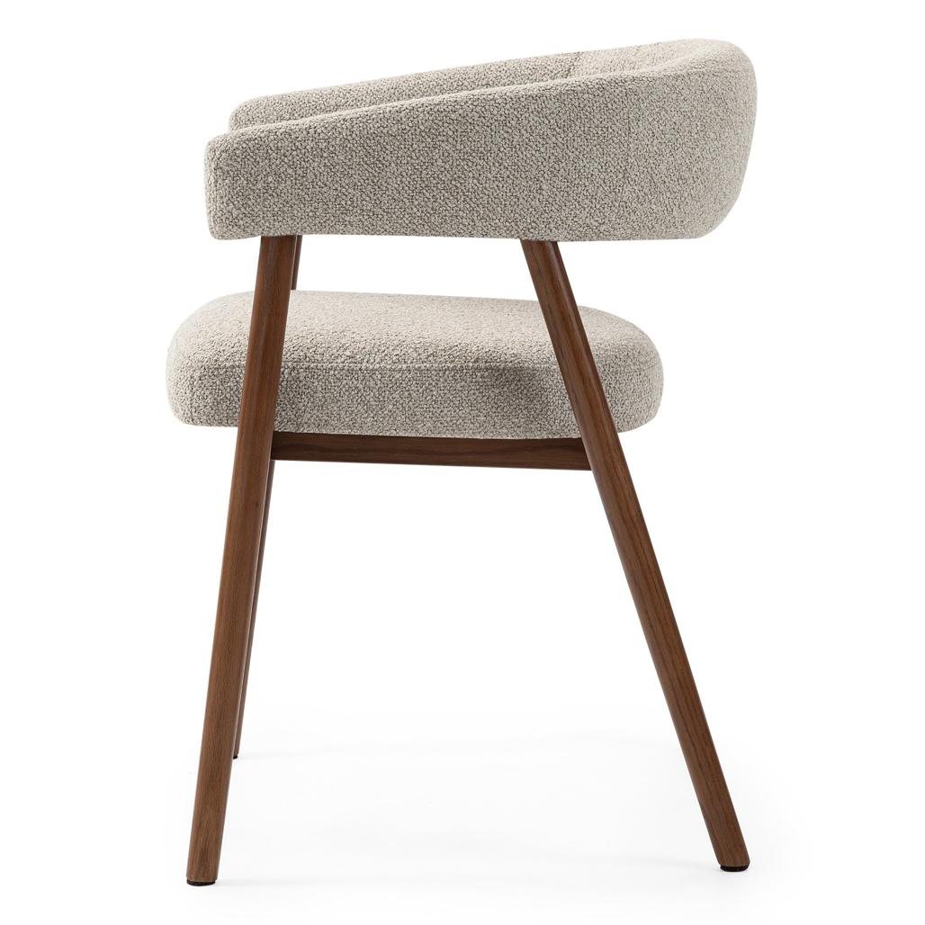 MUE tool ühendab mugavuse ja stiili muutes selle ideaalseks täienduseks igale interjöörile. Selle pehme helepruun polster lisab peent võlu tuues teie ruumi soojust ja harmooniat. Ümarad vormid mitte ainult ei rõhuta selle modernset disaini vaid tagavad ka mugavuse kasutamise ajal. Pähklipuu viimistlusega tammepuidust jalad pakuvad vastupidavust ja stabiilsust tagades tooli pikaealisuse. Ideaalne söögitubade elutubade või kodukontorite jaoks sobitudes sujuvalt mitmesuguste interjööridega. Praktiline elegantne ja ajatu valik mis ühendab esteetika funktsionaalsusega. Omadused: Polsterdus pehmest helepruunist kangaga; Täistammepuidust konstruktsioon; Pähklipuu viimistlusega puidust jalad; Ümar seljatugi. Tähelepanu: Minimaalne ost: 2 tk. Mõõtmed: Kõrgus: 73 5 cm; Laius: 59 cm; Sügavus: 55 cm; Istme kõrgus: 48 cm; Istme laius: 51 cm; Istme sügavus: 46 5 cm.