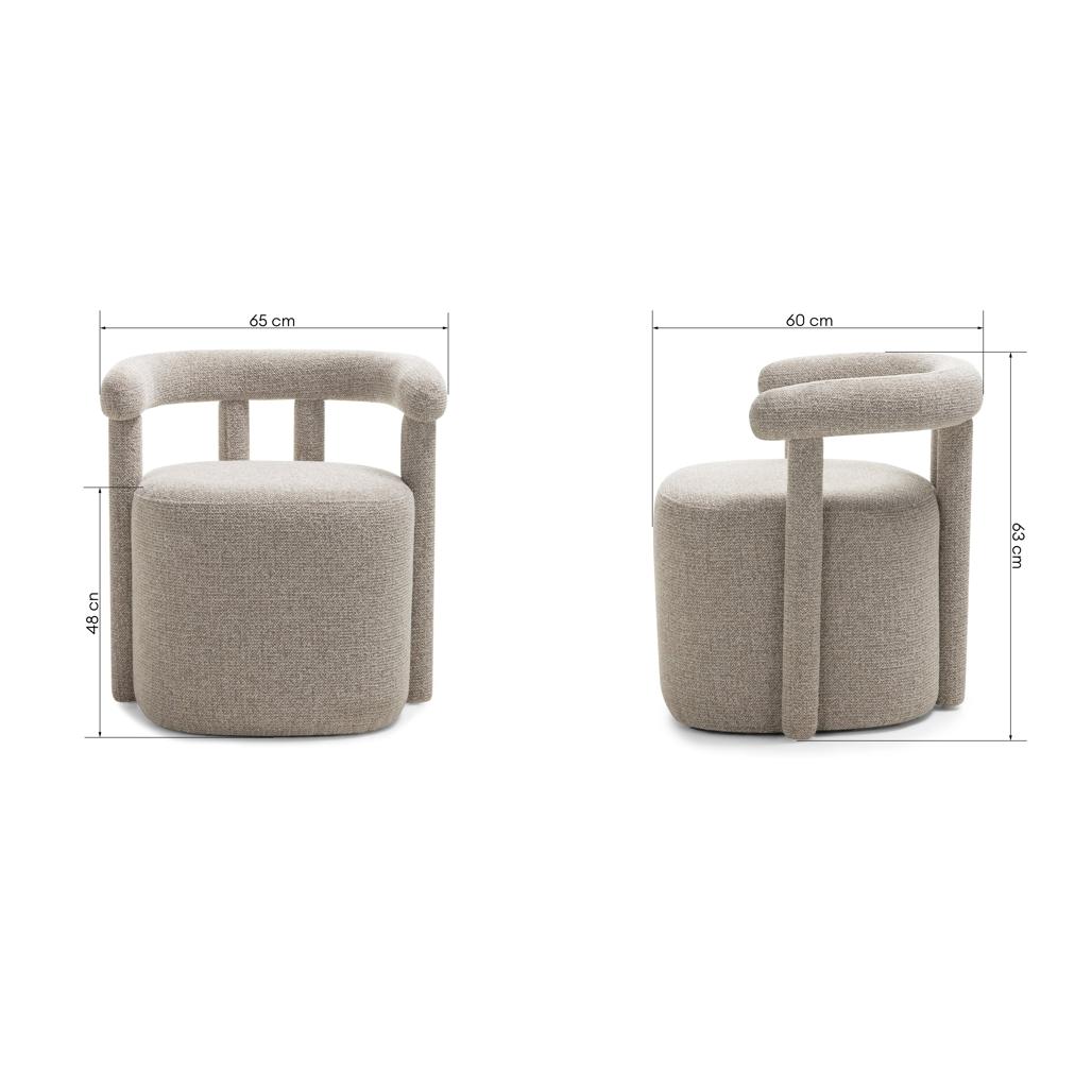 Polsterdatud tugitool NOLAN hall ümarad kujundid
