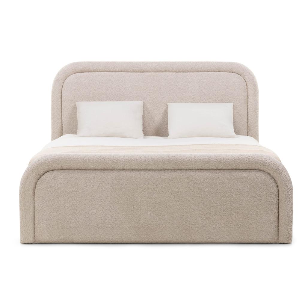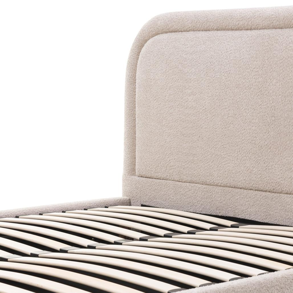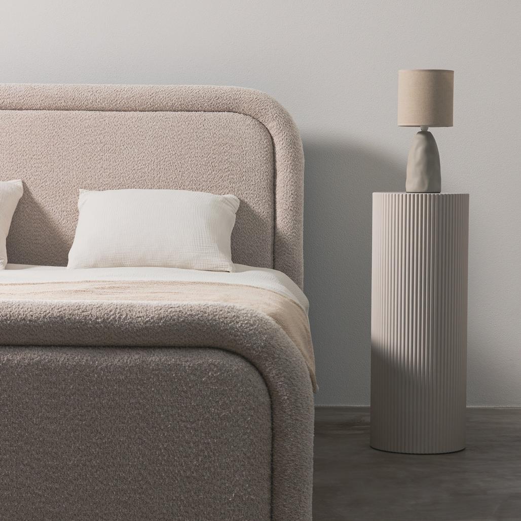 Polsterdatud voodi 140×200 cm LORENZ raami ja panipaigaga ümar beež