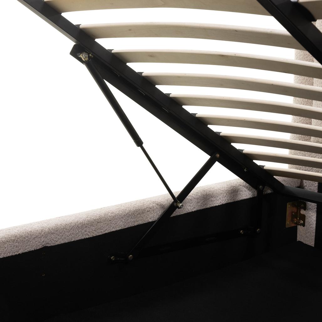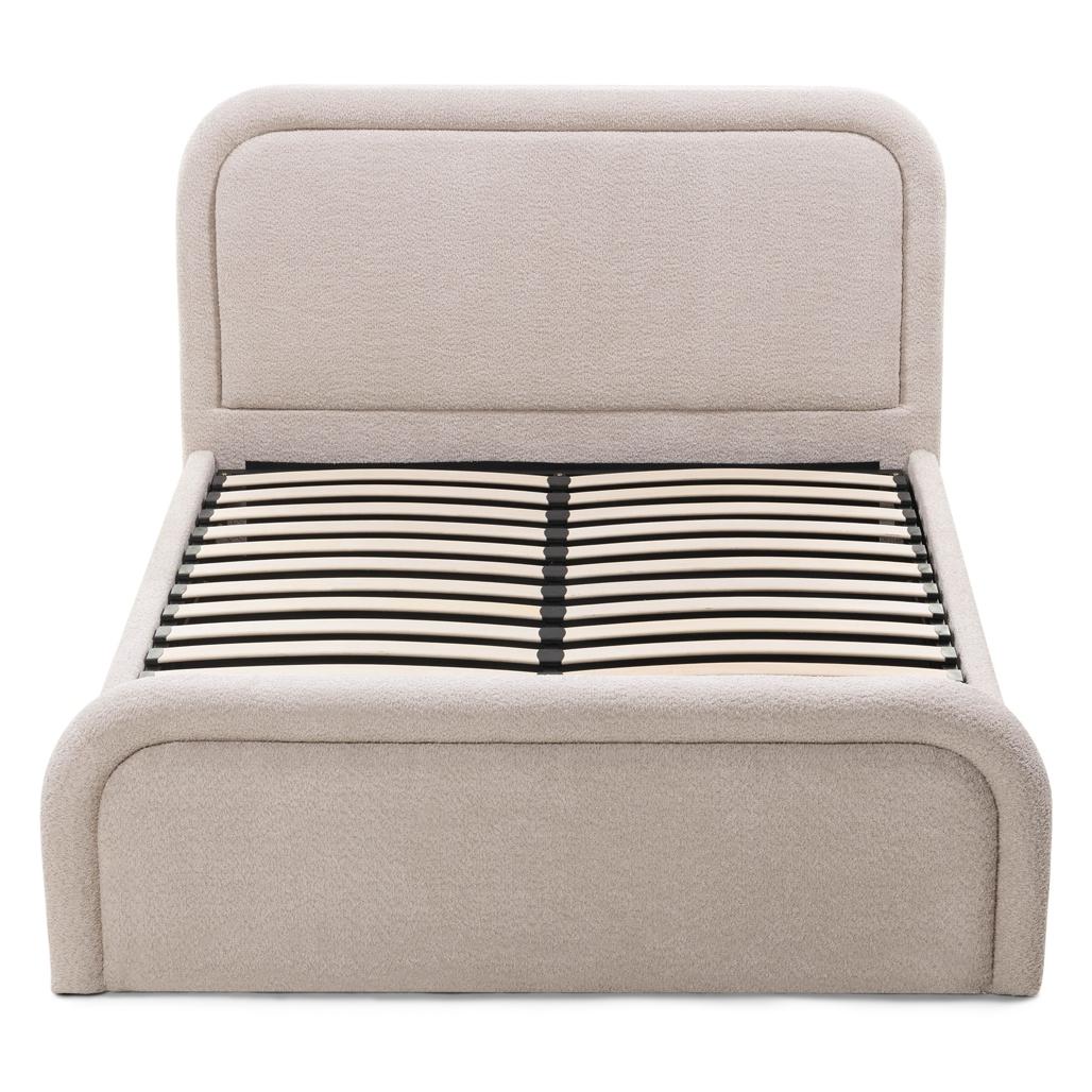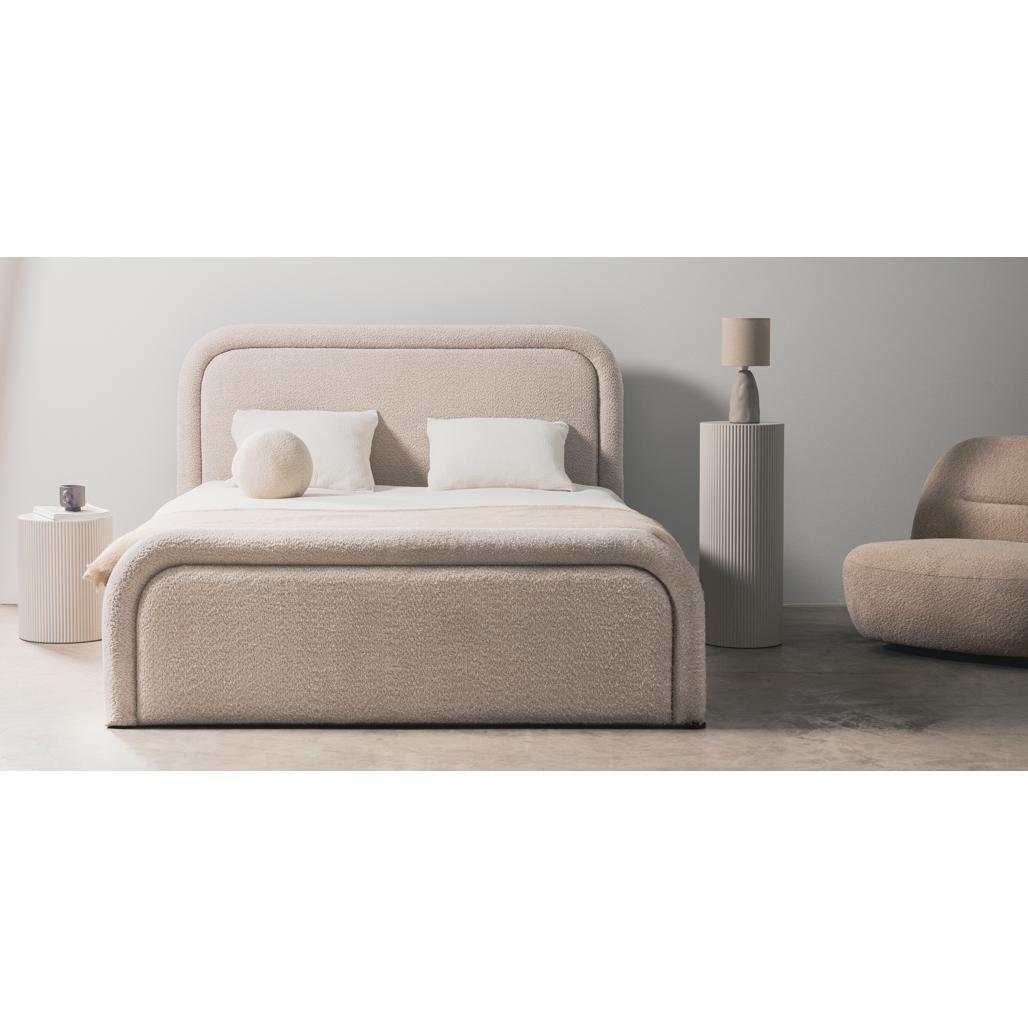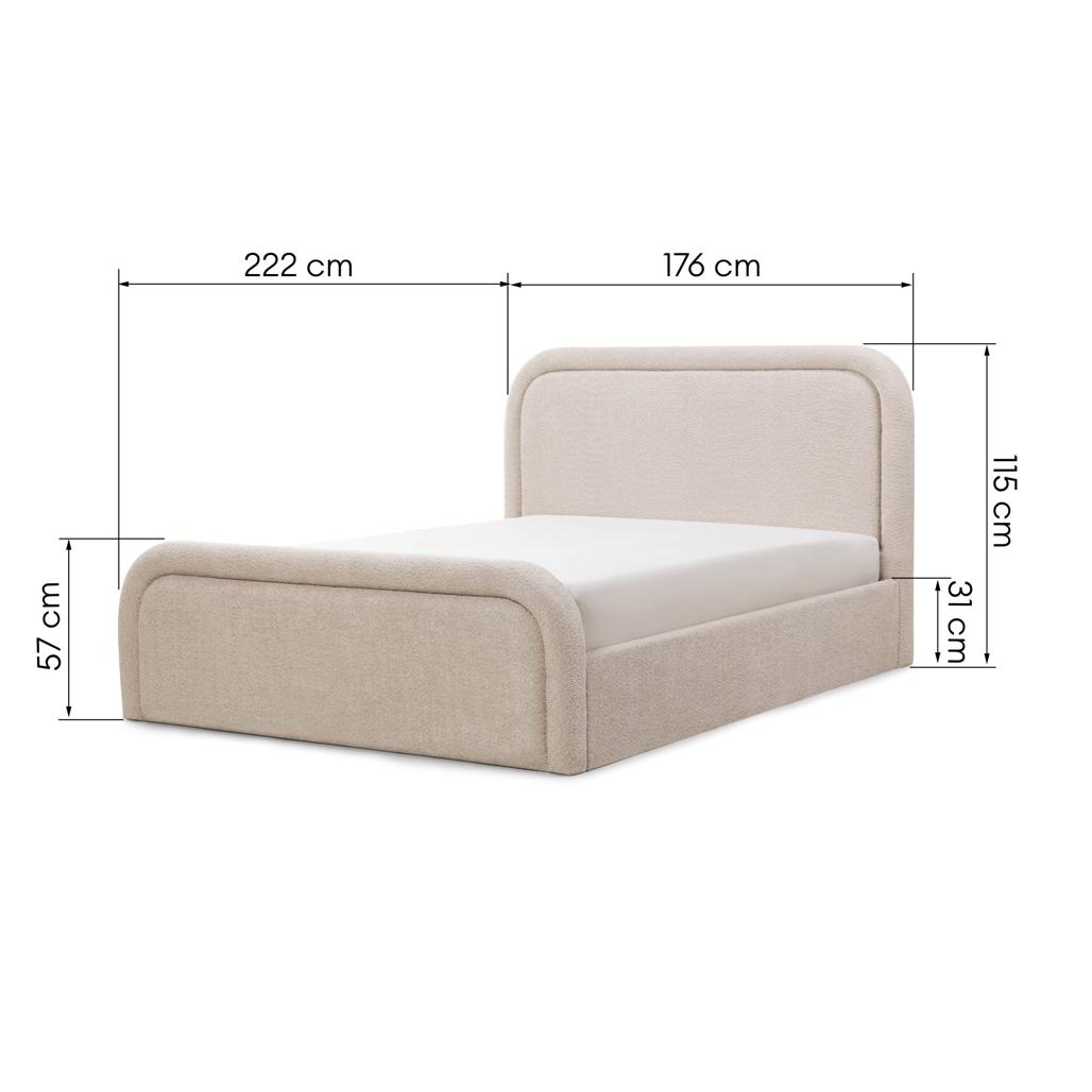 Polsterdatud voodi 160×200 cm LORENZ raami ja panipaigaga ümar beež