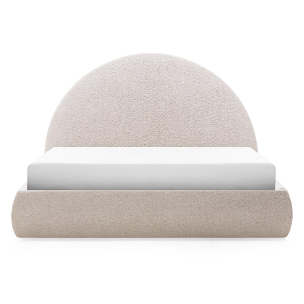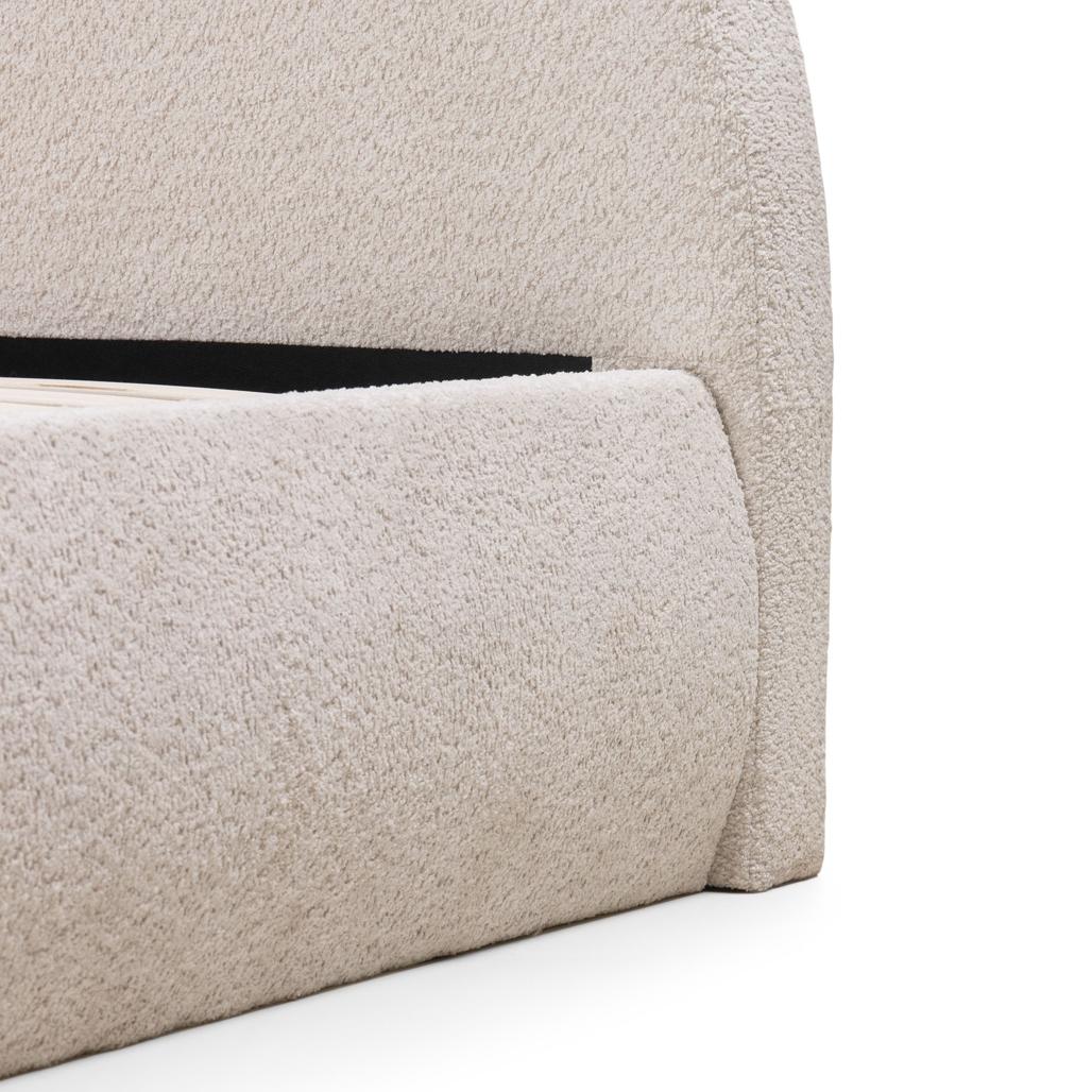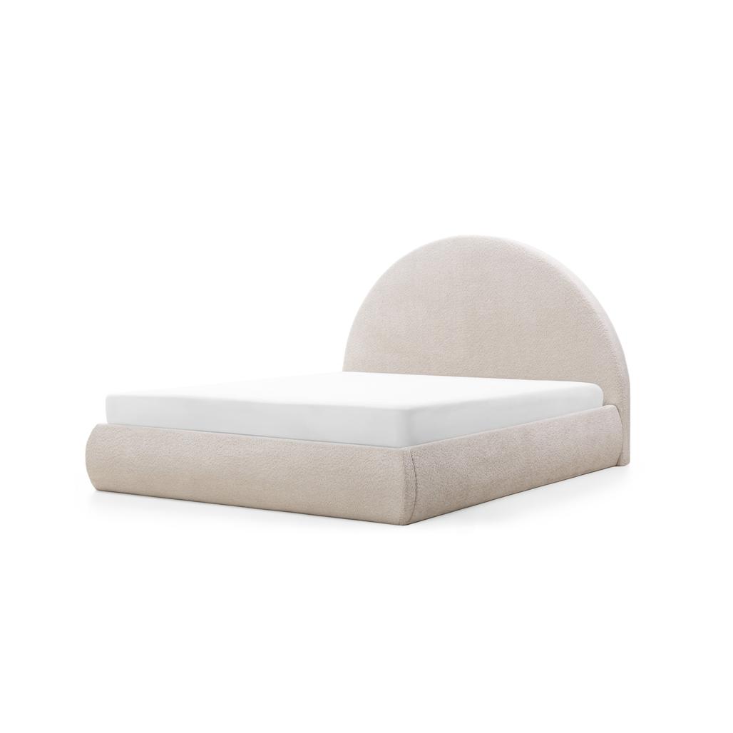 Polsterdatud voodi 160×200 cm MIMIQ raami ja panipaigaga ümar beež