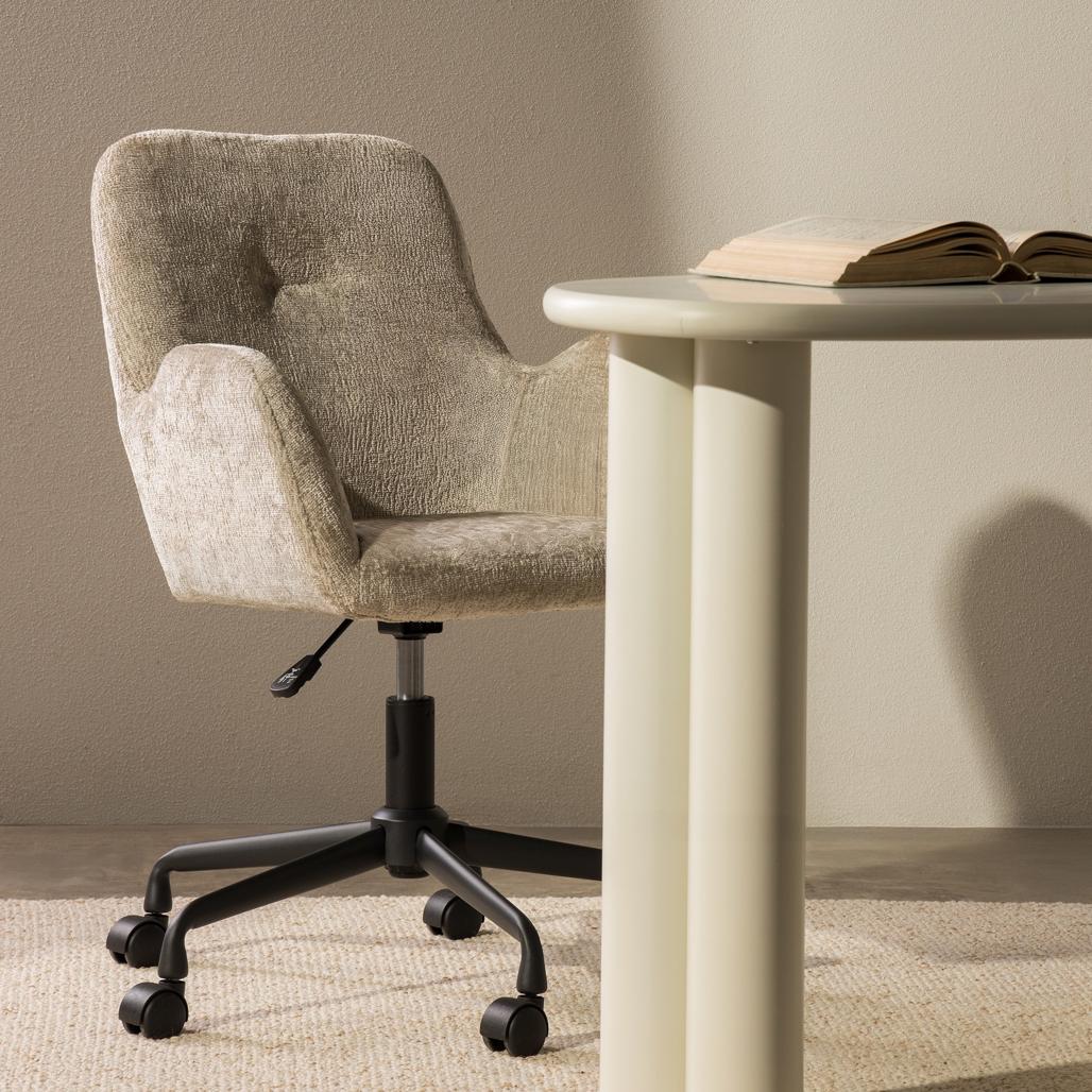 MALISA pöördtool ühendab endas moodsa disaini mugavusega pehme istme ja meeldiva kangaga polsterdatud seljatoega. Selle lihtne vorm muudab selle sobivaks igasse interjööri lisades elegantsi ja mugavust. Ergonoomilised käetoed pakuvad lisatuge samas kui ratastega alus võimaldab hõlpsat liikumist. Tool sobib ideaalselt nii kontorisse kui ka koju ühendades funktsionaalsuse stiiliga. MALISA on ideaalne valik neile kes hindavad mugavust ja disaini muutes iga hetke laua taga naudinguks. Toote omadused: Pehme iste ja seljatugi Helebeež polsterdus Kõrguse reguleerimisega iste Viieharuline ratastega alus 360° pöörlev alus Mõõtmed: Kõrgus: 83 5-91 cm Laius: 59 cm Sügavus: 58 cm Istme kõrgus: 45-52 5 cm Istme laius: 42 cm Istme sügavus: 44 cm