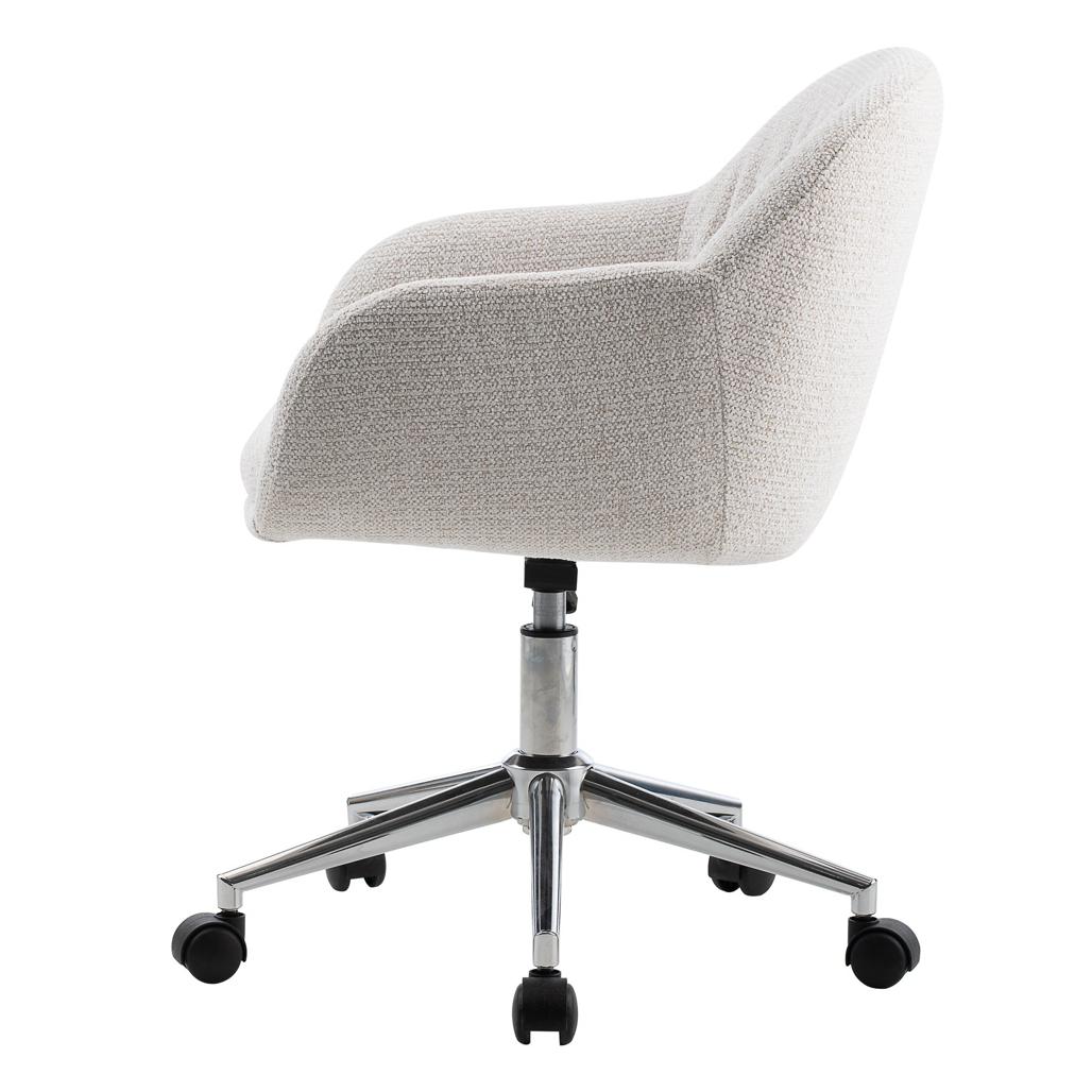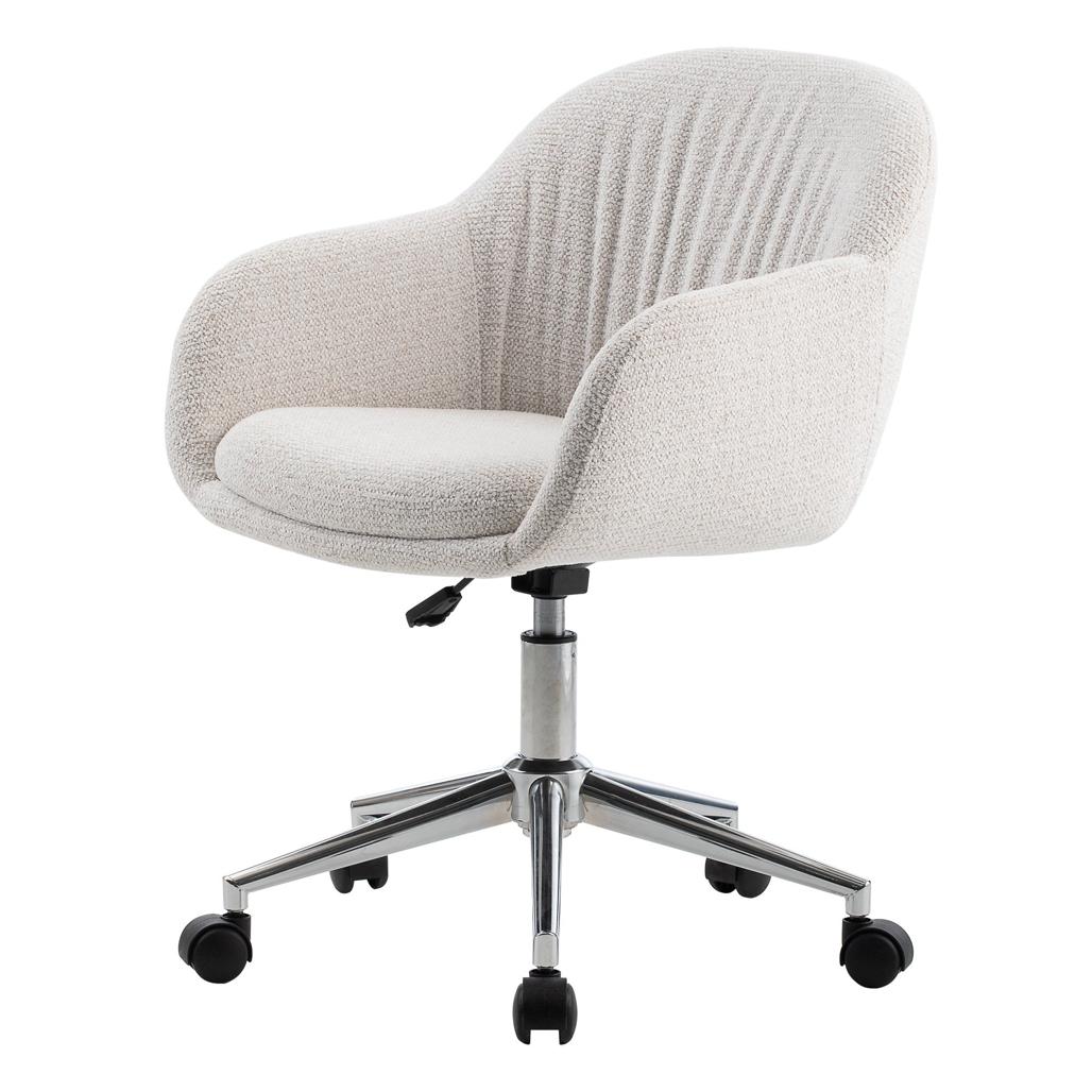 OTELLO pöördtool – stiilne aktsent teie kontorisse tualettlauale või kodukontorile – ühendab elegantsi ja funktsionaalsuse. Pehme kreemika polstriga iste lisab igale interjöörile kergust ja harmooniat täiendades ideaalselt moodsat sisekujundust. Kroomitud jalad ratastega lisavad elegantsi pakkudes samal ajal täielikku liikuvust ja liikumisvabadust. Õrna volditud seljatugi ja mugavad käetugedega muudab iga hetke tõeliseks lõõgastuskogemuseks. Reguleeritav kõrgus ja 360° pöörlev funktsionaalsus tagavad maksimaalse vabaduse. Olenemata sellest kas töötate loote või lihtsalt lõõgastute – OTELLO hoolitseb teie mugavuse eest. Pehme iste ja seljatugi Kreemika värvi polster. Reguleeritav istme kõrgus. 5-haruline kroomitud alus ratastega. 360° pöörlev alus. Mõõtmed: Kõrgus: 78–87 5 cm. Laius: 56 cm. Sügavus: 56 cm. Istme kõrgus: 47–56 5 cm. Istme laius: 41 cm. Istme sügavus: 43 cm.