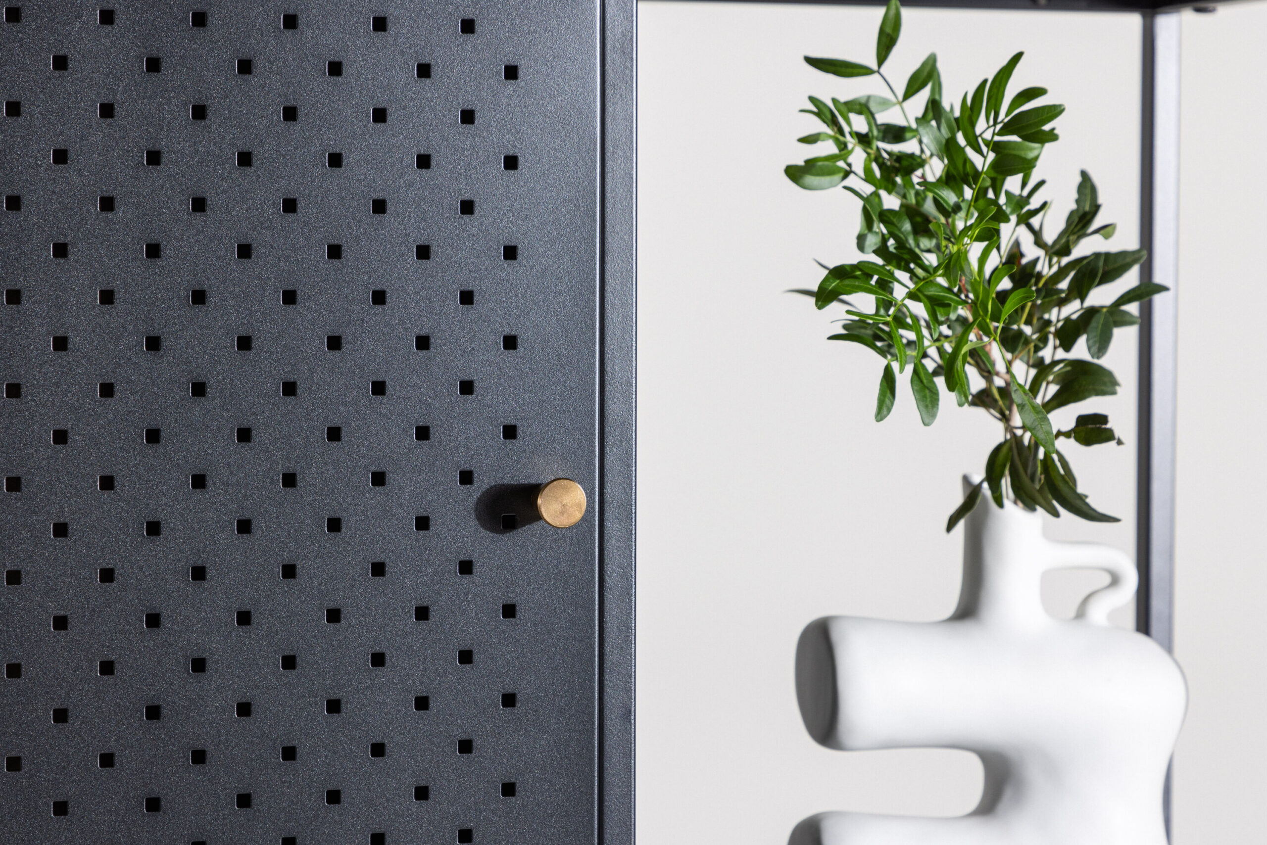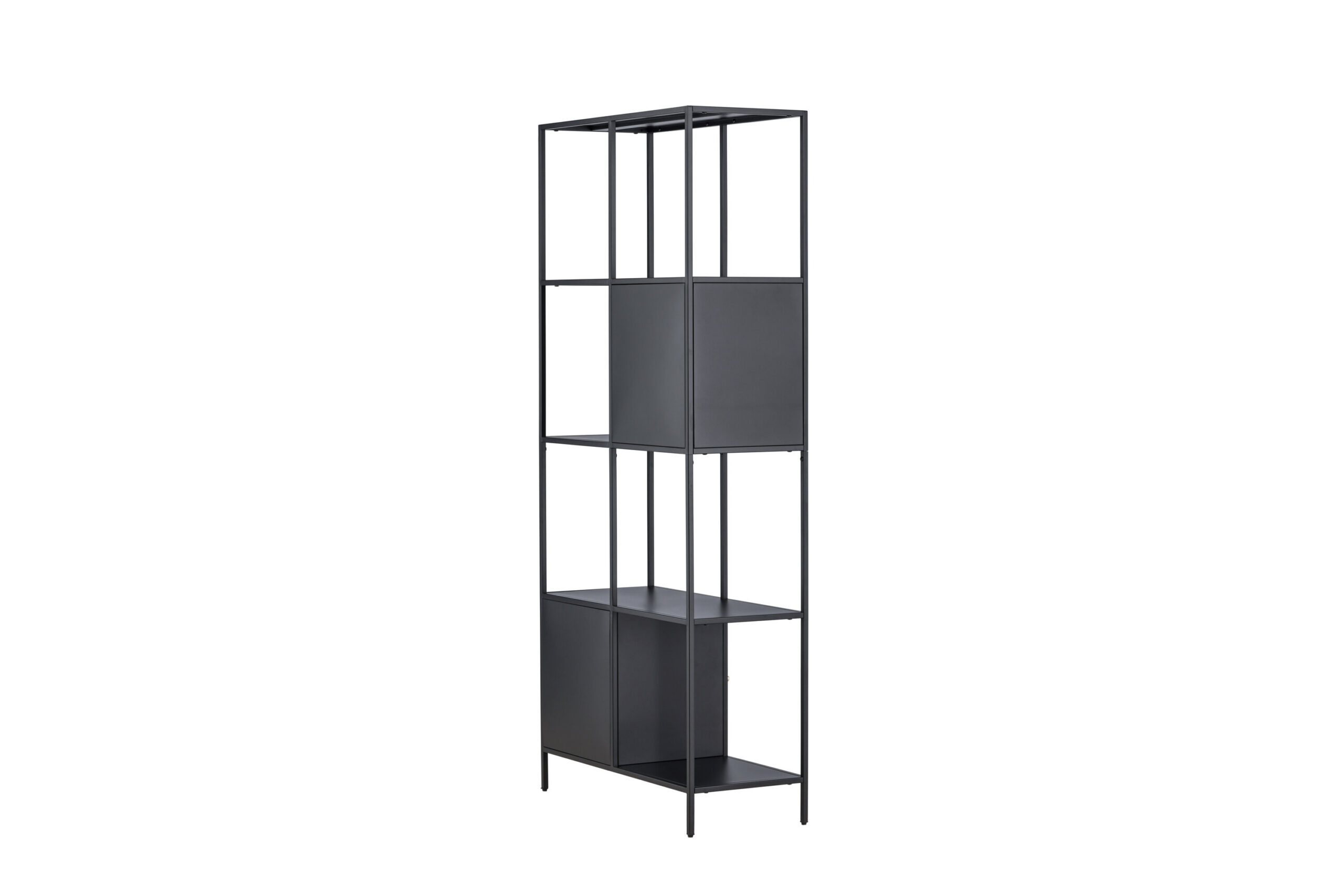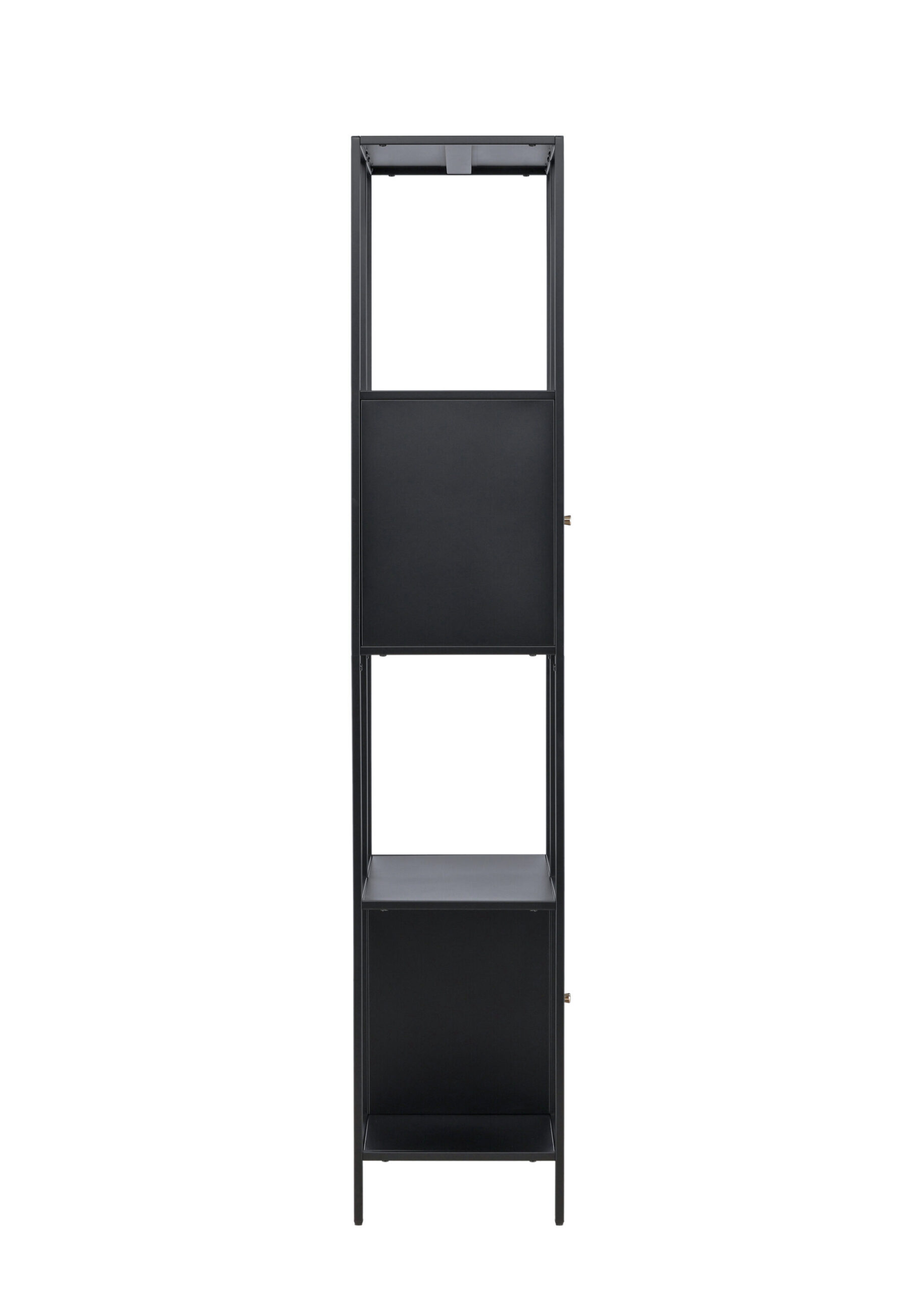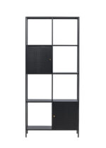 Kõrge ja kitsa disainiga riiul pakub oma neljal avaral riiulil ainulaadset kombinatsiooni avatud ja varjatud hoiuruumist. Kaks erinevale kõrgusele paigutatud elegantsete messingvärvi nuppudega kappi on ideaalne koht väikeste esemete peitmiseks ja korrastatud pinna loomiseks. Avatud riiulid on mõeldud teie kaunite kaunistuste või küünlajalgade esitlemiseks, pakkudes hubasust.