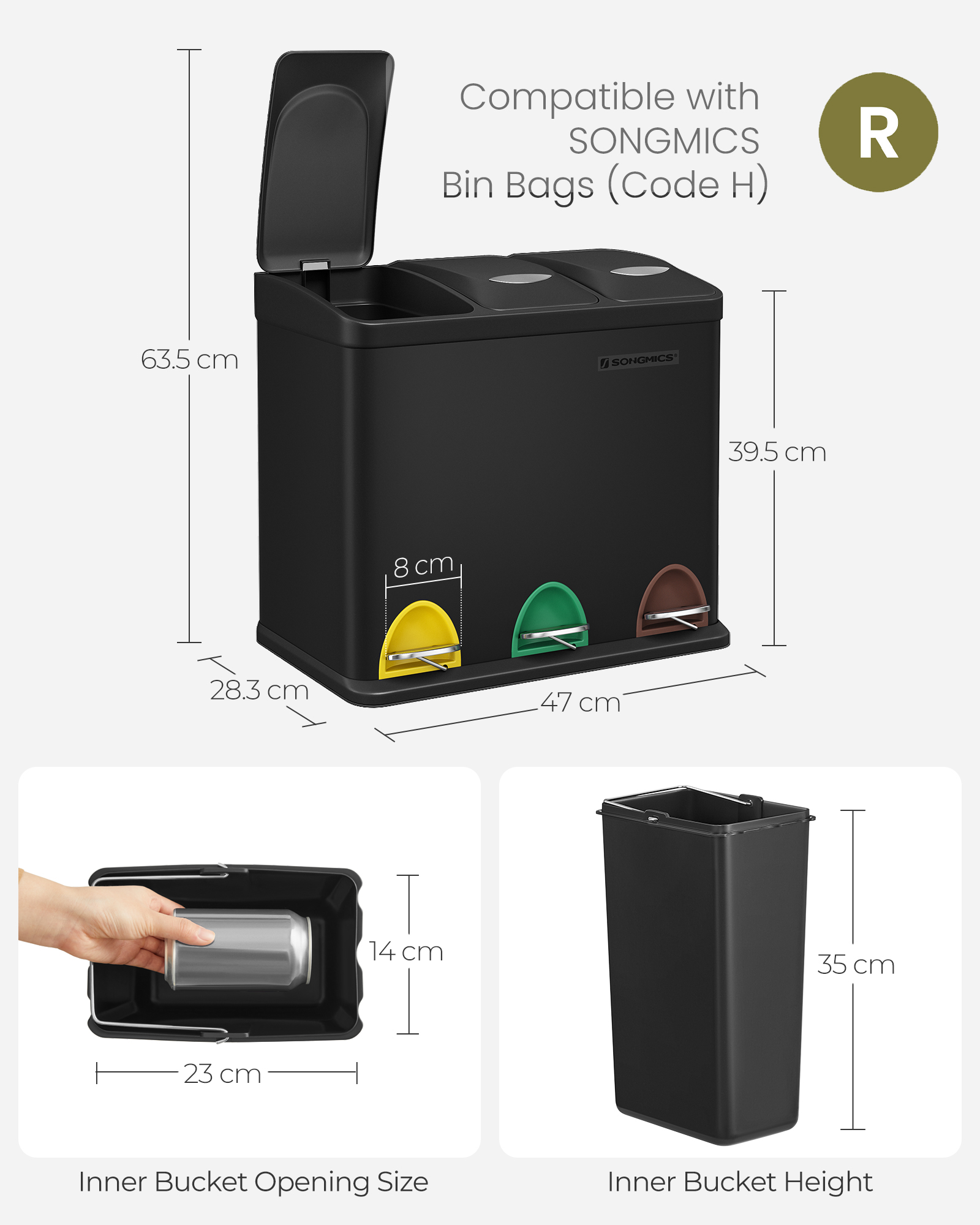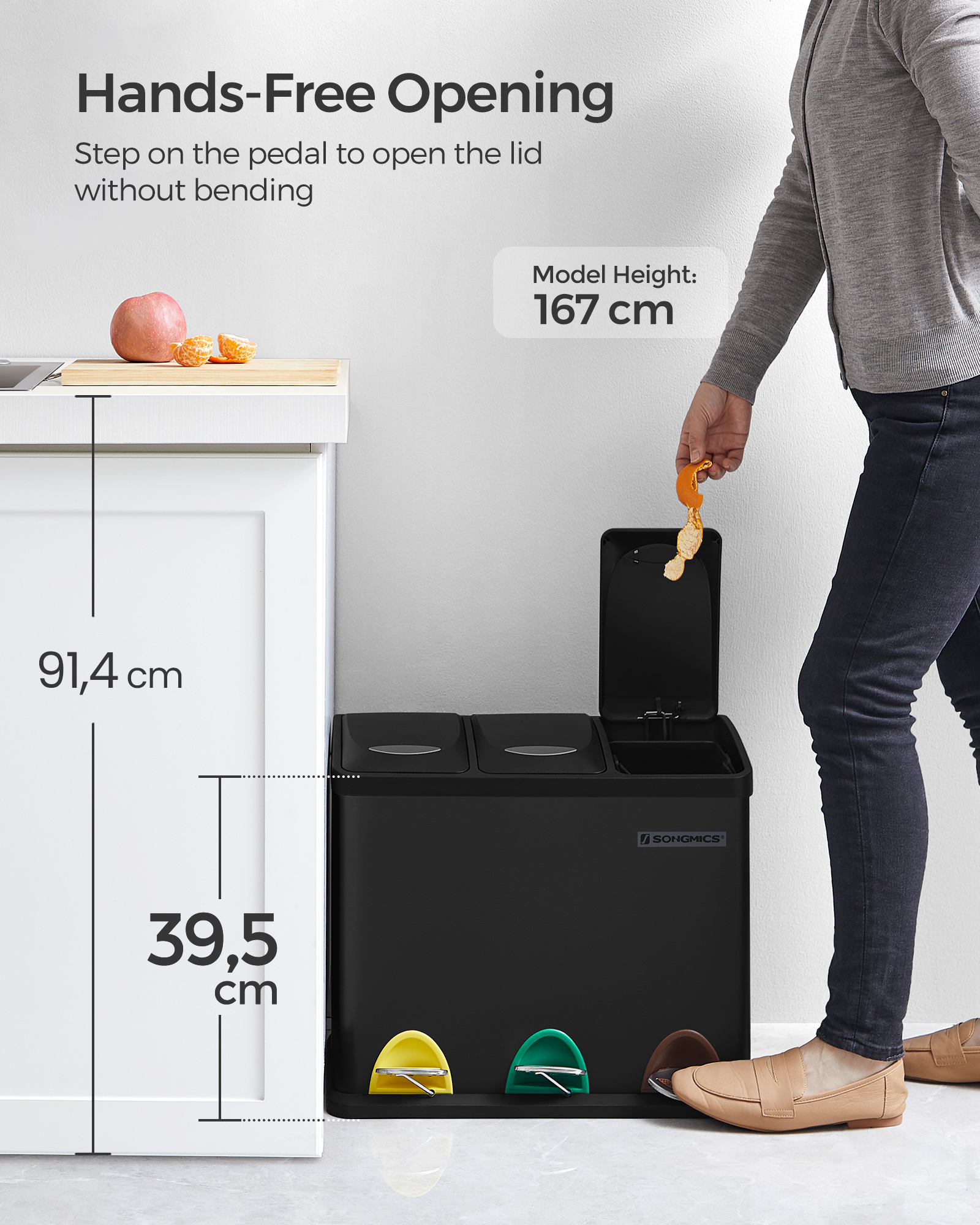 Spetsifikatsioonid: Värv: Must Materjal: Terasest välispind, sisemine ämber plastikust, ABS-plastist kaas Toote mõõdud: 47×28,3×39,5 cm Sisemise ämbri mõõdud: 14 x 23 x 35 cm (P x L x K) Toote kaal: 4,2 kg Pakisisu: 1 x prügikast