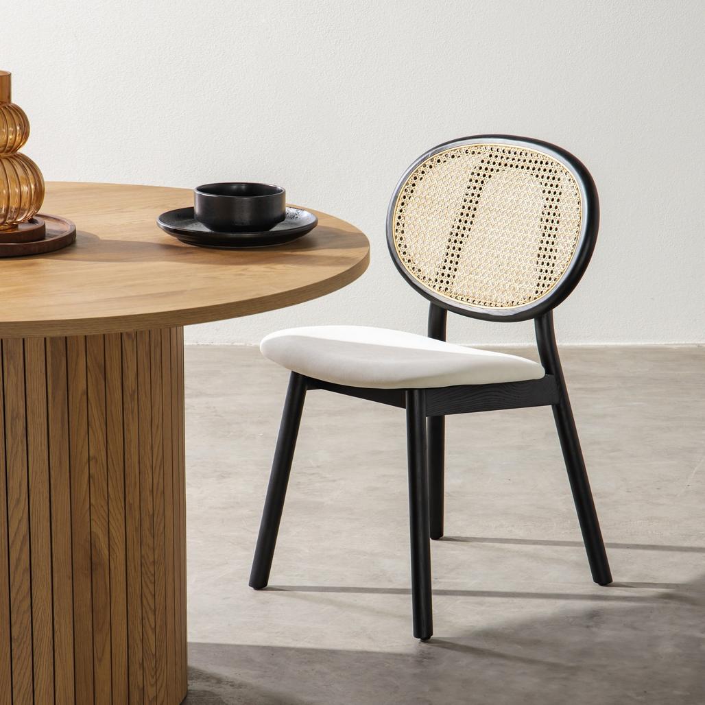 Puidust tool Viini kootud kangaga SUMBA rotang samet must/ekru MIMM – 2 tk