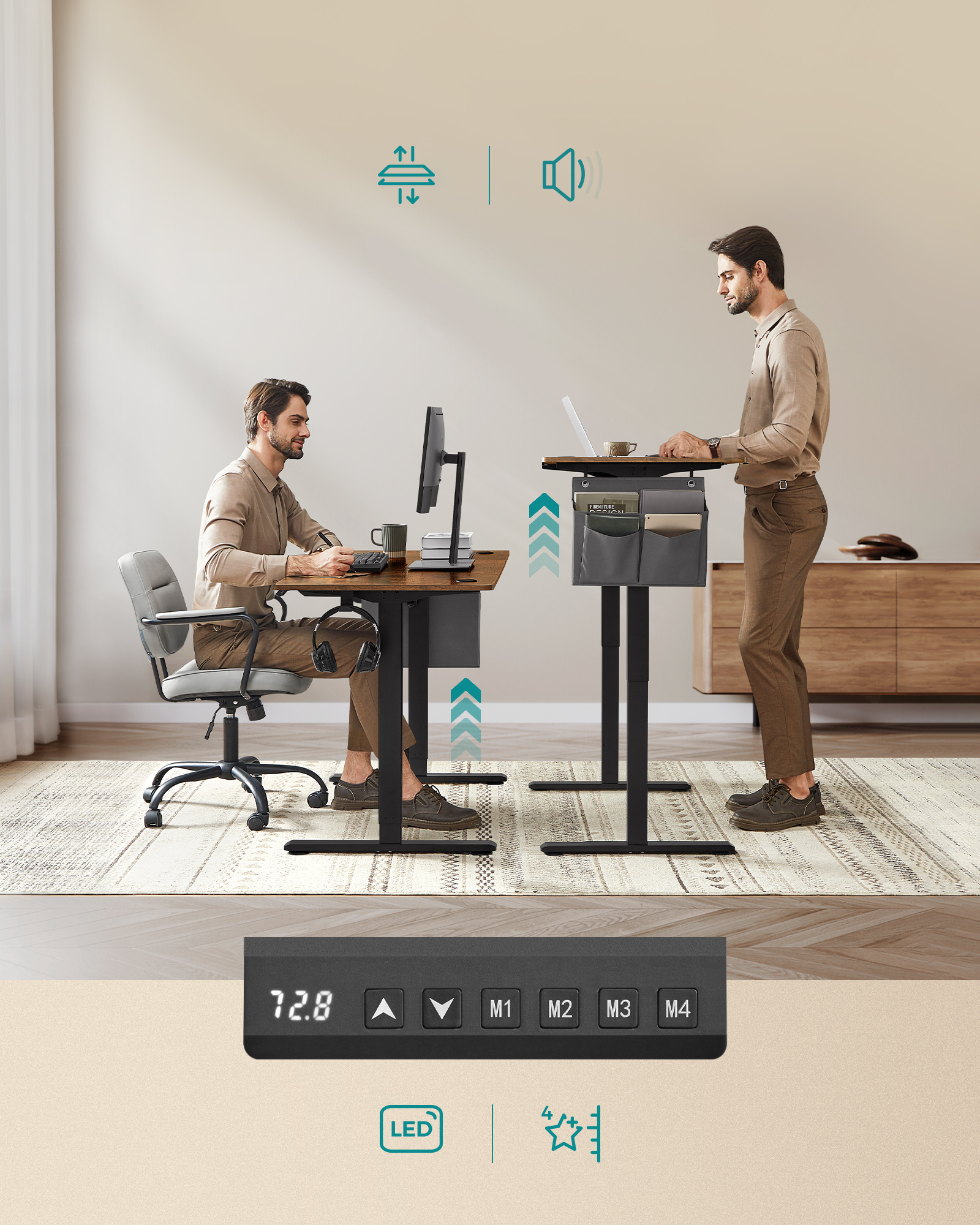 Toote üksikasjad: – Värvus: Vintage-pruun – Materjal: Puitlaastplaat, teras, Oxford-kangas – Mõõtmed: 120 x 60 x (72-120) cm (L x S x K) – Kaal: 20 kg – Maksimaalne staatiline kandevõime: 70 kg Pakisisu: – 1 x elektriline laud – 1 x riidest korraldaja – 3 x konksu (millest 2 on korraldaja jaoks) – 1 x tarvikute komplekt – 1 x kasutusjuhend