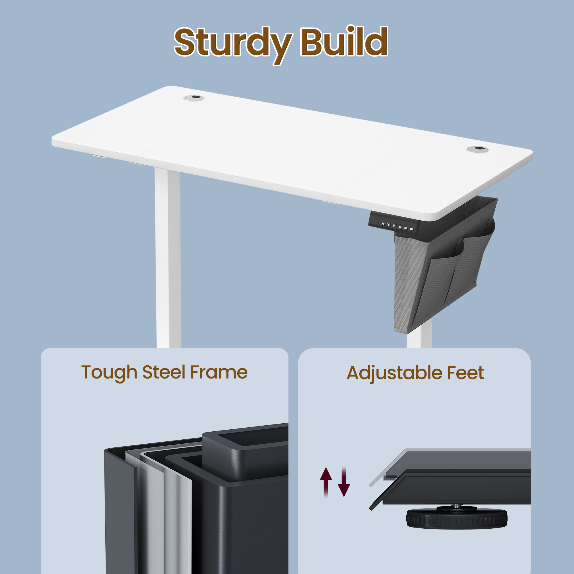 Parameetrid: – Toote mõõtmed: 120x60x(72-120)cm – Netokaal: 21,8 kg – Maksimaalne staatiline kandevõime: 70 kg – Materjal: puitlaastplaat, teras, Oxford-kangas – Värvus: valge Pakendi nimekiri: – 1 x kõrgusega reguleeritav laud