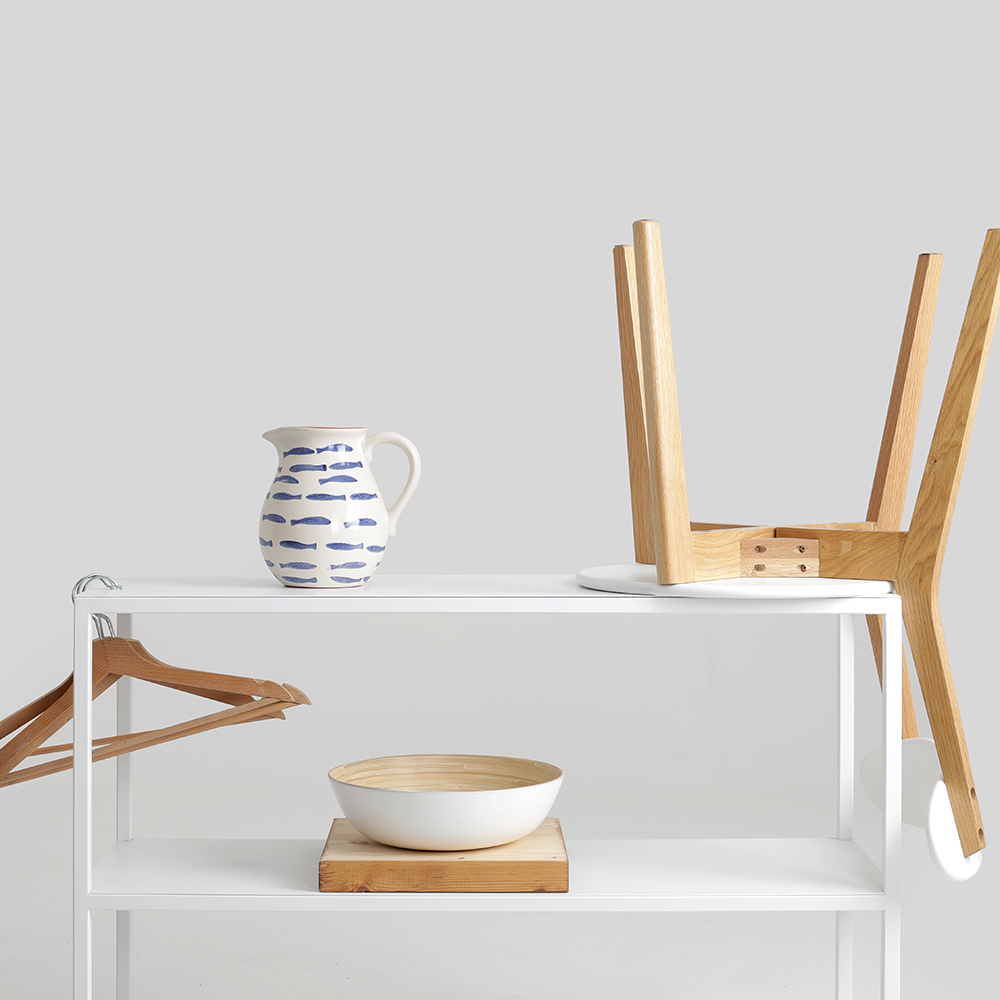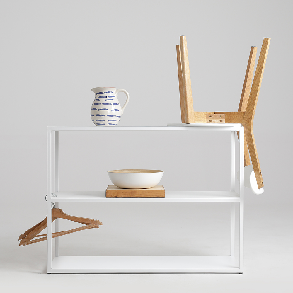 Lihtne minimalistlik riiul või vormikas konsool – on võti sõbraliku ruumi suurepäraseks organiseerimiseks.