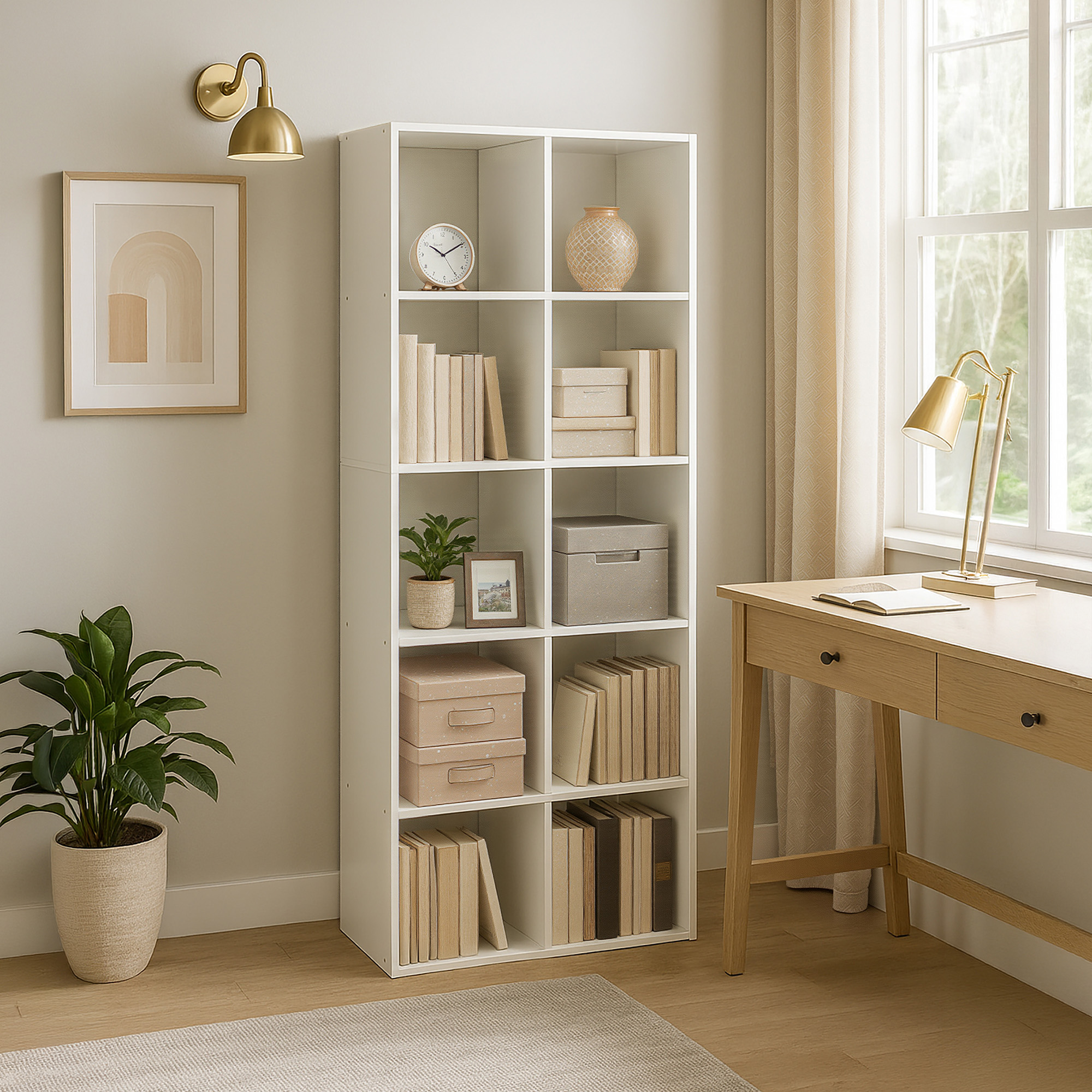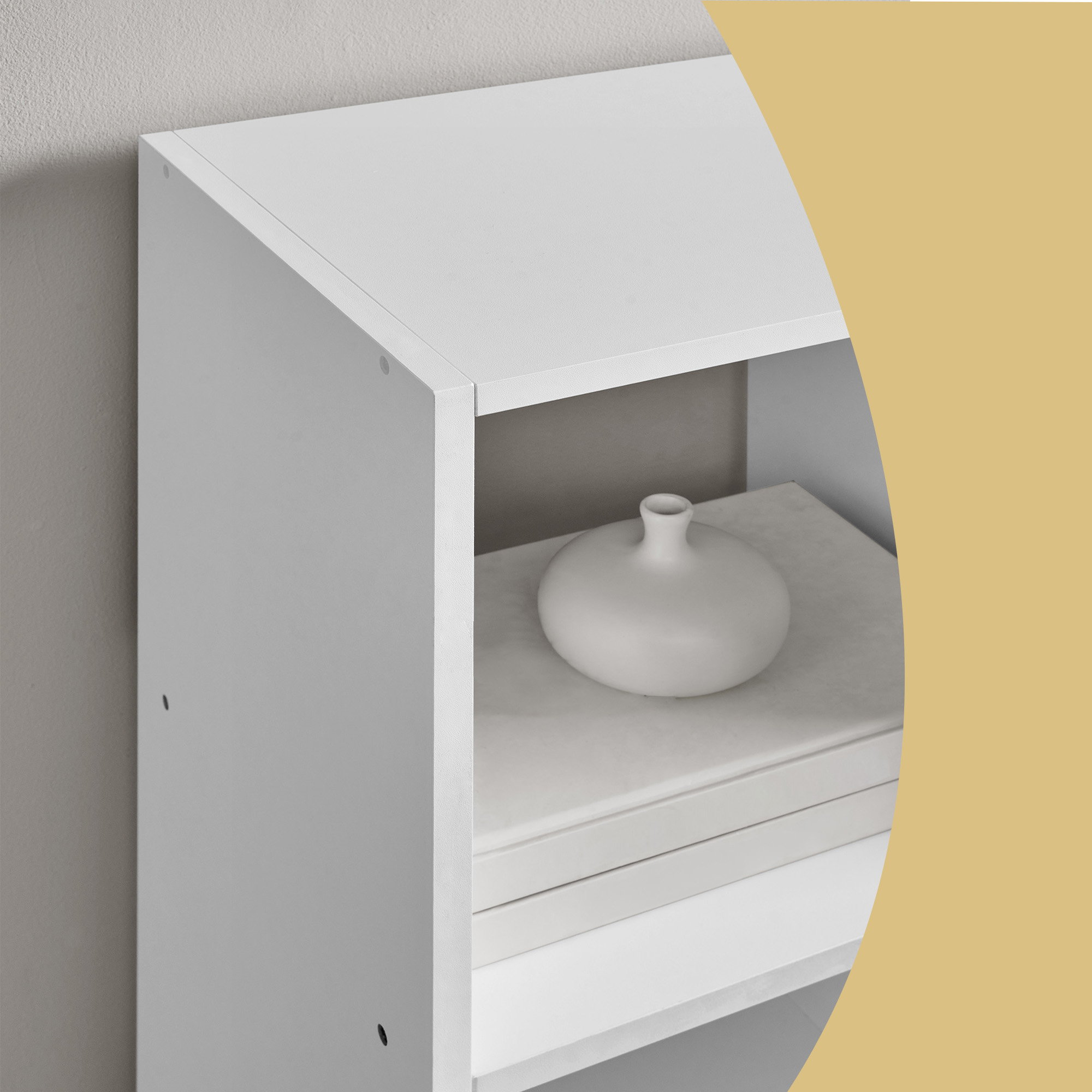 Parameetrid: – Toote mõõtmed: 30 x 65,5 x 161,5 cm – Netokaal: 26,7 kg – Materjal: Puitlaastplaat – Värvus: Valge Paki nimekiri: – 1 x Raamaturiiul – 1 x Kallumisvastane komplekt