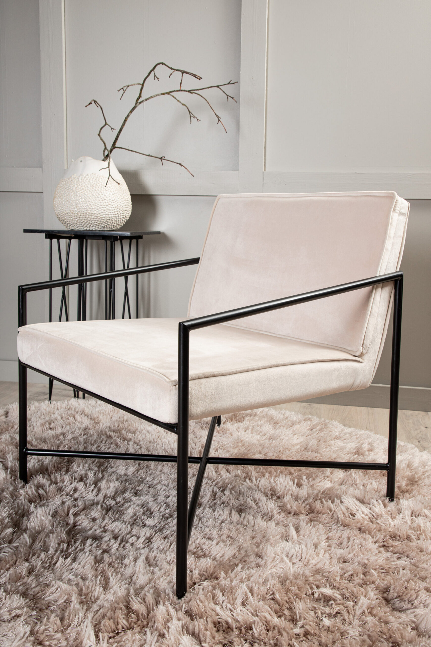 Loo elutoas moeteadlik üldmulje Rakel sarja stiiliikooniga! Disain on täielikult trendidele vastav ning ajatu skandinaavialik minimalism kombineeritud kõrge mugavusega. Sametise beeži polstri pehmendusel on optimaalne paksus ja kalle, mis tagab parima mugavuse, kui soovite lõõgastuda. Kitsas korpus on keevitatud musta pulbervärvitud metalliga ja aitab kaasa moeteadlikule üldmuljele. Asetage elutuppa eraldi või koos diivanirühmaga.