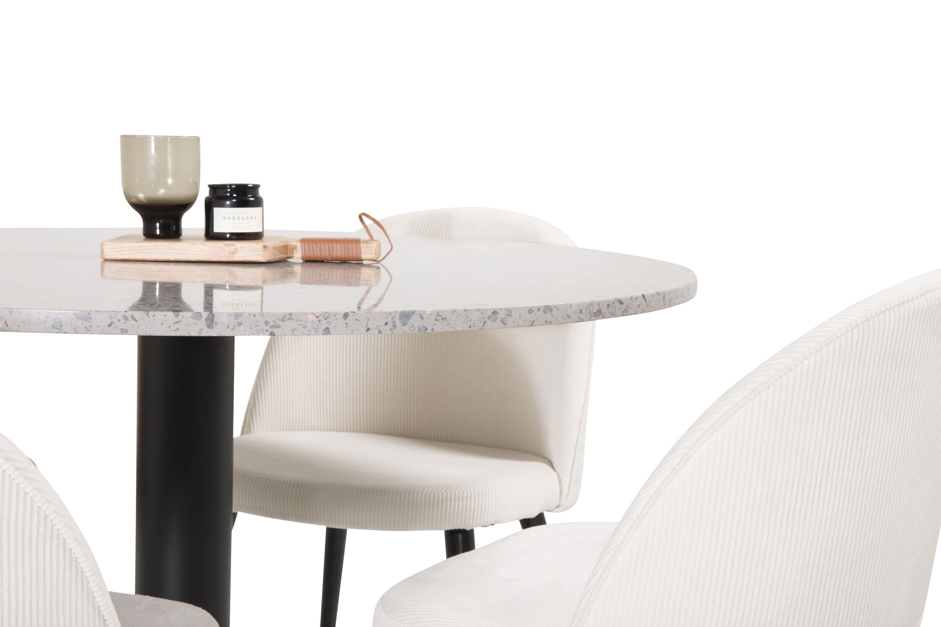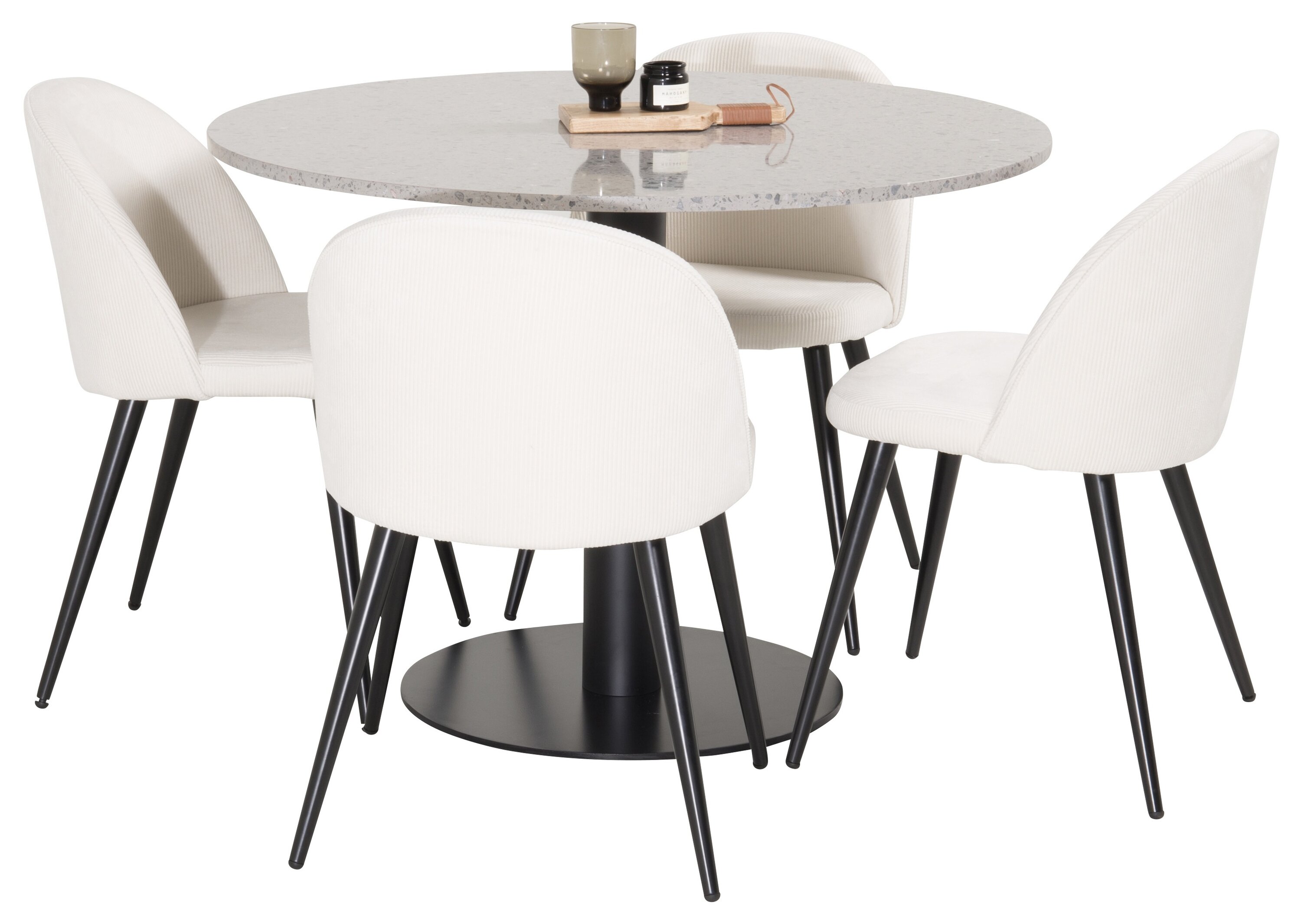 Erinevate värvide ja erinevate materjalide kombineerimine teeb kõik tavaliselt suurepäraselt. Meie söögilaud raid ja meie söögitoolid sametist saate kombinatsiooni – moodne, hubane ja ajatu!