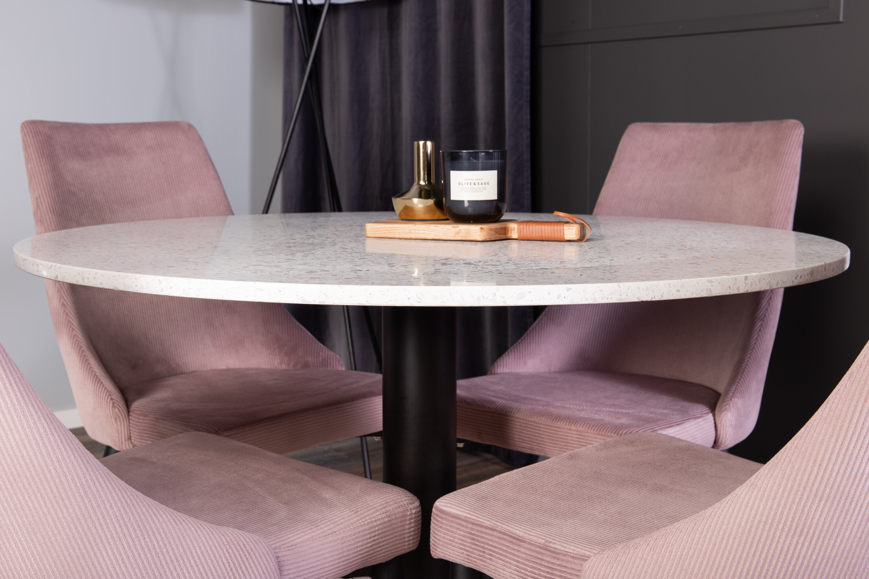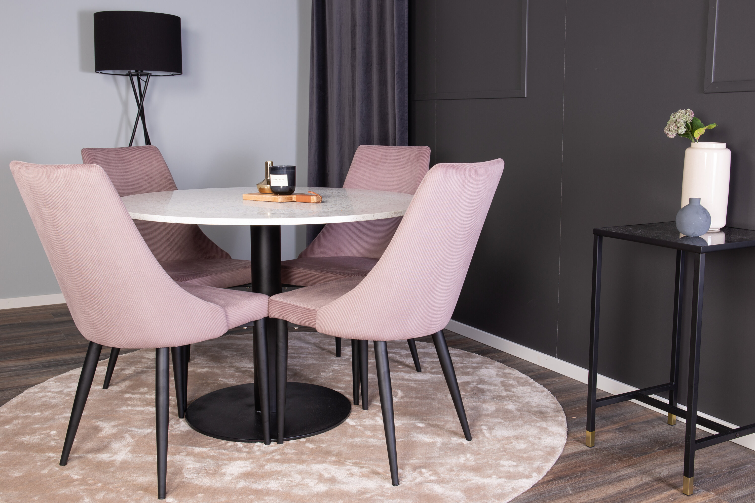Moodsa ja stiilse disainiga toidugrupp. Söögilaud Razzia ja söögitoolid Leone on ideaalne kombinatsioon kodu südamesse, mis sobib tõenäoliselt sama hästi teie vajadustega kui ka teie muu interjööriga.