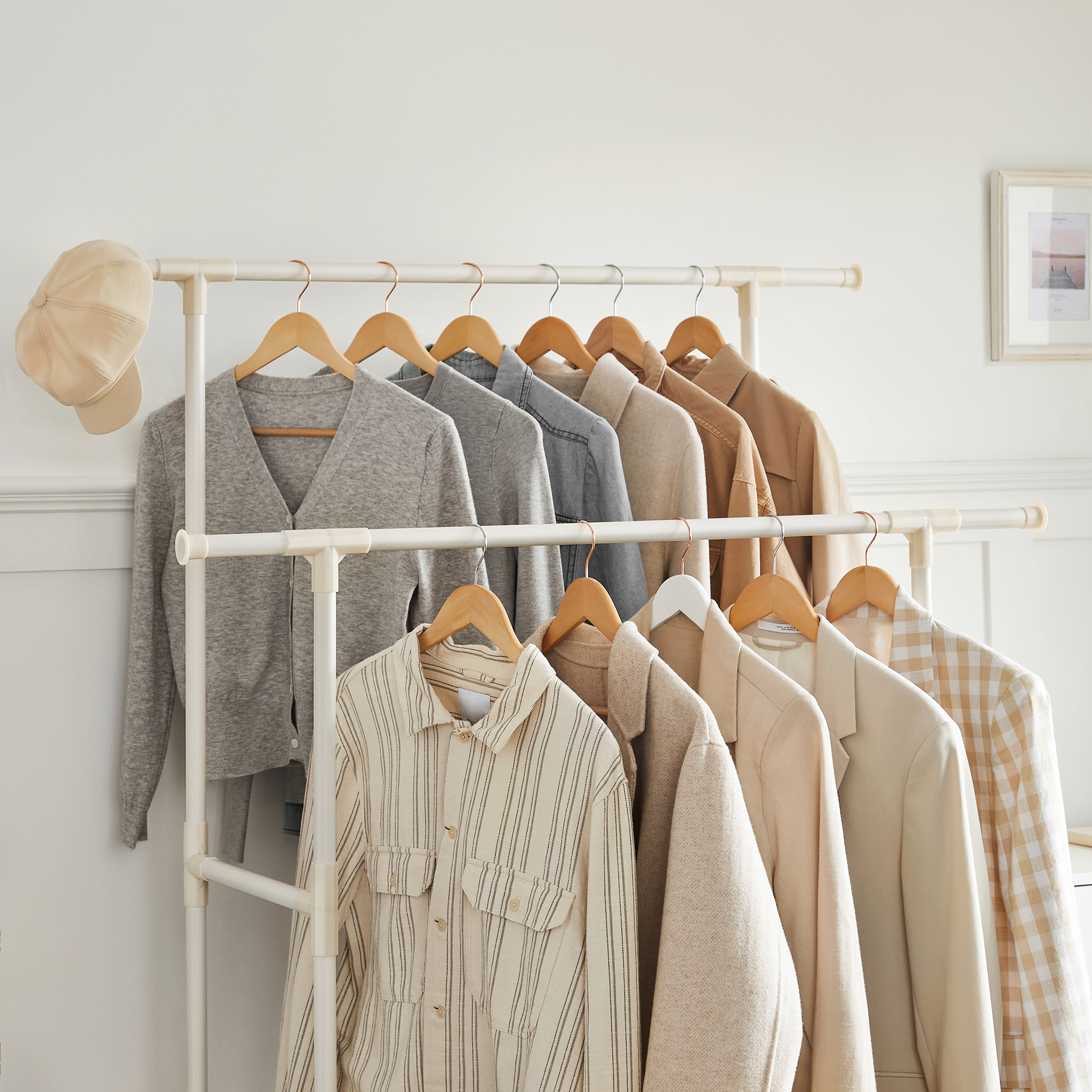 Spetsifikatsioonid: – Värvus: Valge – Materjal: Raudtorud, lausriie, plastühendused – Toote mõõdud: 114x45x171cm (P x L x K) – Toote kaal: 3 kg – Maksimaalne staatiline kandevõime riiuli kohta: 10 kg – Maksimaalne staatiline kandevõime riputussiinile: 30 kg – Maksimaalne staatiline kandevõime kokku: 80 kg Pakisisu: – 1 x riidepuurauk – 1 x juhend (EN, ES, DE, FR, IT)