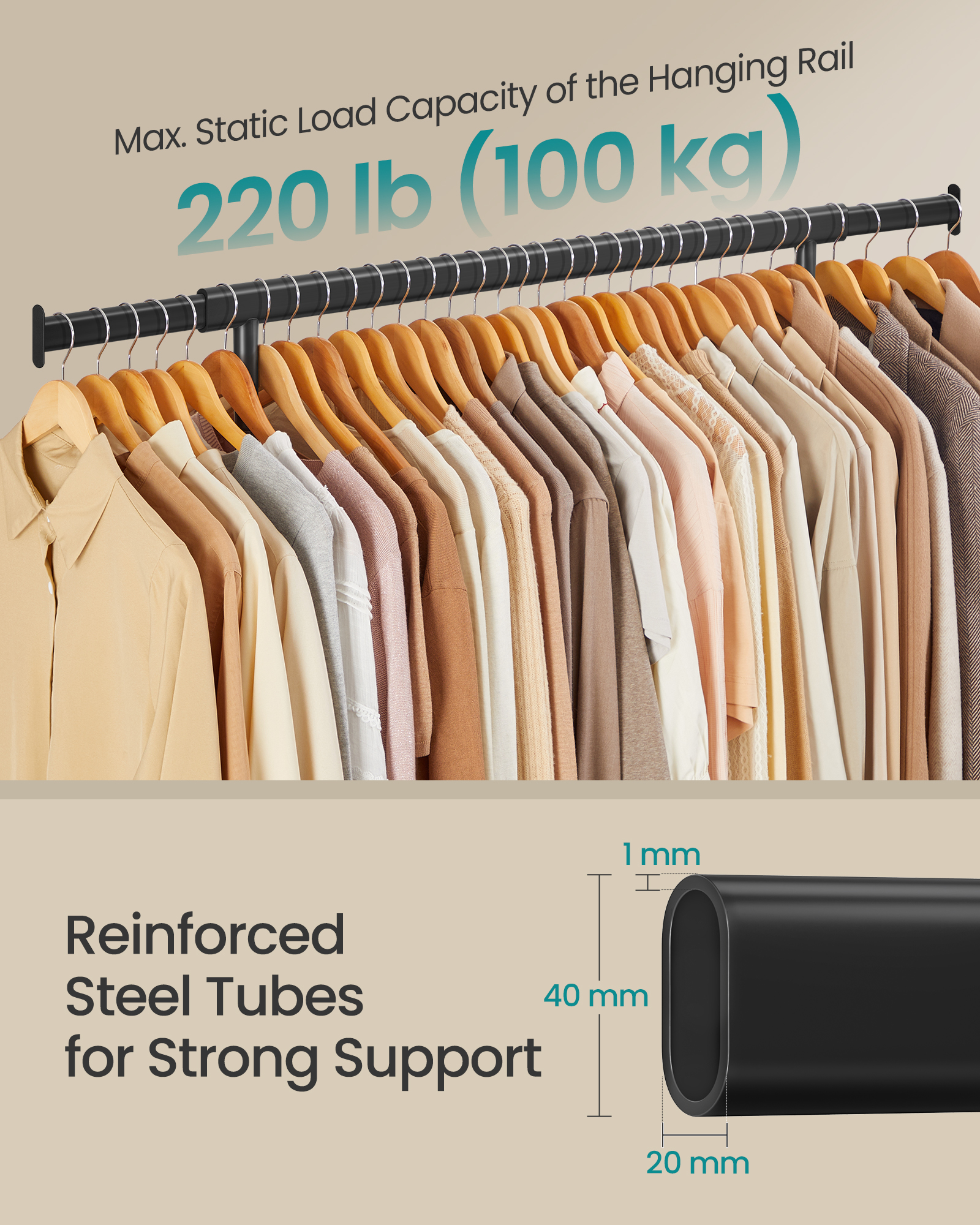 Spetsifikatsioonid: – Värvus: Must – Materjal: Teras, PP-rattad – Toote mõõdud: 45,4 x (92–132) x 160 cm (S x L x K) – Toote kaal: 5 kg – Maksimaalne staatiline kandevõime: 90 kg Pakisisu: – 1 x riidepuurauk – 1 x juhend