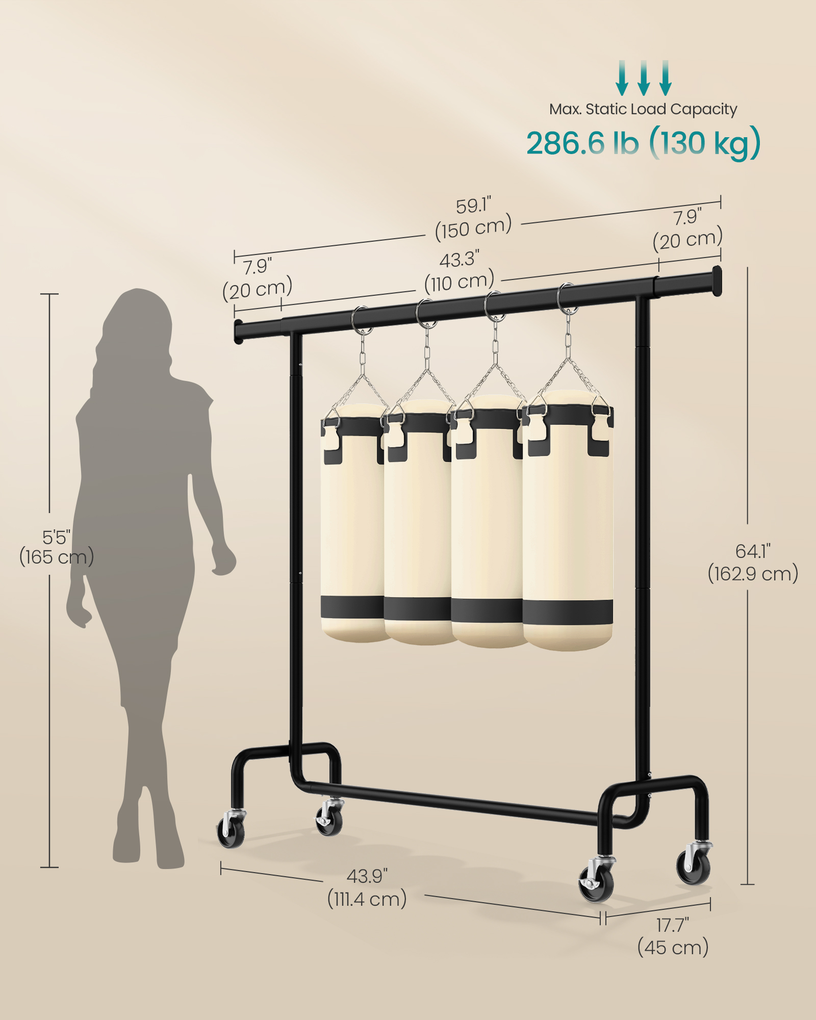 Tooteinfo Tehnilised andmed Bränd : LAULUMIKAD Värv :Matt must materjal : Terasest, PP-st rattad. Toote soovitatav kasutusala. : Riiete, särkide, pükste, mantlite, jalanõude toote mõõtmed : Kandevõime 17,1″ S x 59,1″ L x 63″ K : 286,6 naela (127,7 kg) riiulite arv : 1 eseme kaal : Soovituslik maksimaalne kaal 7 kilogrammi : 130 kilogrammi tootja : LAULUDE ESEME KAAL : Suurus 15,4 naela : (43,3–59,1″) L x 63″ K