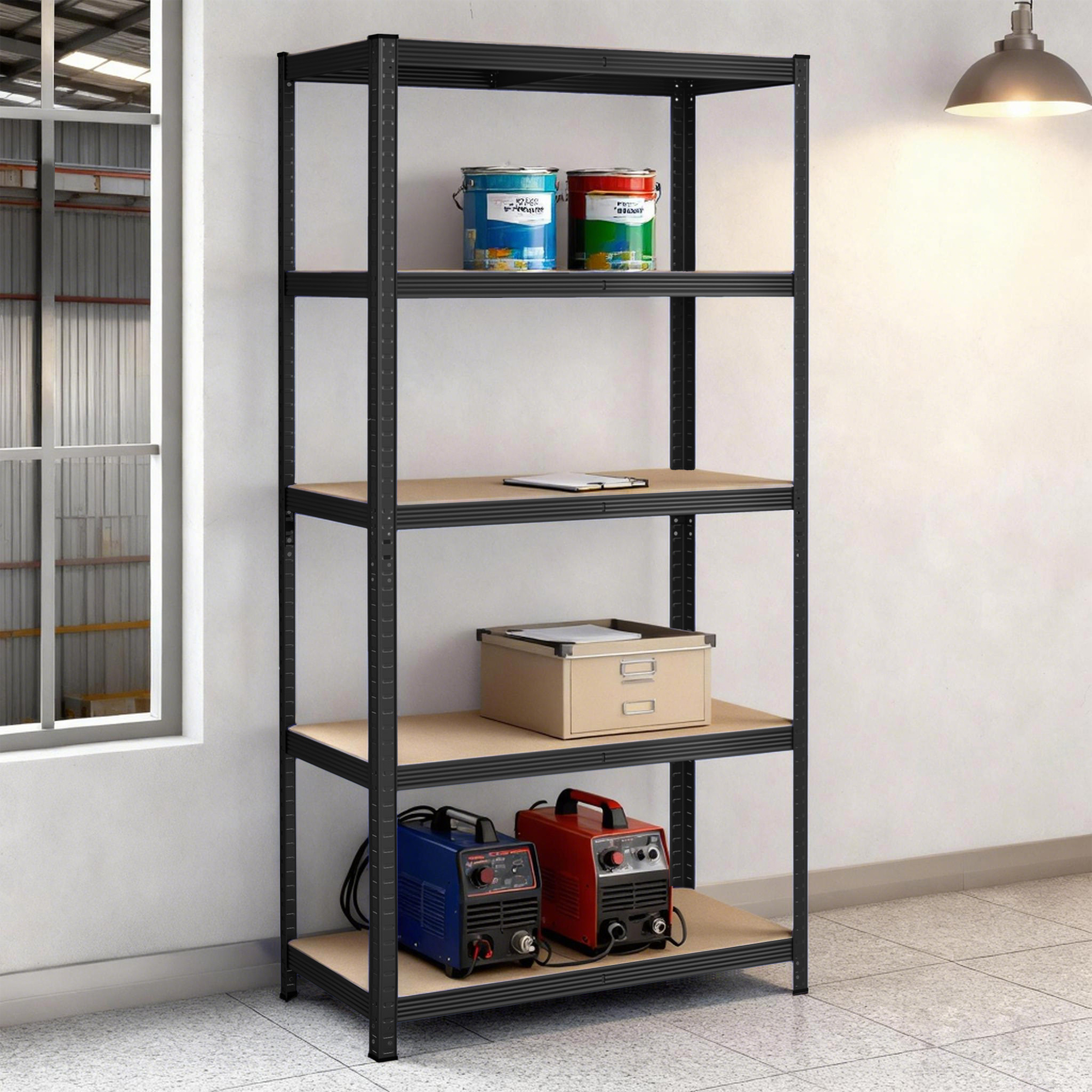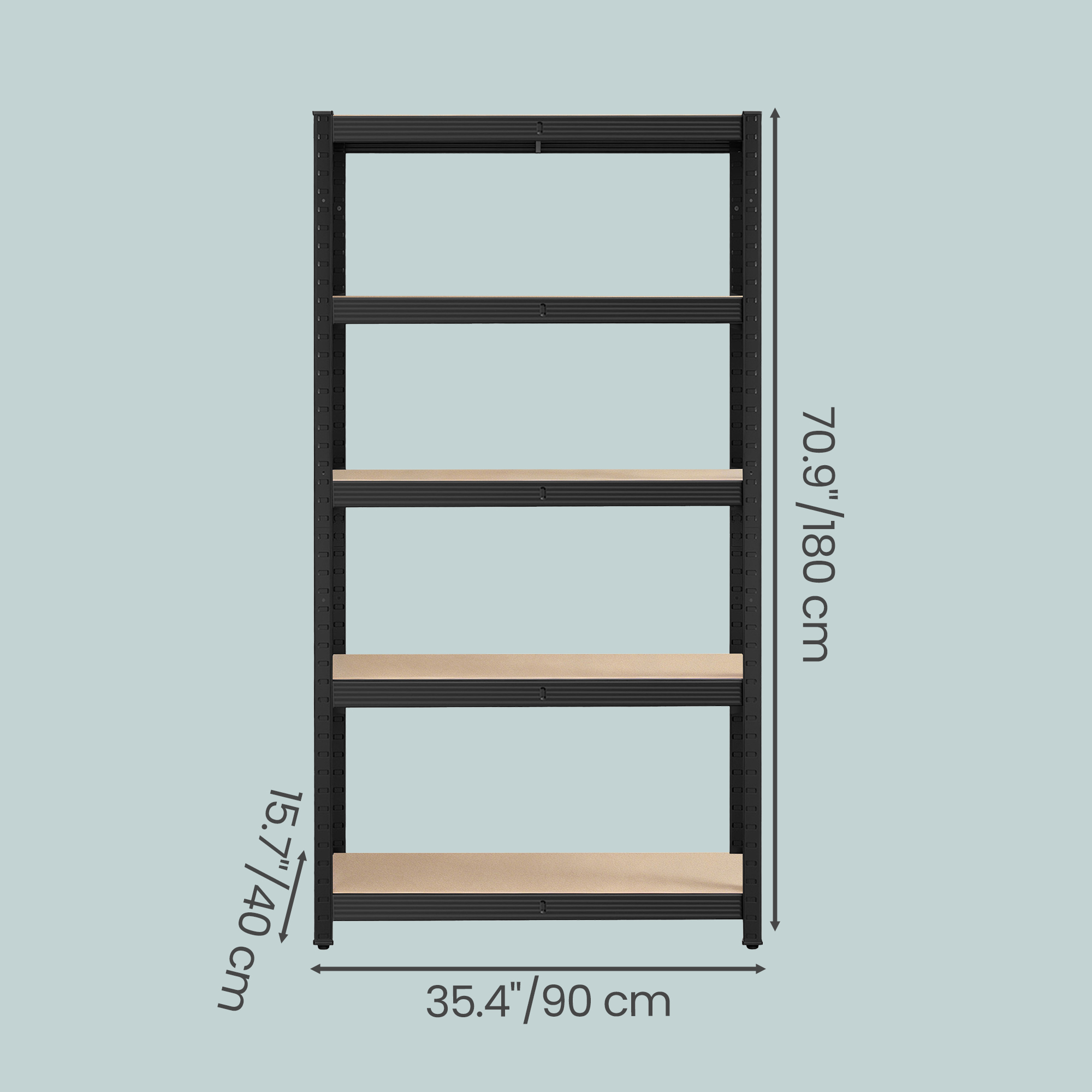 Spetsifikatsioonid: Värvus: Must Materjal: Terasraam, MDF (keskmise tihedusega puitkiudplaat) Toote mõõdud: 40 x 90 x 180 cm (15,7″S x 35,4″L x 70,9″K) Iga riiuliüksuse kaal: 13,2 kg (29,1 naela) Maksimaalne staatiline kandevõime astme kohta: 175 kg (385 naela) Maksimaalne staatiline kandevõime riiuliüksuse kohta kokku: 875 kg (1929 naela) Pakisisu: 2 x riiuliüksust 2 x ümberkukkumisvastast komplekti 1 x juhend