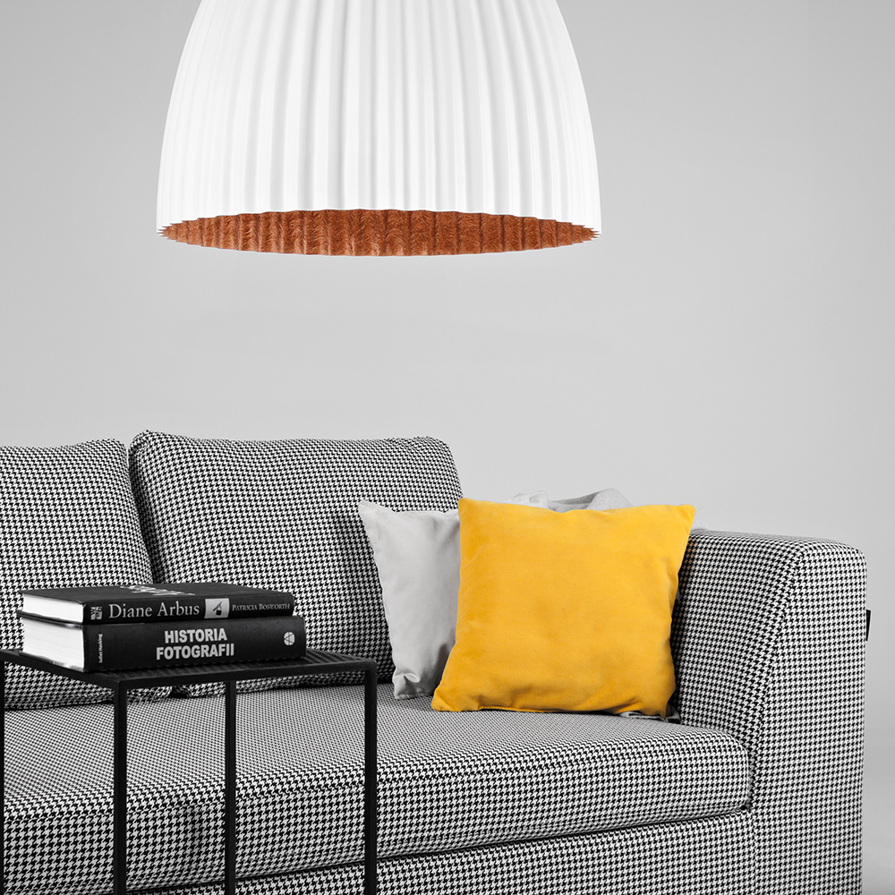 Tööstusdisainist inspireeritud rippvalgusti valgustab elutuba kööki söögituba ja magamistuba dekoratiivsel viisil. Volditud disain on ainulaadne moodne ja loob sooja atmosfääri.