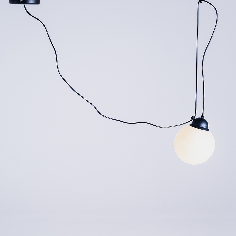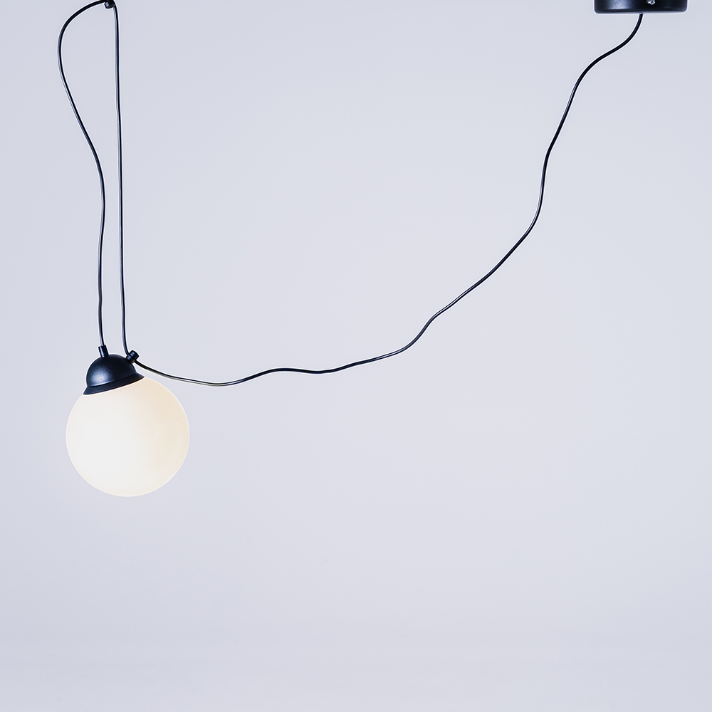 Popo lambi loomise suurimaks inspiratsiooniks oli industrialismi mood. Seega loovad nähtavad vabad kaablid ja valged klaasvarjud moodsa lihtsuse tunde.