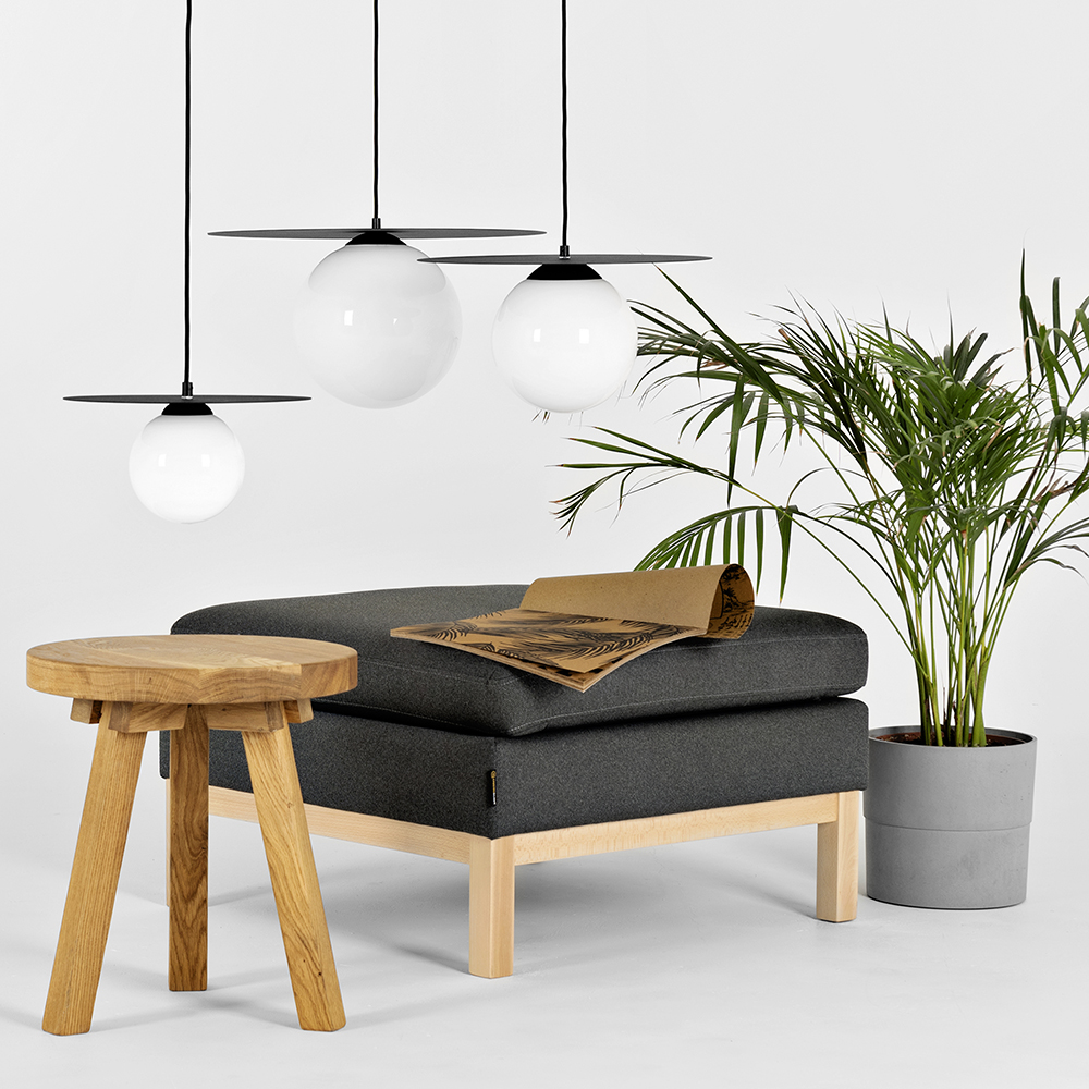 Vaatad lakke ja mida sa näed? Kas see on lind? Lennuk? Võibolla kosmosetaldrik? Ei need on SKIVA kollektsiooni pööningulambid! Naljakaid rippvalgusteid iseloomustab iseloomulik metallist ketas mis asub lambivarju või niidi kohal. Need valgustavad tõhusalt pööningut või muud tööstuslikku ruumi. Kollektsioonis on kahte tüüpi lampe. SKIVA lambid on väga lihtsad ja tüüpiliselt pööningule omased. Sooja valgusega hõõguv pirn tuleb otse mustast peenest niidist mille kohal on väike ketas ja seejärel must kaablinöör. SKIVA BALL lambid on veelgi uhkemad. Neil on piimjas õhupallilaadne lambivarju ja selle kohal olev ketas on kaks korda suurem kui alus. Disainlambid SKIVA BALL tõestavad end mitte ainult pööningul vaid ka klassikalises elutoas. Nii tööstuslikud SKIVA lambid kui ka võluvad SKIVA BALL kerad on saadaval kolmes suuruses: S M ja L. Lõbusa ja efektse disainiga tööstuslambid. Meie kollektsioonide disainlambid ei ole loodud mitte ainult ruumi valgustamiseks vaid ka pilku köitma. Seekord pole see teisiti. Tööstuslikud rippvalgustid SKIWA ja SKIVA BALL suunavad pilgu kohe lakke need on ruumi ilmekas element. Peagi laiendame nende uhkete lampide kollektsiooni disainseina ja laualampidega.