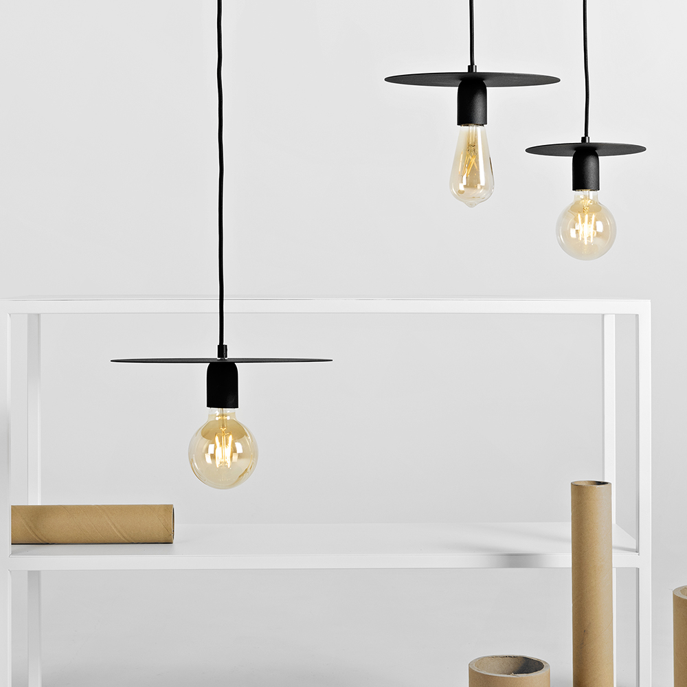 Vaatad lakke ja mida sa näed? Kas see on lind? Lennuk? Võibolla kosmosetaldrik? Ei need on SKIVA kollektsiooni pööningulambid! Naljakaid rippvalgusteid iseloomustab iseloomulik metallist ketas mis asub lambivarju või niidi kohal. Need valgustavad tõhusalt pööningut või muud tööstuslikku ruumi. Kollektsioonis on kahte tüüpi lampe. SKIVA lambid on väga lihtsad ja tüüpiliselt pööningule omased. Sooja valgusega hõõguv pirn tuleb otse mustast peenest niidist mille kohal on väike ketas ja seejärel must kaablinöör. SKIVA BALL lambid on veelgi uhkemad. Neil on piimjas õhupallilaadne lambivarju ja selle kohal olev ketas on kaks korda suurem kui alus. Disainlambid SKIVA BALL tõestavad end mitte ainult pööningul vaid ka klassikalises elutoas. Nii tööstuslikud SKIVA lambid kui ka võluvad SKIVA BALL kerad on saadaval kolmes suuruses: S M ja L. Lõbusa ja efektse disainiga tööstuslambid. Meie kollektsioonide disainlambid ei ole loodud mitte ainult ruumi valgustamiseks vaid ka pilku köitma. Seekord pole see teisiti. Tööstuslikud rippvalgustid SKIWA ja SKIVA BALL suunavad pilgu kohe lakke need on ruumi ilmekas element. Peagi laiendame nende uhkete lampide kollektsiooni disainseina ja laualampidega.