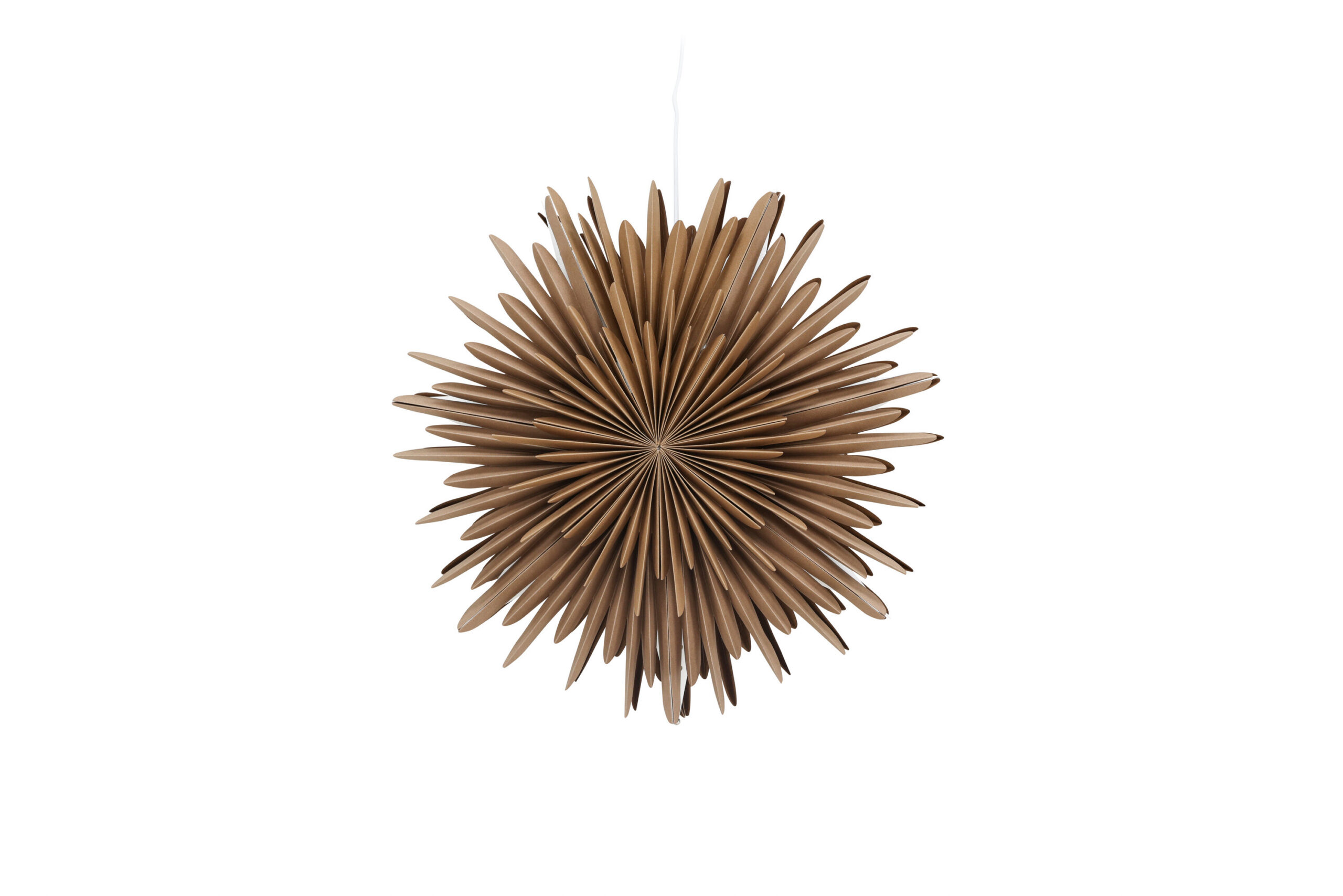 Sälen ei ole lihtsalt tavaline laelamp – see on valmistatud mitmest volditud paberikihist, mis lasevad läbi mõnusa hulga valgust, luues tuppa kauni kuma. Valge juhe tagab diskreetse vedrustuse, võimaldades lambil saada teie kodu pilkupüüdvaks täheks.
