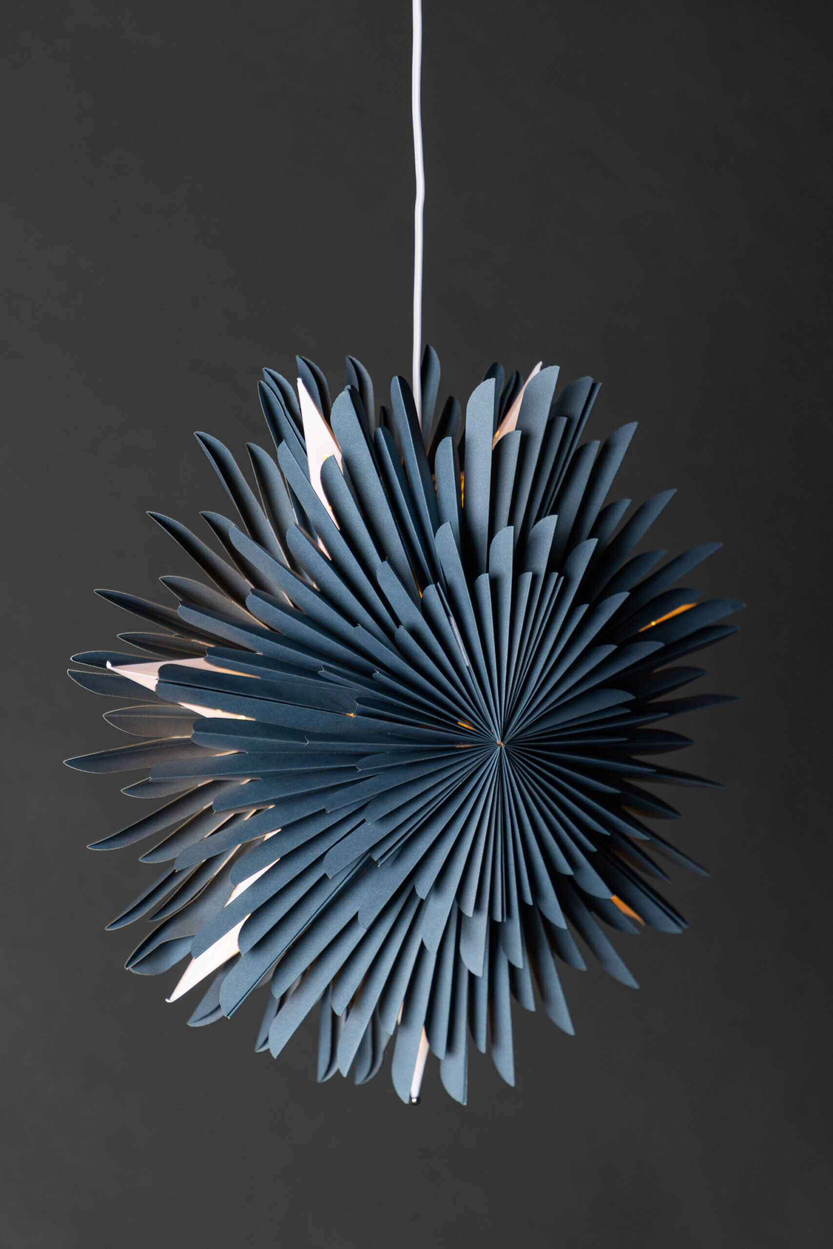 Sälen on valmistatud mitmest kihist volditud paberist, mis annab harmoonilise ja meeldiva valgustuse, luues samas ruumi kauni sügavuse. Diskreetne valge juhe võimaldab lambil loomulikult sulanduda igasse ruumi.