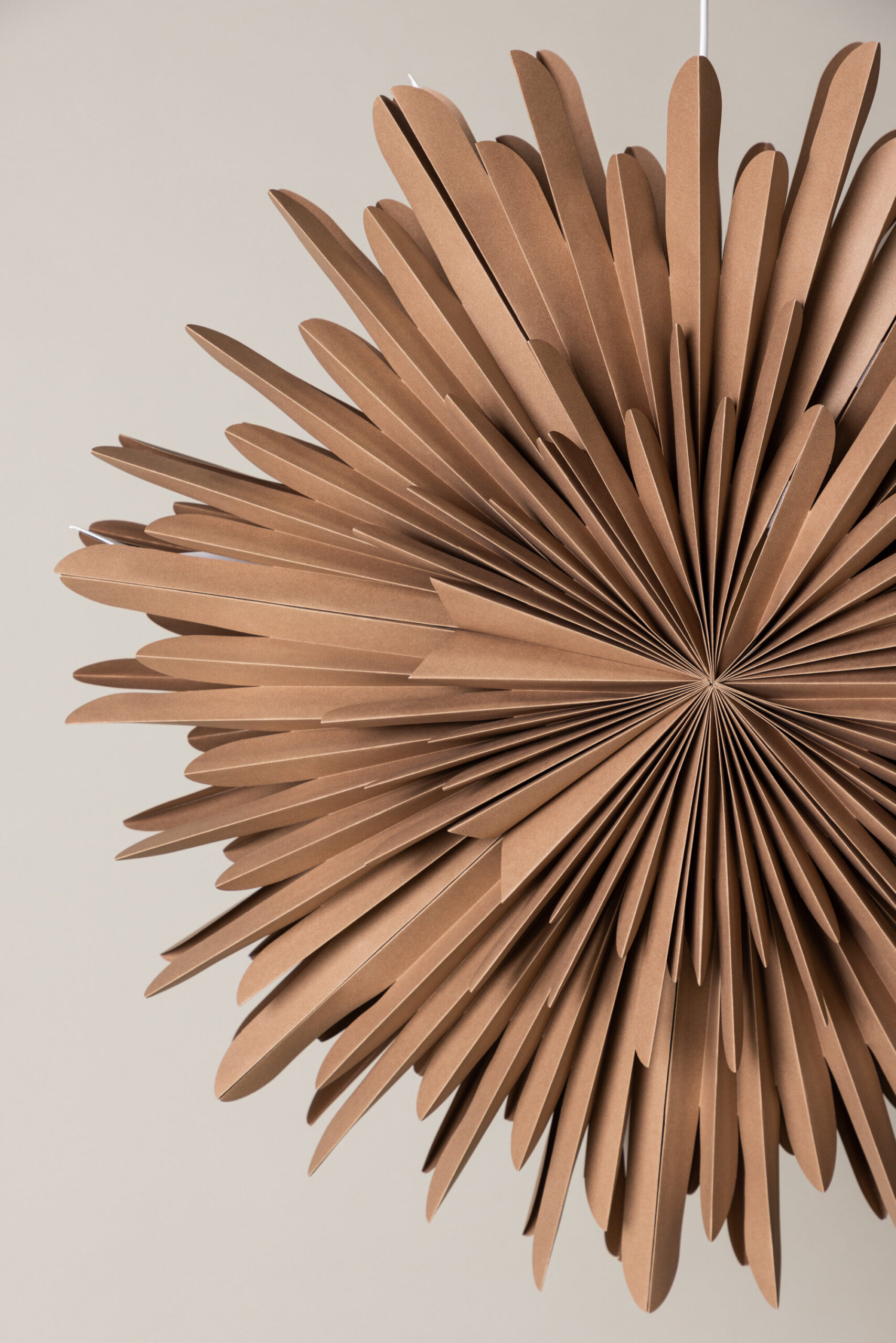 Sälen ei ole lihtsalt tavaline laelamp – see on valmistatud mitmest kihist volditud paberist, mis lasevad läbi mõnusa hulga valgust, luues ruumi kauni kuma. Valge juhe tagab diskreetse vedrustuse, võimaldades lambil saada teie kodu pilkupüüdvaks täheks.