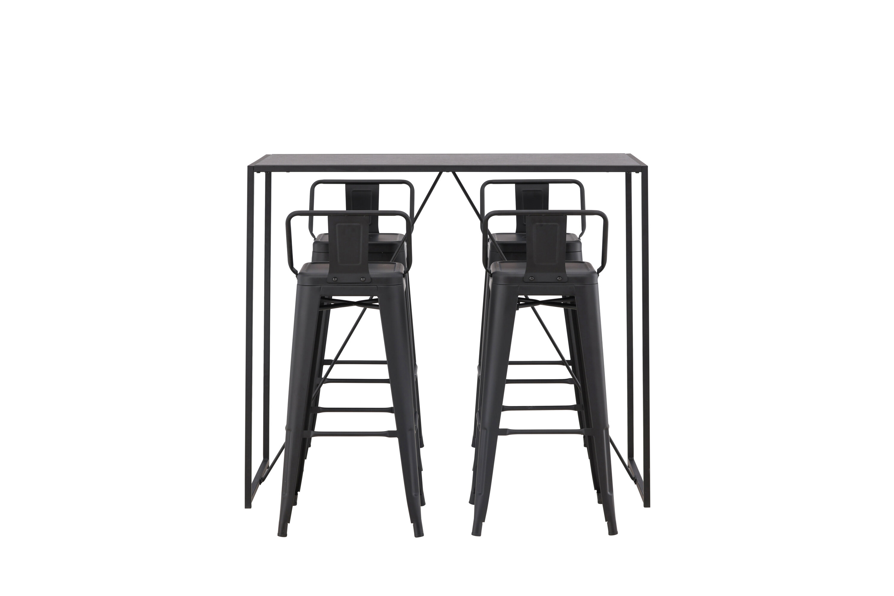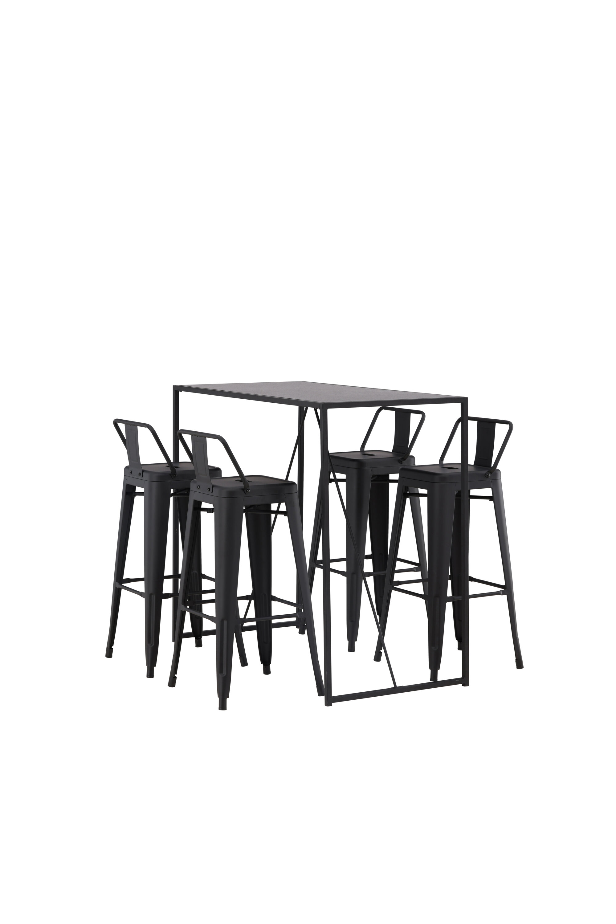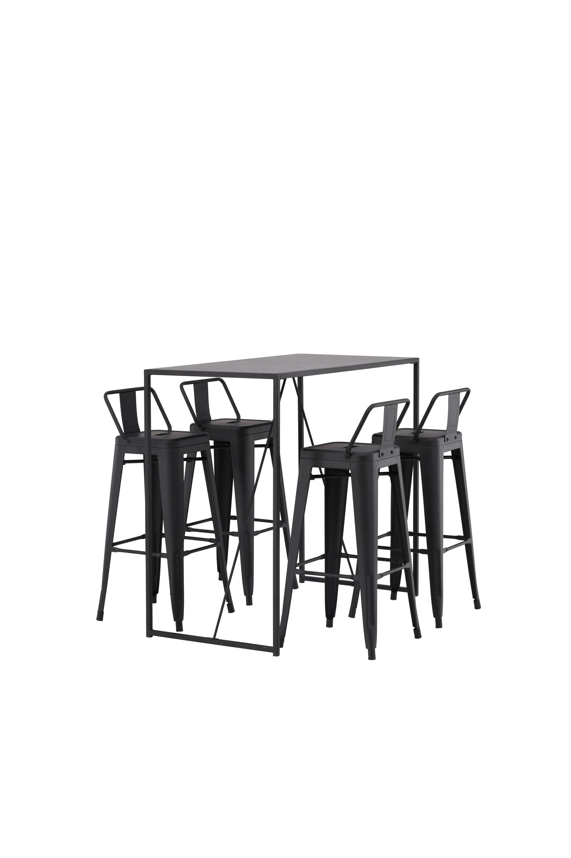 Stiilne ja trendikas baarigrupp neljale! Siin on baaripukid Tempe kombineeritud baarilauaga Brea, mis annab modernse ja industriaalse ilme. Baaripukil on klassikaline disain kõrgemast, veidi laienevate jalgadega tabureist, madalama mustast terasest seljatoega istme ja jalatugede raamiga. Baarilaual on skandinaavialik ja minimalistlik disain, mille lauaplaat on õhukesest mustast MDF-st ja kitsa raami struktuuriga mustast terasest. See baarigrupp sobib suurepäraselt neile, kes eelistavad köögis kõrgemaid istekohti või avatud põrandaplaaniga inimestele, kes soovivad kokkamisel istuvat seltskonda.