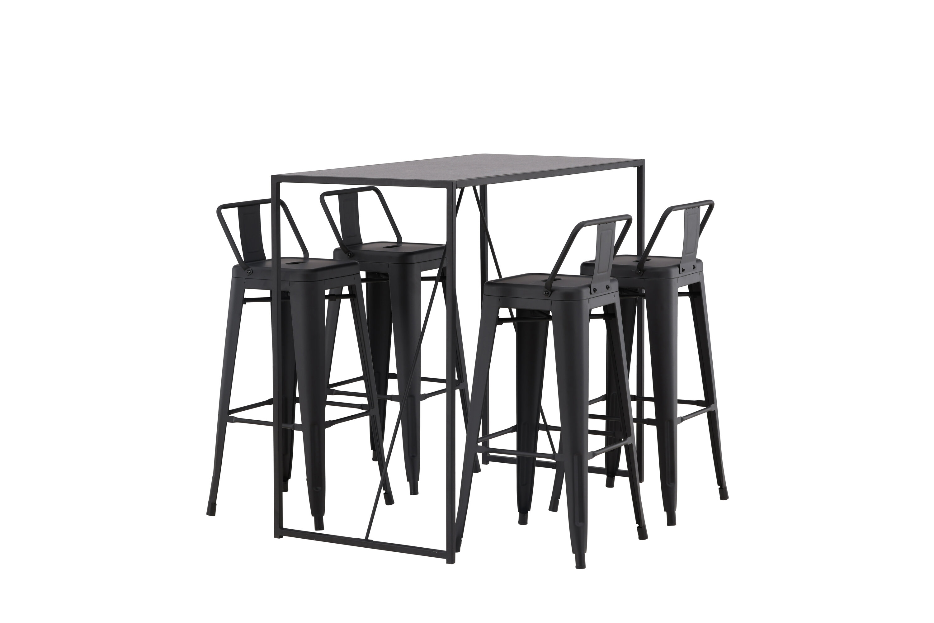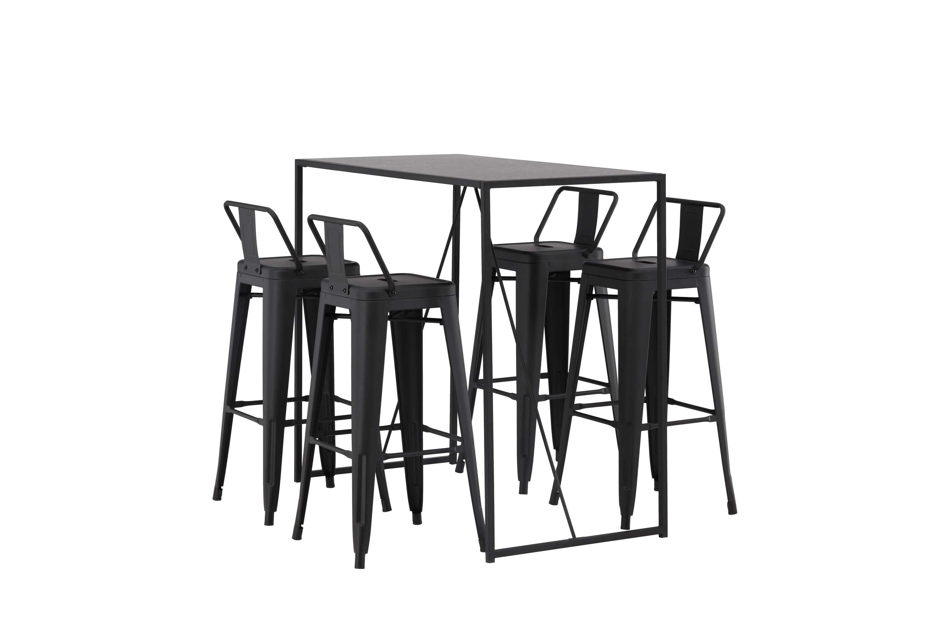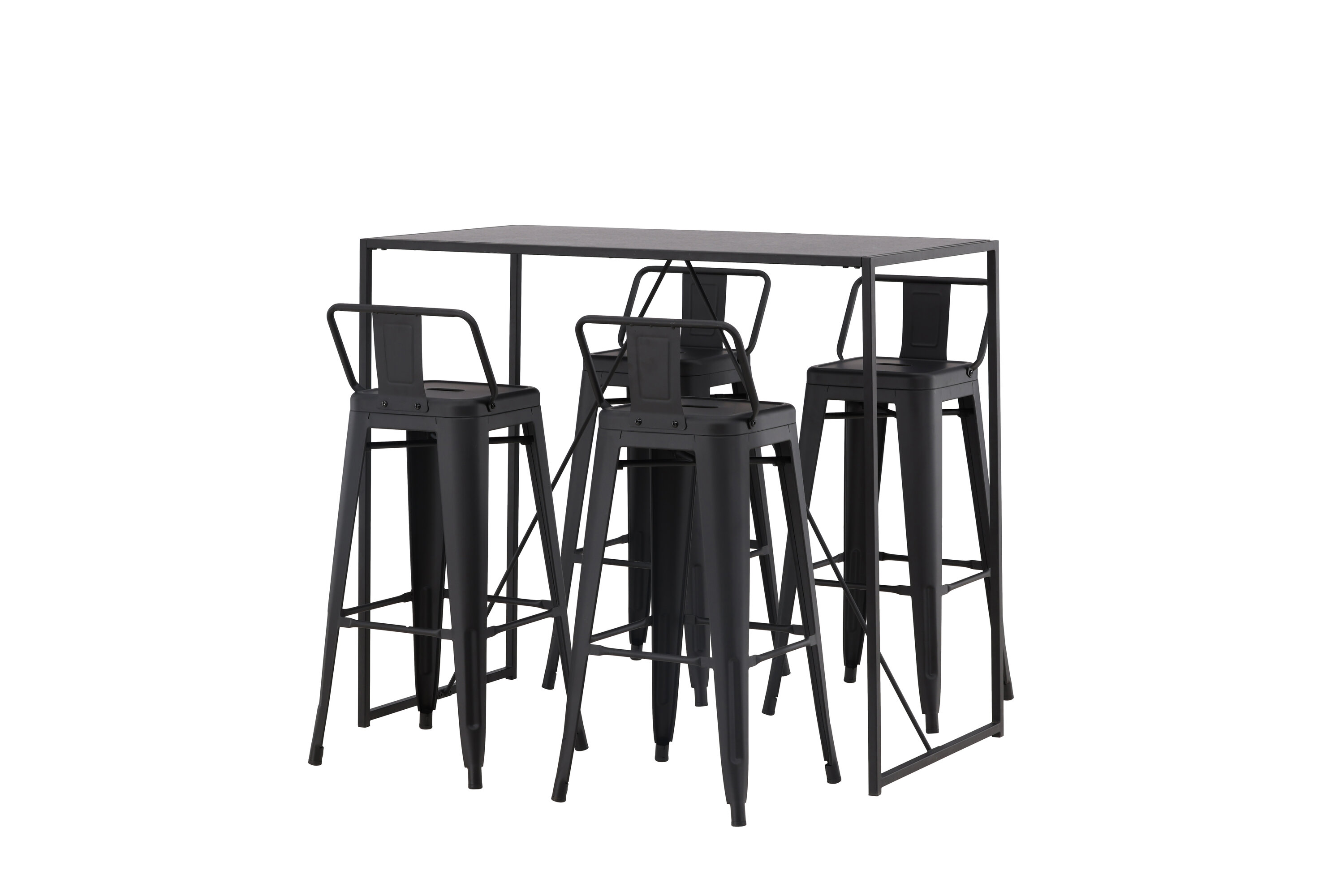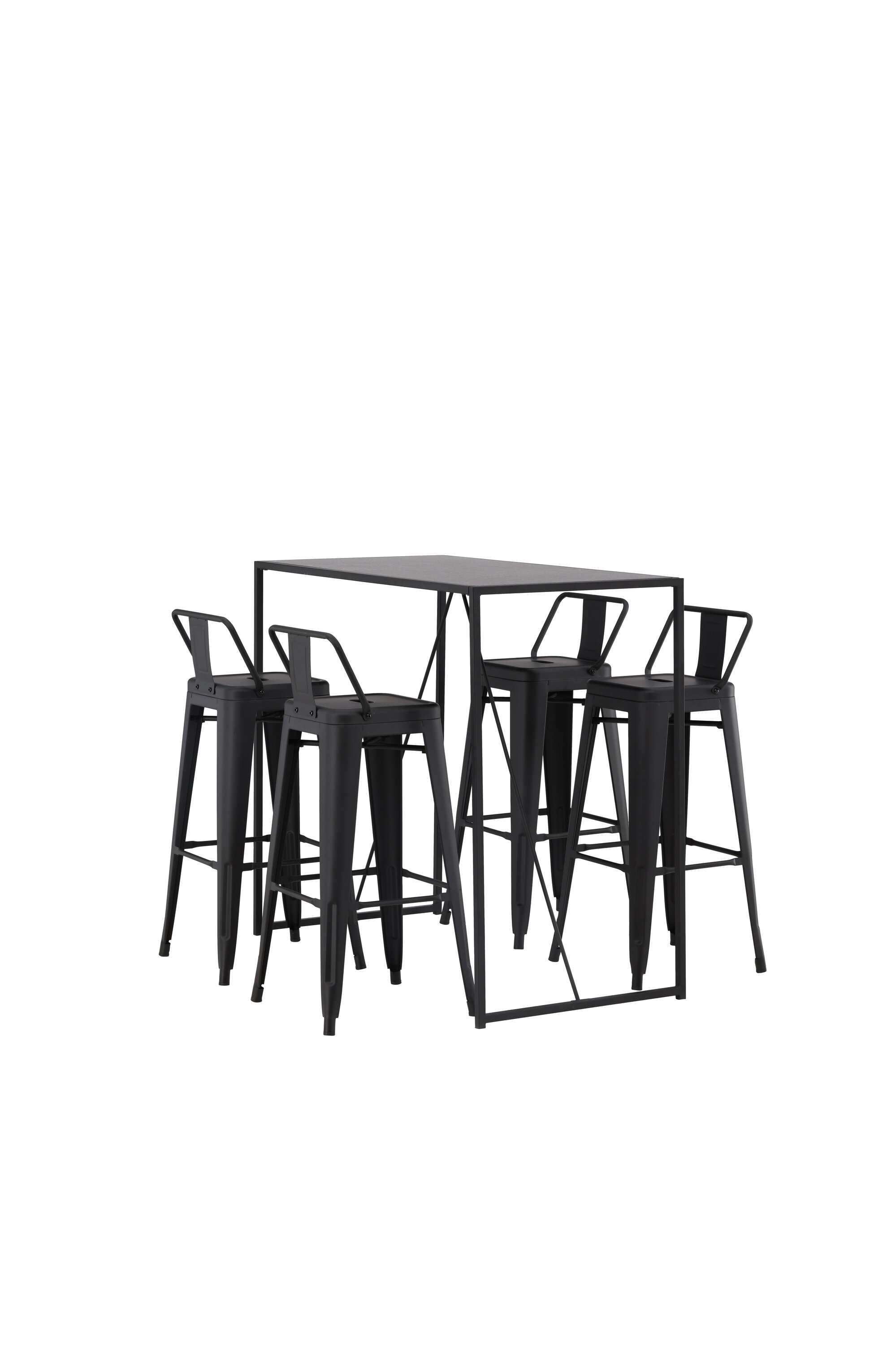 Stiilne ja trendikas baarigrupp neljale! Siin on baaripukid Tempe kombineeritud baarilauaga Brea, mis annab modernse ja industriaalse ilme. Baaripukil on klassikaline disain kõrgemast, veidi laienevate jalgadega tabureist, madalama mustast terasest seljatoega istme ja jalatugede raamiga. Baarilaual on skandinaavialik ja minimalistlik disain, mille lauaplaat on õhukesest mustast MDF-st ja kitsa raami struktuuriga mustast terasest. See baarigrupp sobib suurepäraselt neile, kes eelistavad köögis kõrgemaid istekohti või avatud põrandaplaaniga inimestele, kes soovivad kokkamisel istuvat seltskonda.