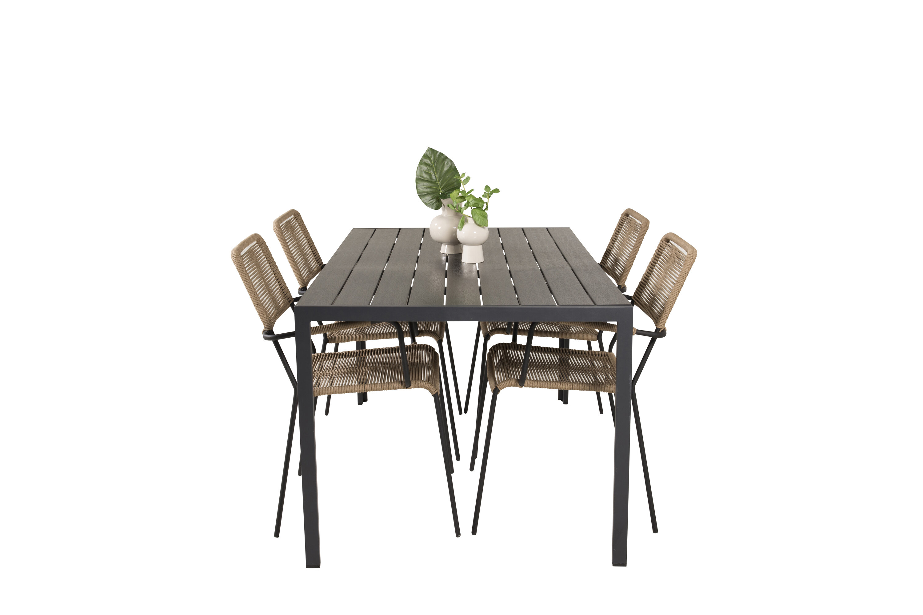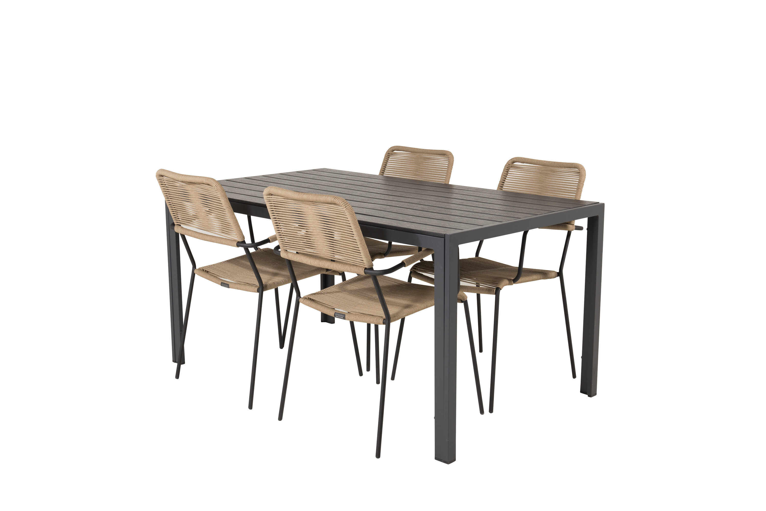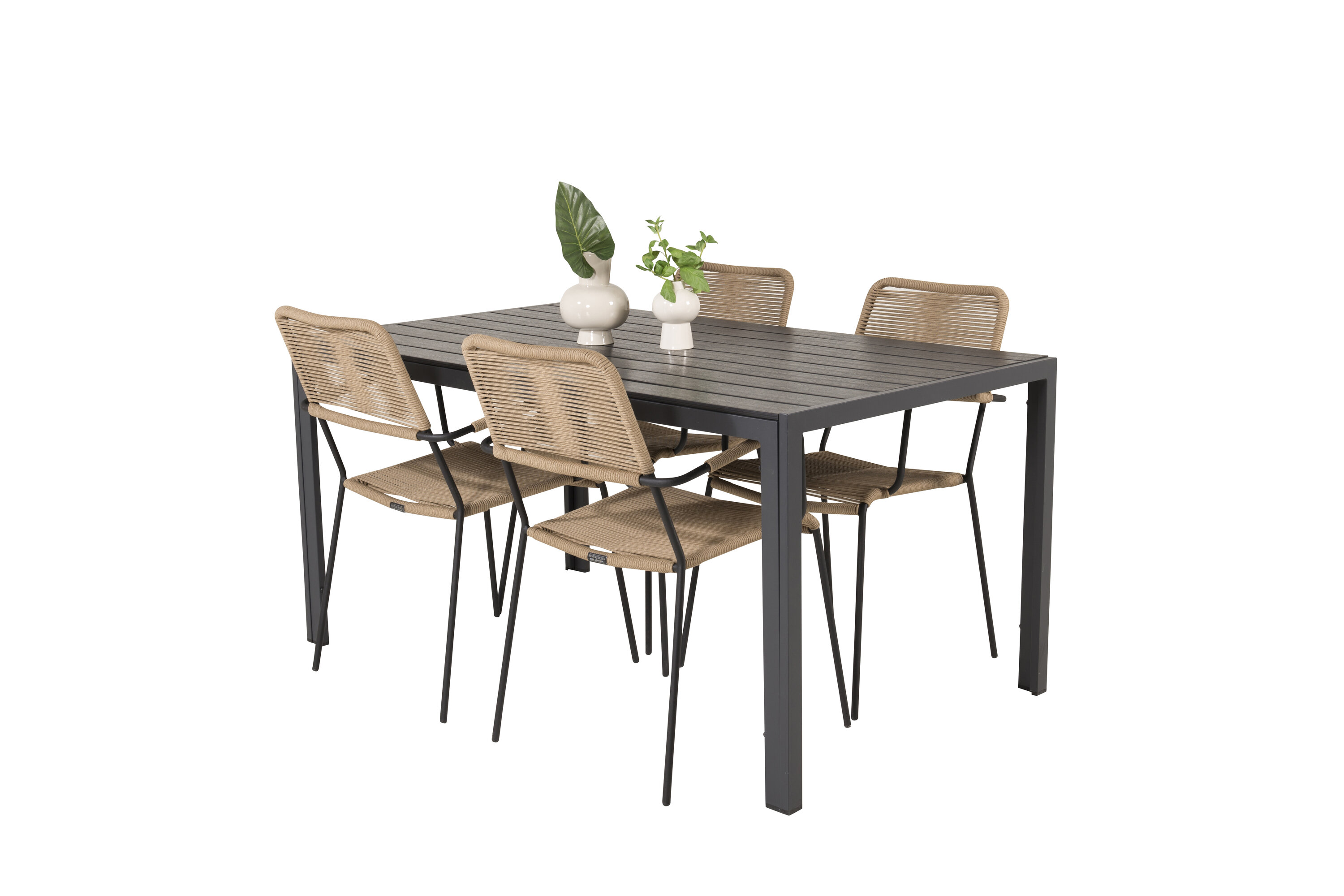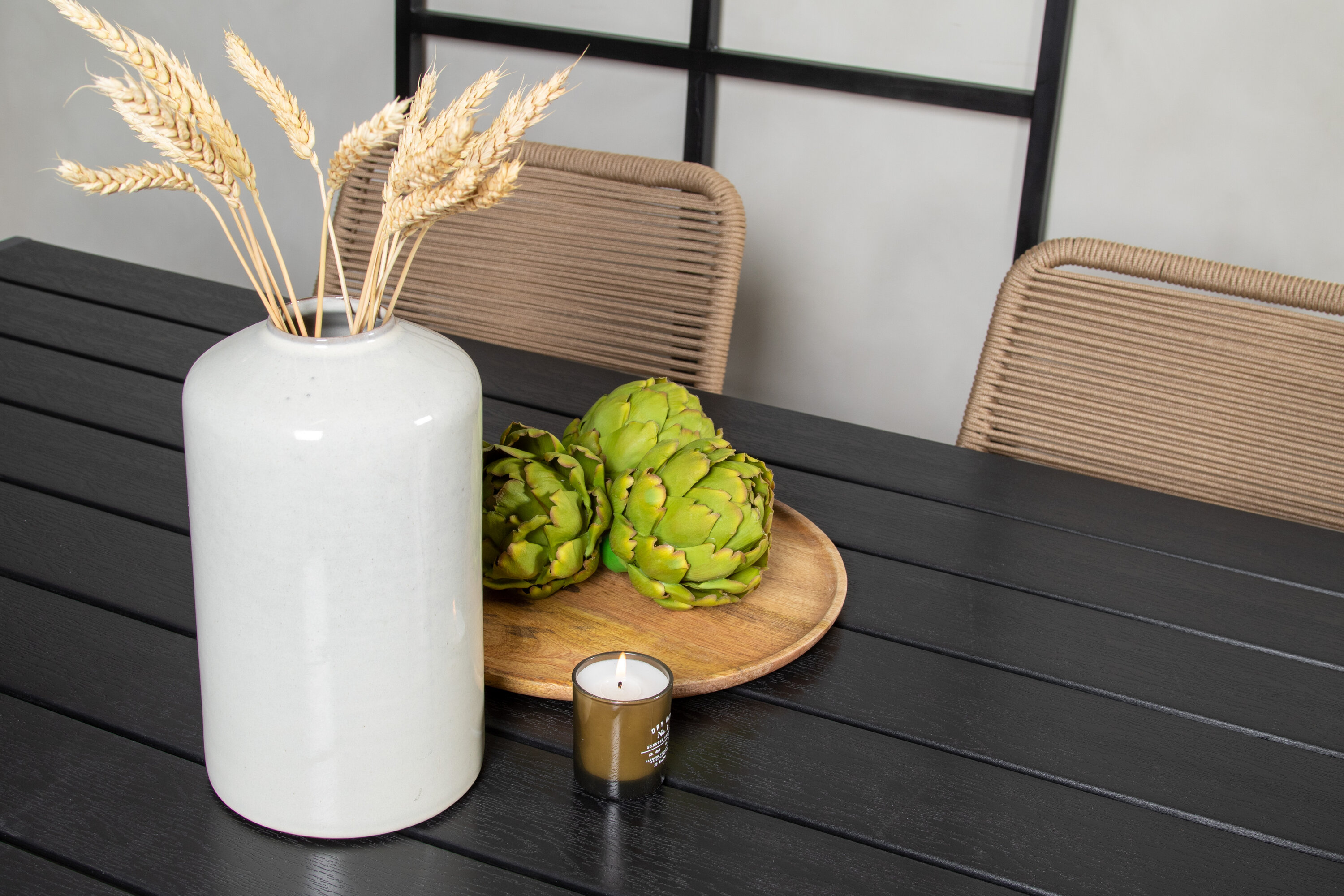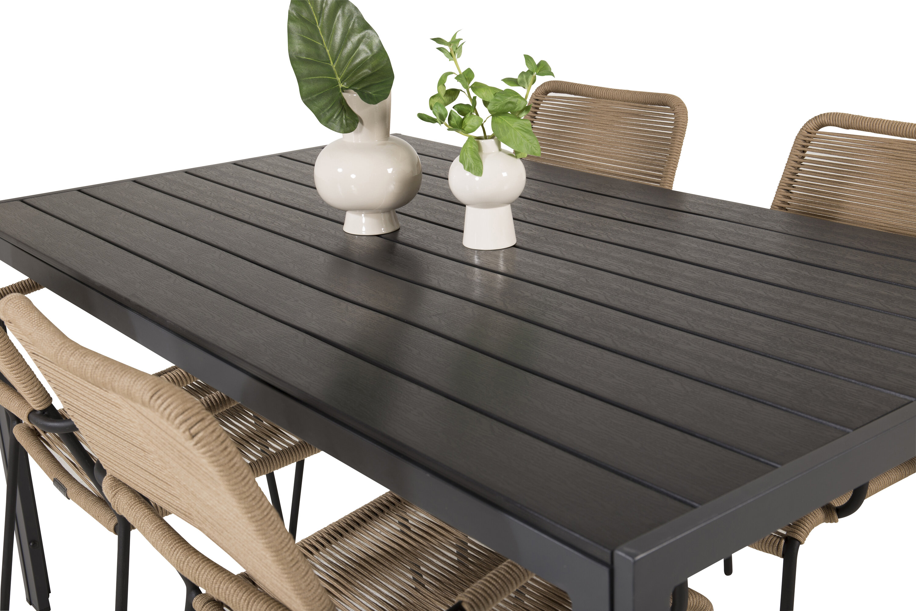 Karm toidugrupp, kus ühendame lihtsa elegantsi boheemlasliku disainiga! Meie söögilaud on kenast mustast puidust, siin koos trendikindlate Lindose seeria söögitoolidega. Sisusta terrass selle moodsa toidugrupiga, mis annab luksustunde ja pikendab selle suve õhtusöögihetki!