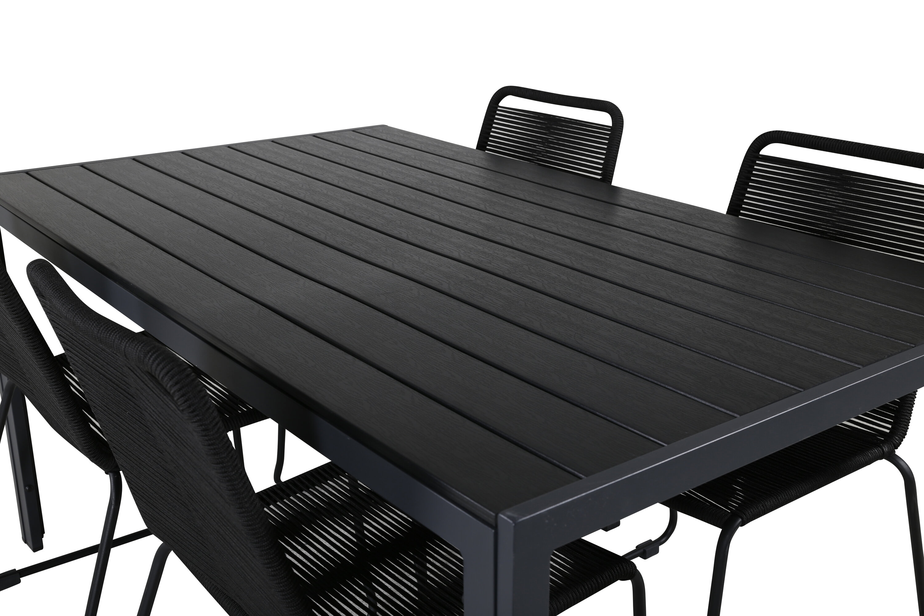Loo õues stiilne atmosfäär pilkupüüdva kaasaegses vaimus toidugrupiga! Meie populaarsed söögitoolid Lindos annavad oma minimalistliku disainiga tõeliselt tooni. Toolid on praktiliseks hoiustamiseks virnastatavad ja valmistatud kitsast mustast alumiiniumkonstruktsioonist, mille iste on mustast kootud köiest. Siin koos meie ristkülikukujulise söögilauaga murdub otse põhjamaises vormis. Lauaplaat on mustast vineerist ja alumiiniumist alusvankriga. Lihtsalt hästi läbimõeldud toidugrupp, millega saad hõlpsasti luua võluvaid välikeskkondi!