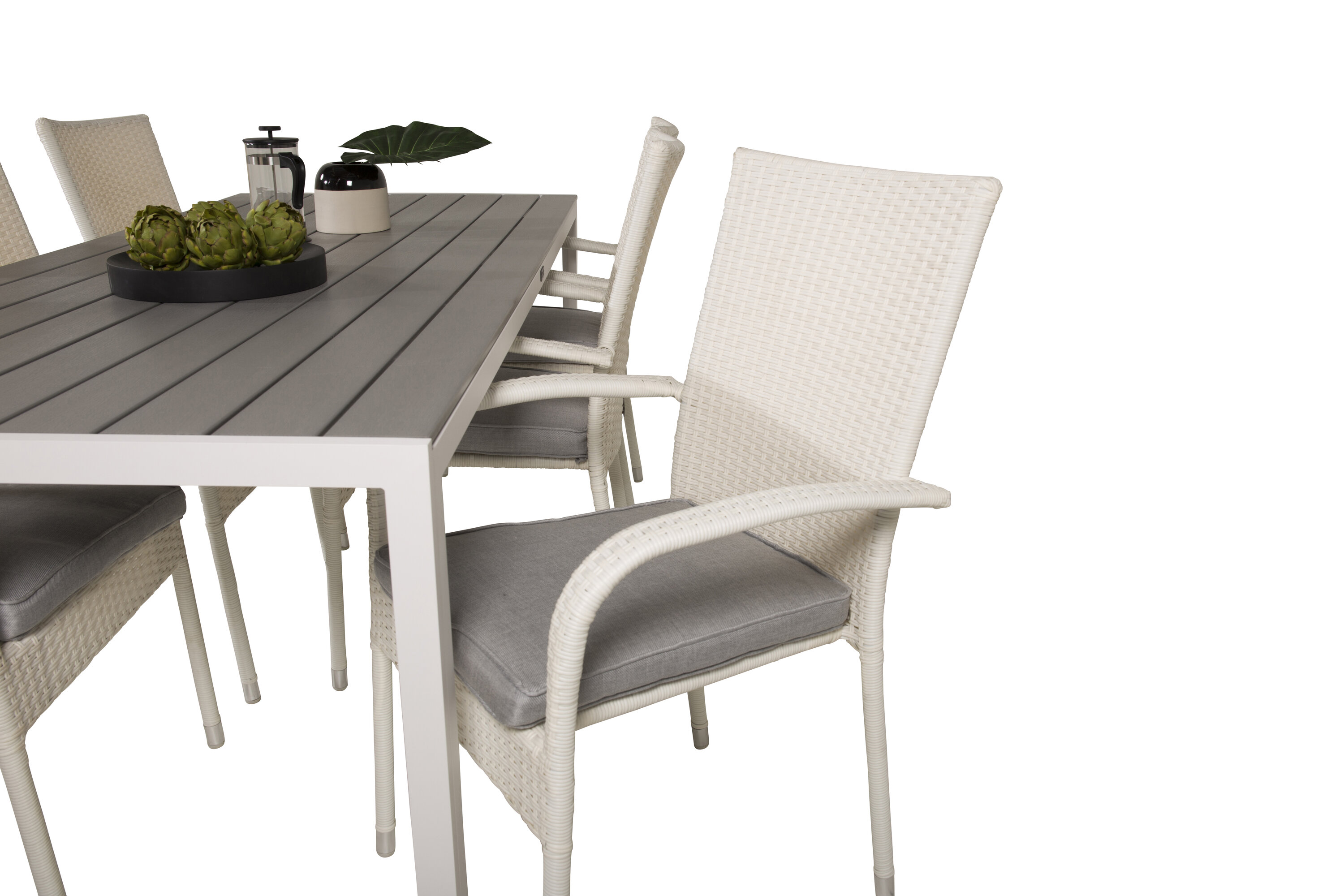 Kerge ja värske toidugrupp, mis tõstab teie terrassi järgmisele tasemele! Siin on meie klassikaline söögilaud kombineeritud Anna sarja stiilsete söögitoolidega. Moodne stiilse disainiga toidugrupp, mis särab kõikidel imelistel suveõhtutel!