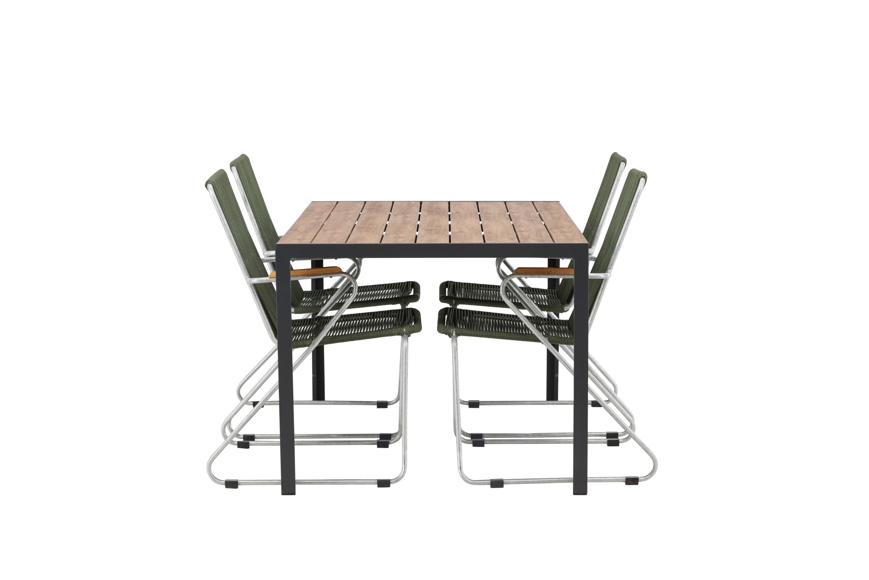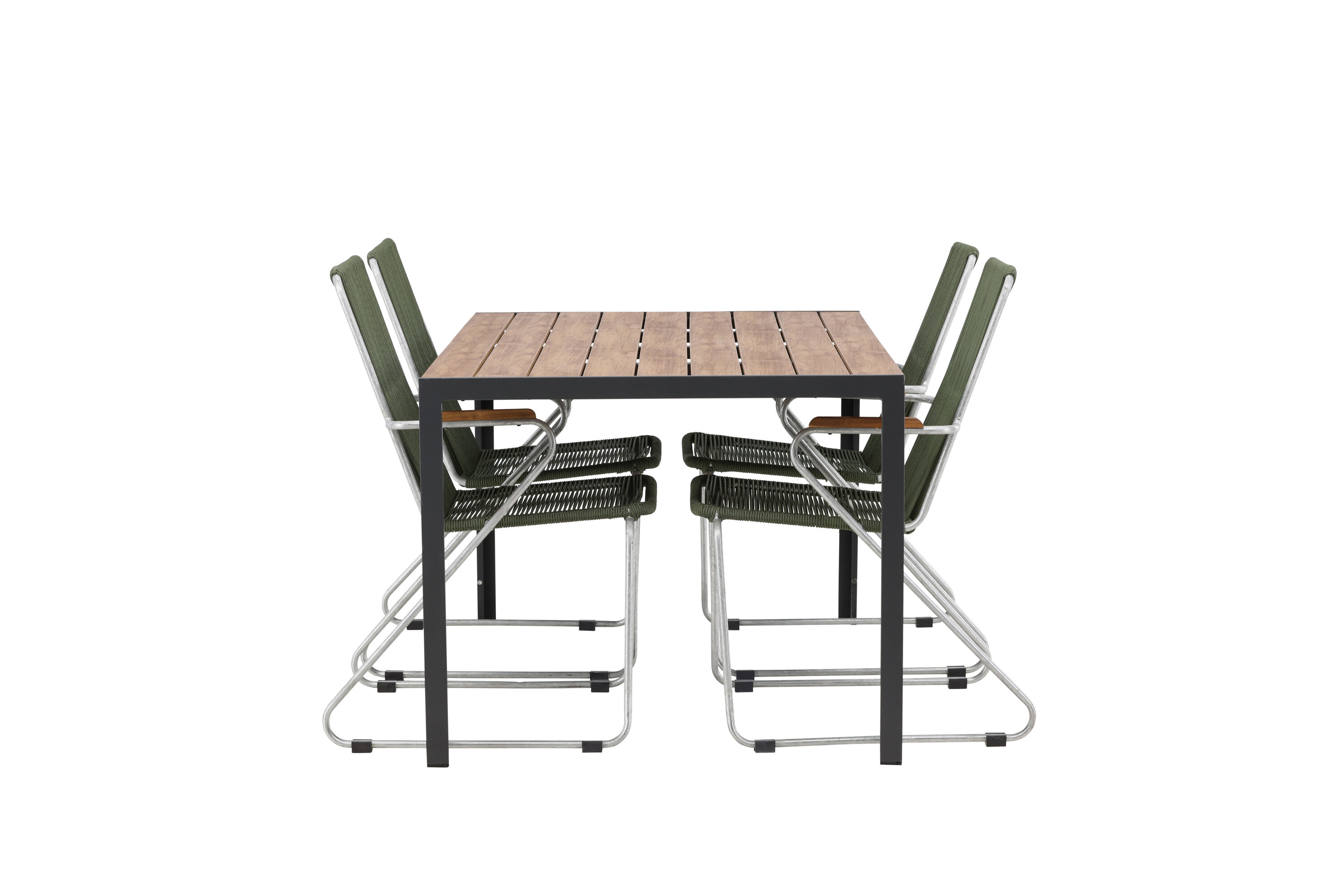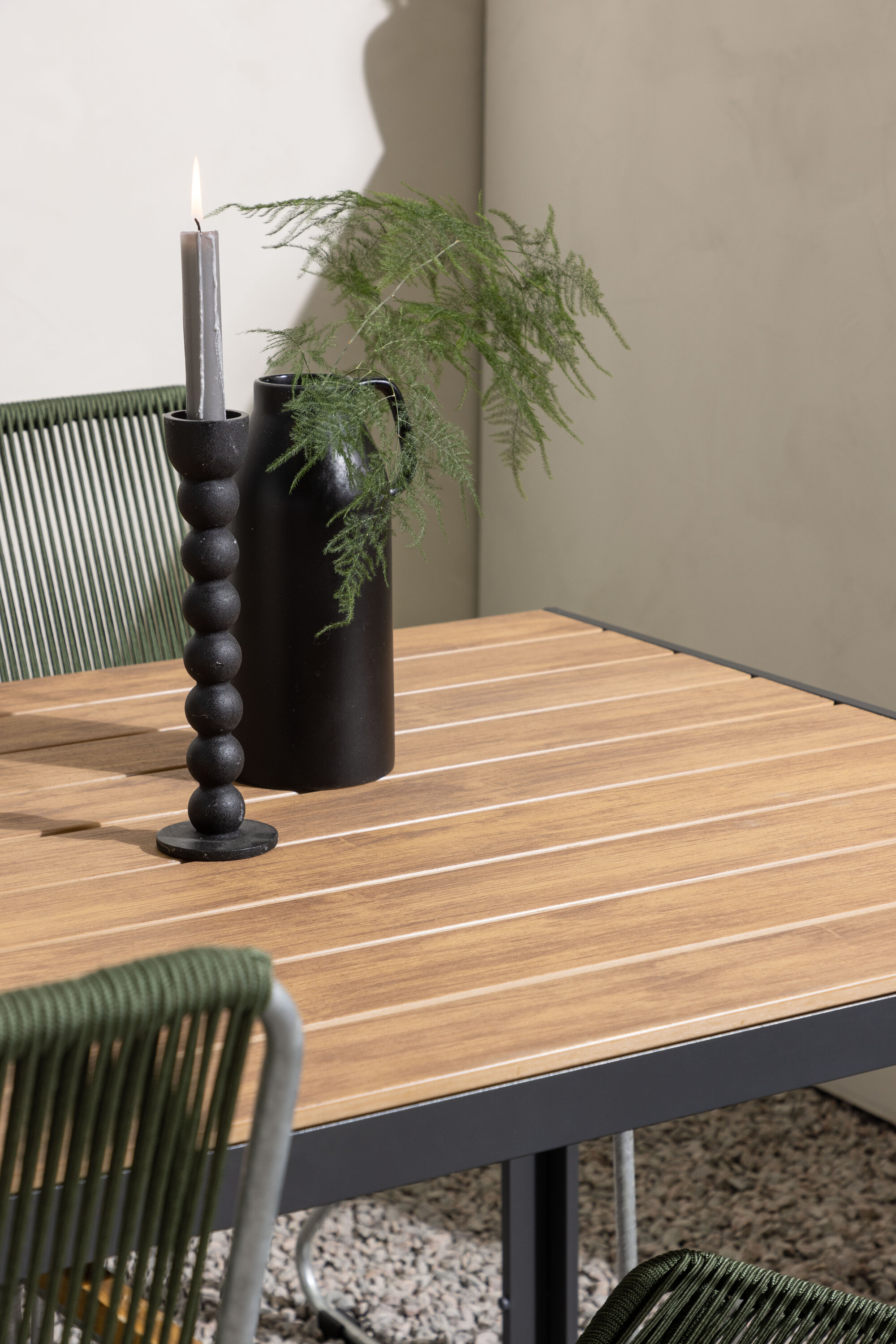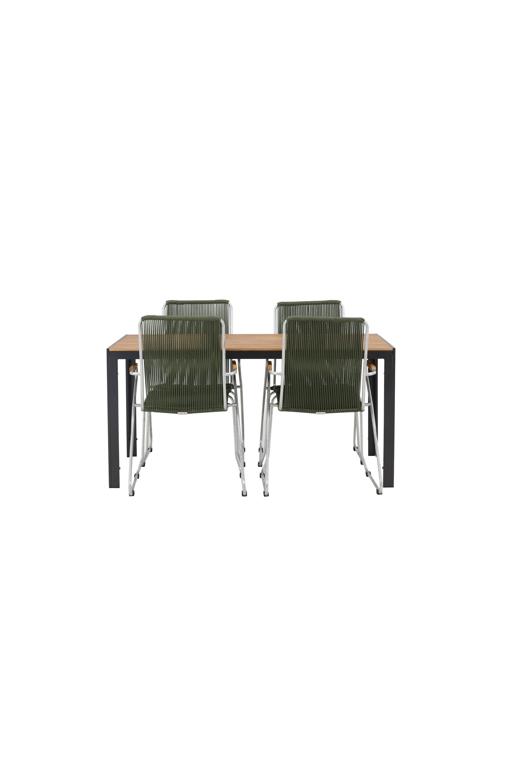 Lõhkuge kõik lihtsad värvid hüppelise värvikombinatsiooniga – siit leiate söögigrupi, mis avaldab muljet! Ristkülikukujuline söögilaud Break on sirgete põhjamaiste vormidega vineerist lauaplaadi ja mustade alumiiniumist lauajalgadega. Siin ainulaadses kombinatsioonis 4 Bois sarja rohelise söögitooliga. Sellel toolil on mugav tsinkkonstruktsioon, iste rohelisest köiest ja dekoratiivsed tiikpuust käetoed. Söögigrupp on välikindel ja sobib nii terrassile kui talveaeda! Laua mõõdud: 150x90cm.