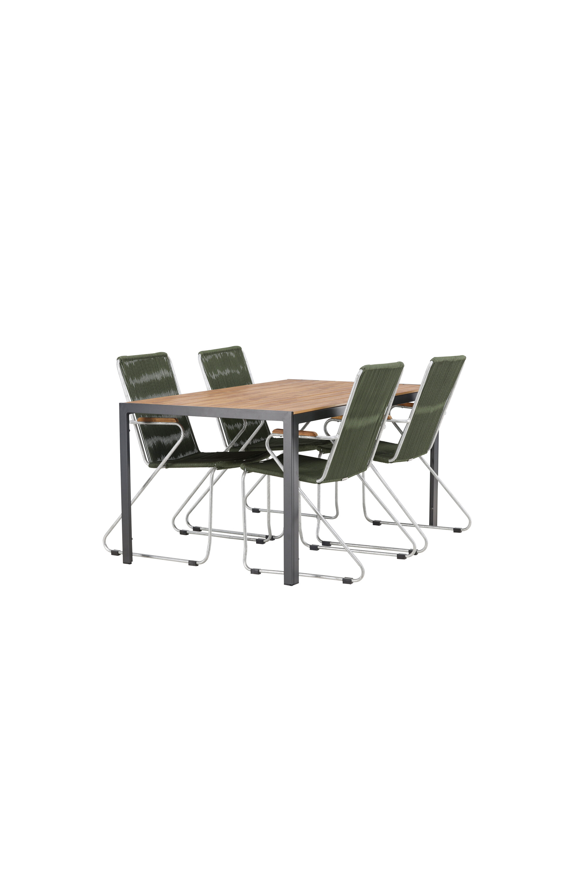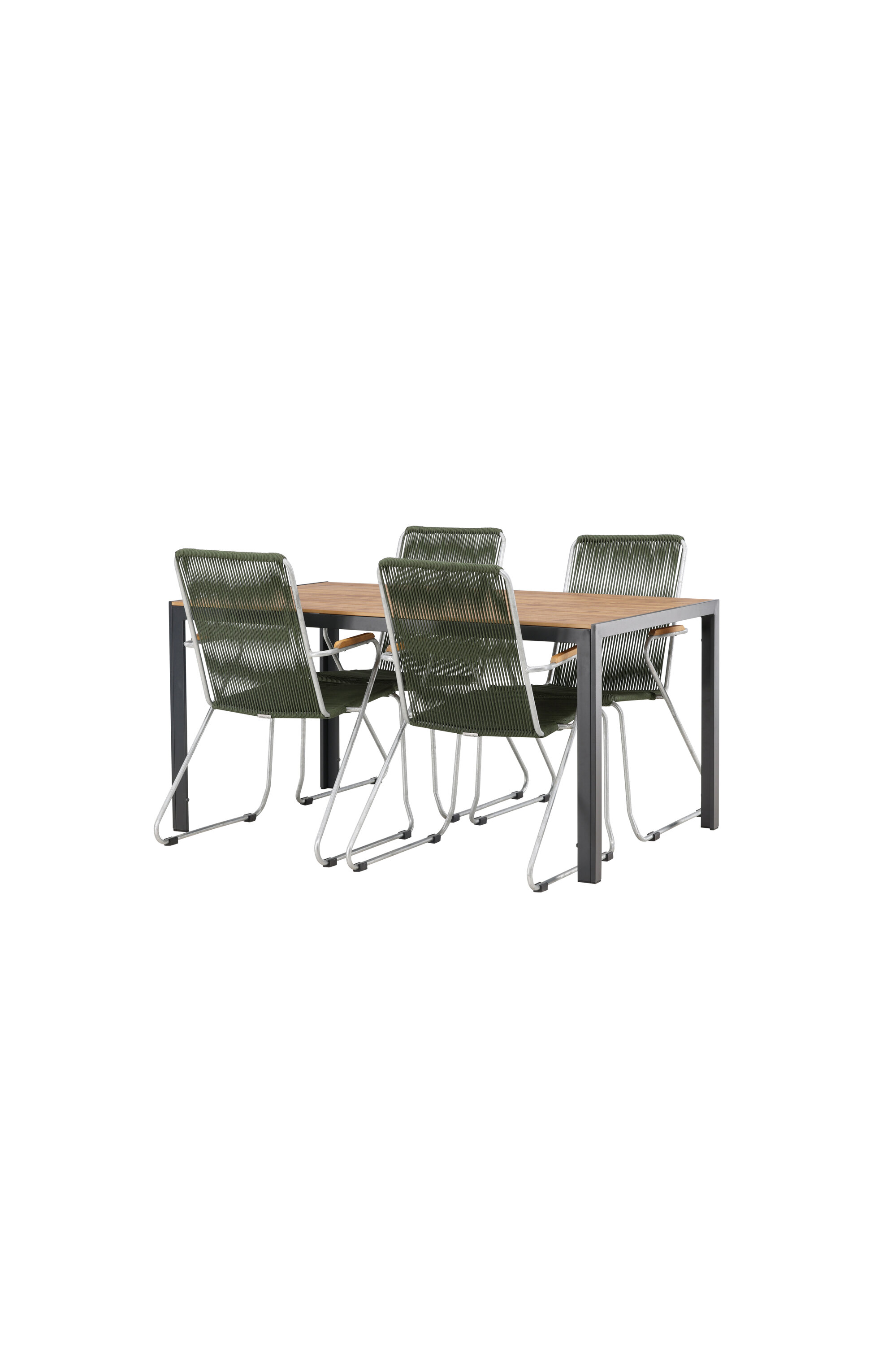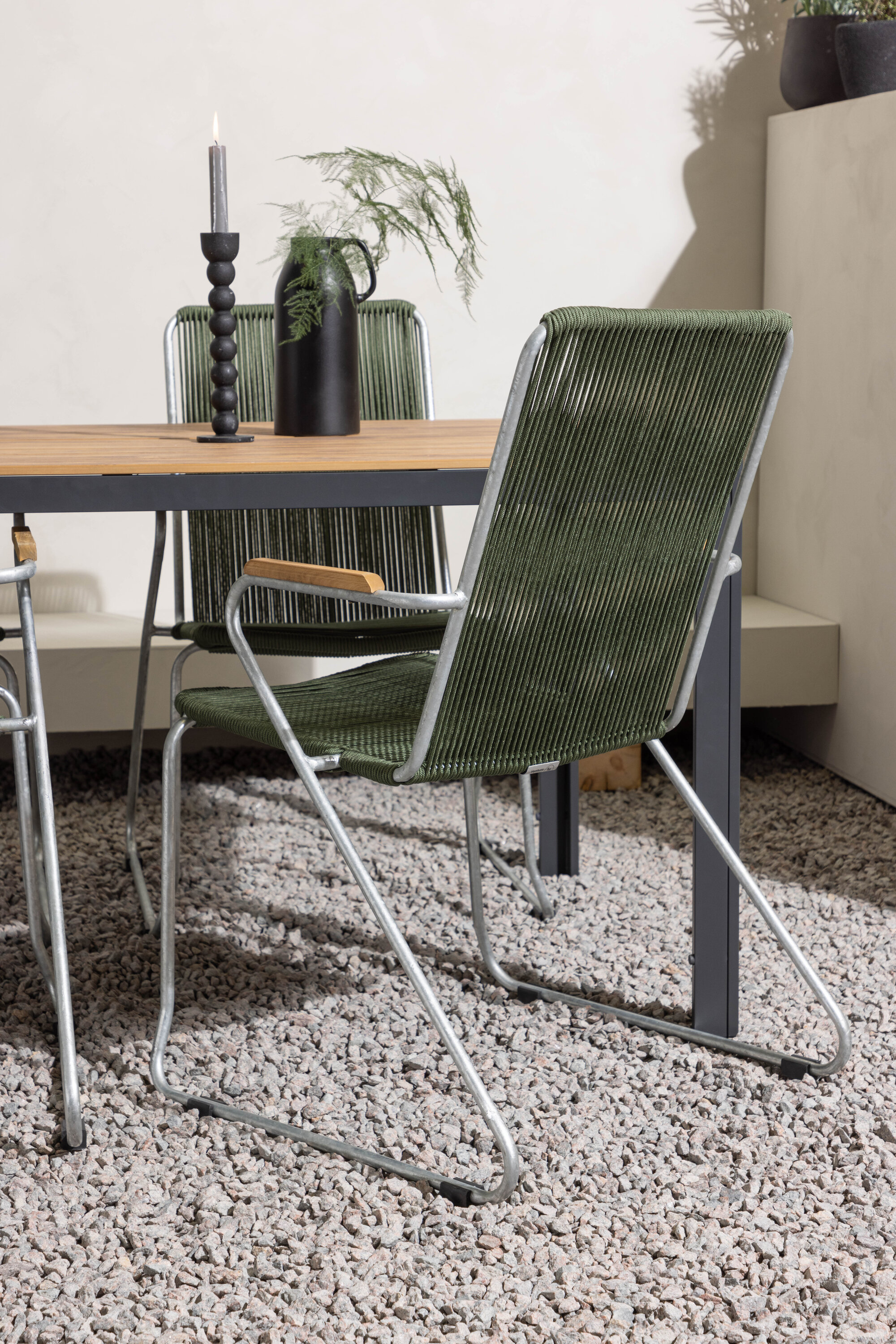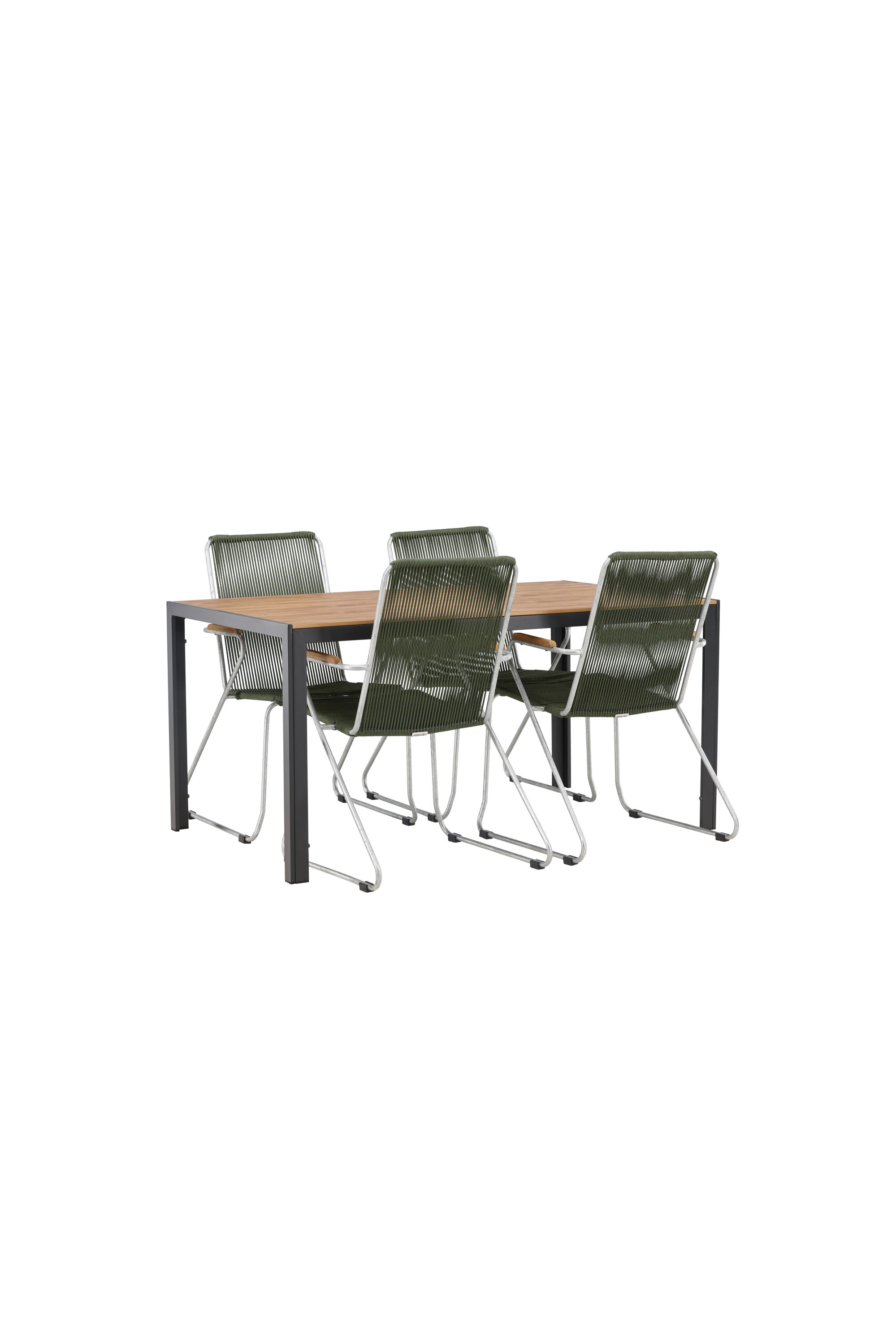 Lõhkuge kõik lihtsad värvid hüppelise värvikombinatsiooniga – siit leiate söögigrupi, mis avaldab muljet! Ristkülikukujuline söögilaud Break on sirgete põhjamaiste vormidega vineerist lauaplaadi ja mustade alumiiniumist lauajalgadega. Siin ainulaadses kombinatsioonis 4 Bois sarja rohelise söögitooliga. Sellel toolil on mugav tsinkkonstruktsioon, iste rohelisest köiest ja dekoratiivsed tiikpuust käetoed. Söögigrupp on välikindel ja sobib nii terrassile kui talveaeda! Laua mõõdud: 150x90cm.
