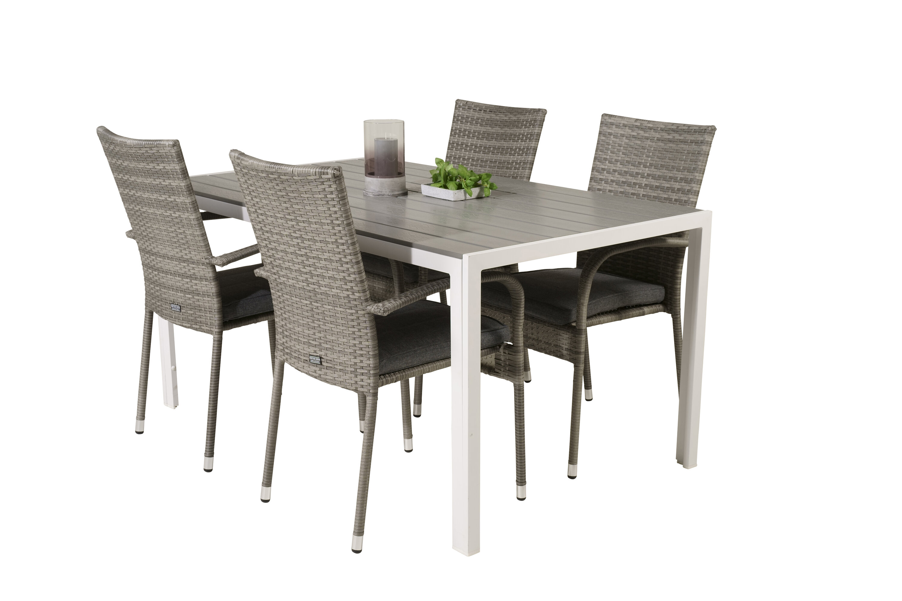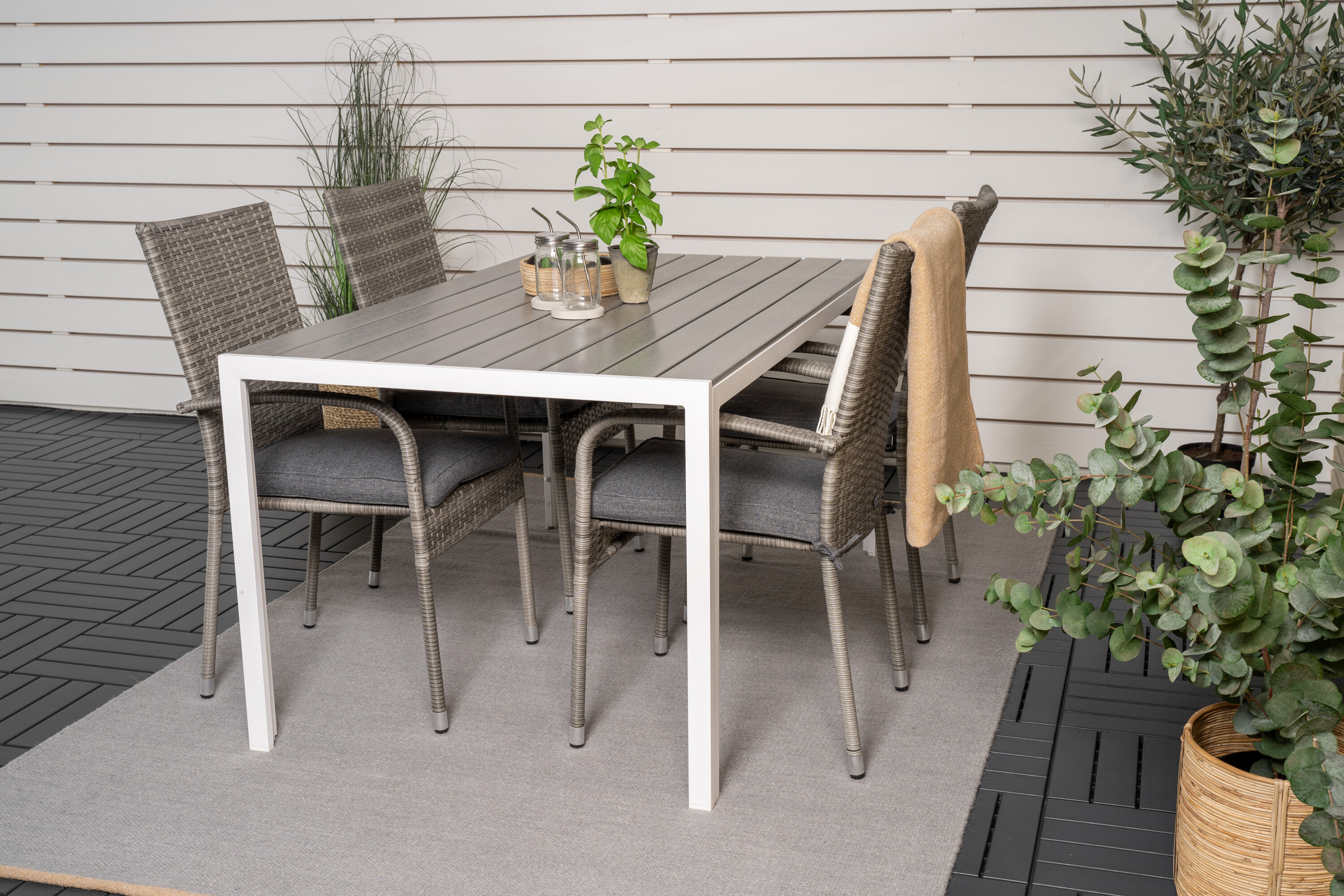 Peenikese disainiga söögilauapaus koos söögitoolidega Anna – ideaalne kombinatsioon neile, kes soovivad terrassile trendikat toidugruppi. Toolide kõrge istumismugavus kutsub teid pikkadele ja imelistele hetkedele suhtlemiseks!