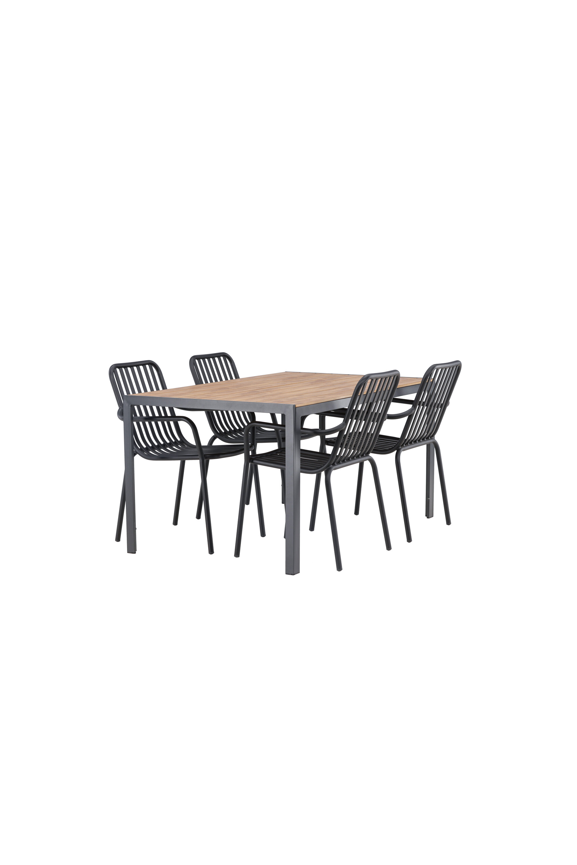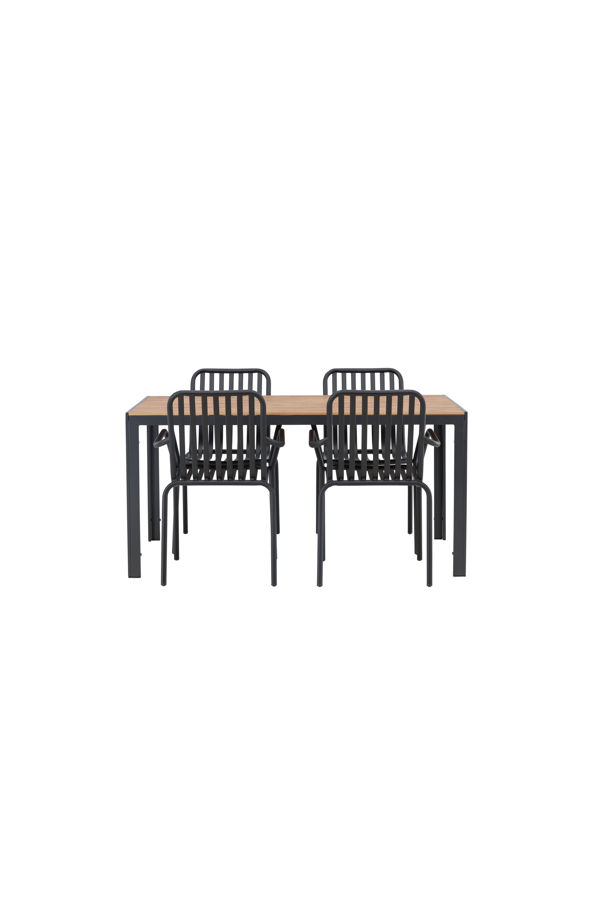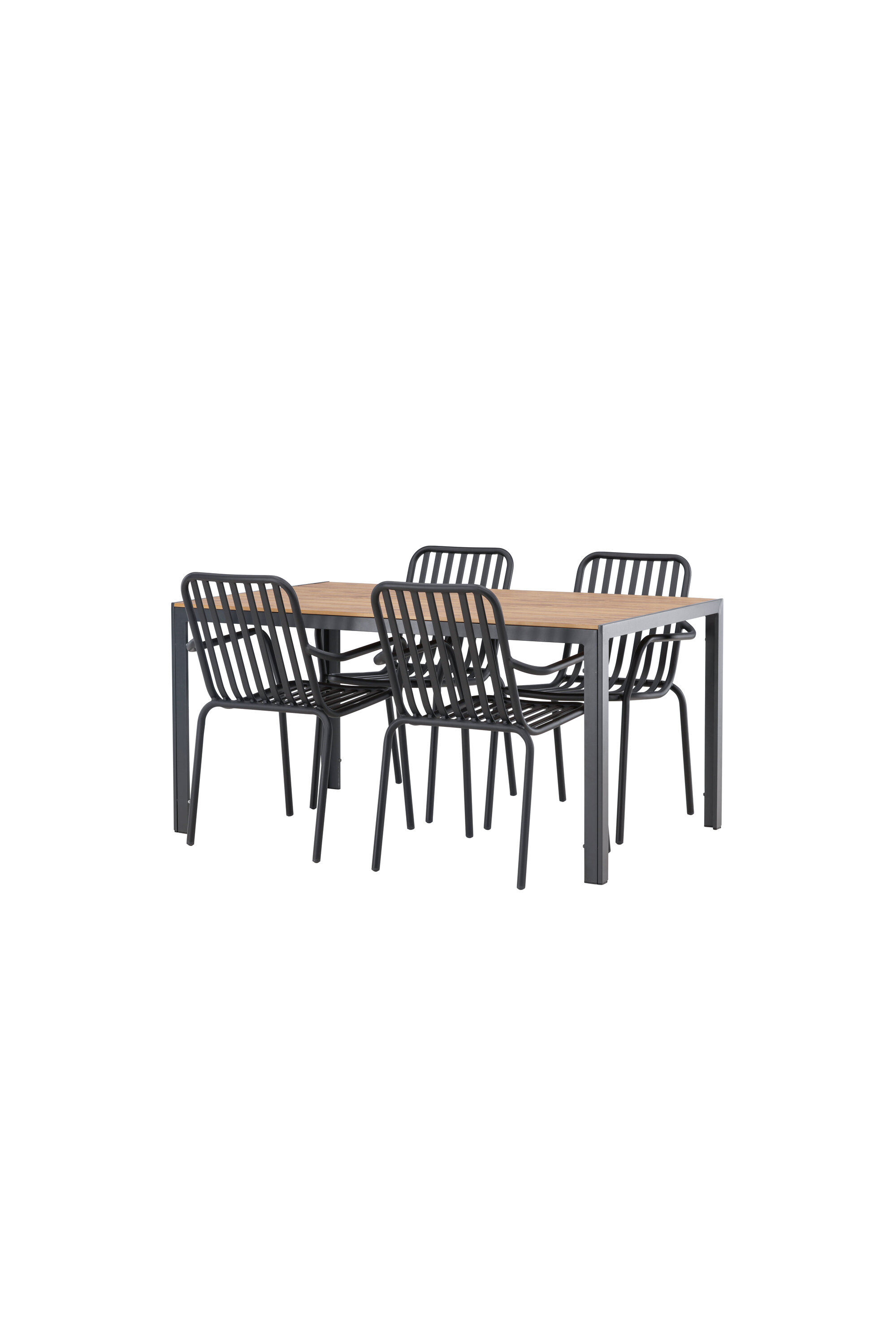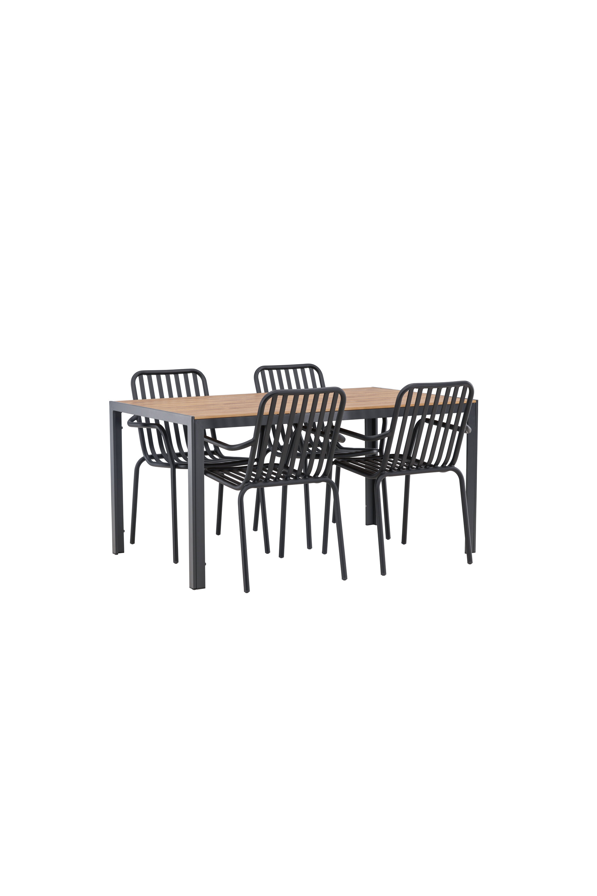 Looge oma terrassil trendikas tunne tõeliselt sobiva söögigrupiga! Meie ristkülikukujuline söögilaud Break on klassikalise põhjamaise disainiga sirge kujuga, vineerist lauaplaadi ja mustast alumiiniumist lauajalad. Siin on stiilne kombinatsioon 4 Pekingi seeria söögitooliga. Tooli soonik disain ja tahmane must värv muudavad selle nii modernseks kui ka ajatuks. Valmistatud alumiiniumist, mis muudab selle hõlpsaks liikumiseks ja lisaks on integreeritud käetoed lisamugavuse tagamiseks. Siin saate pikka aega maha istuda ja oma terrassi nautida! Laua mõõdud: 150x90cm.