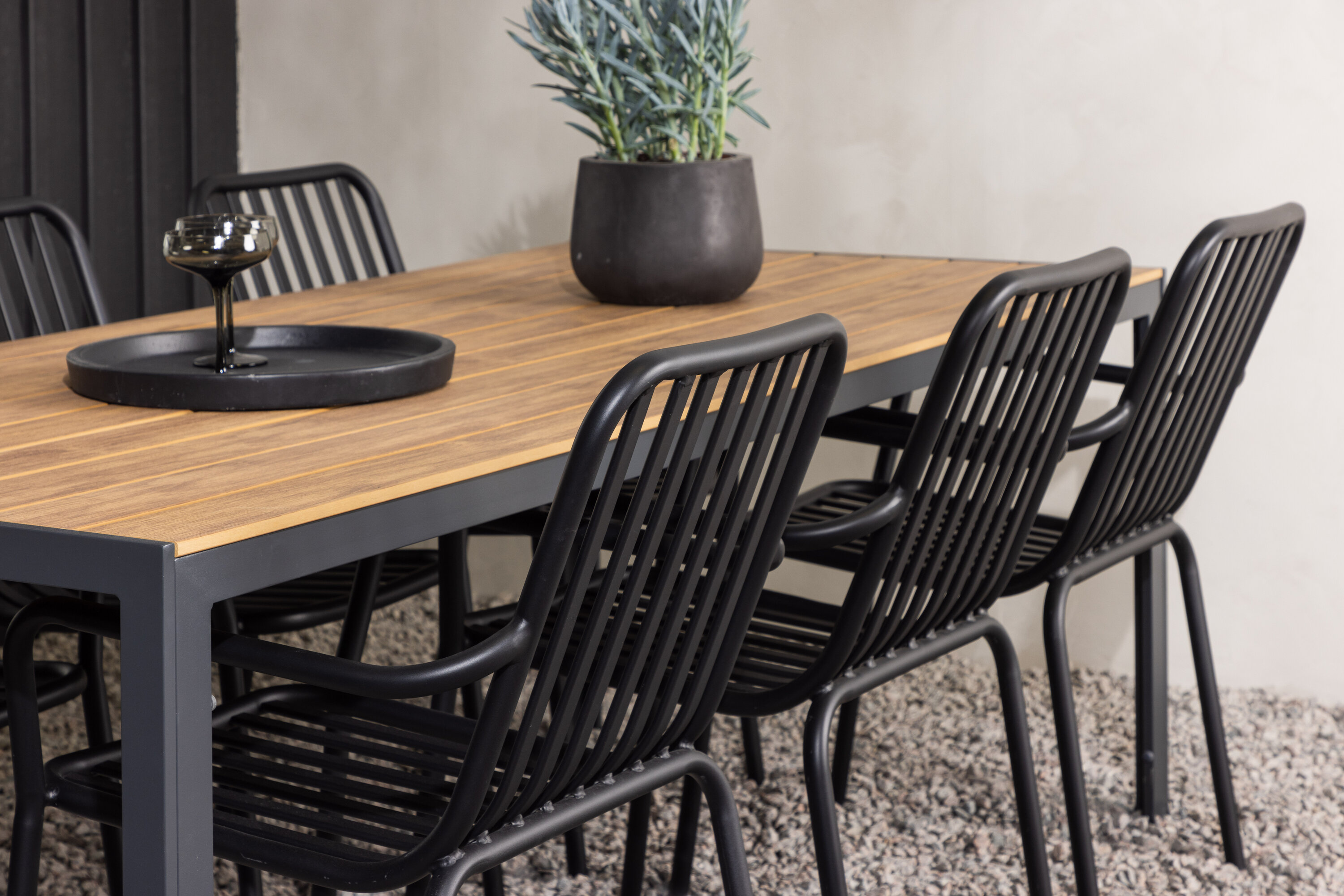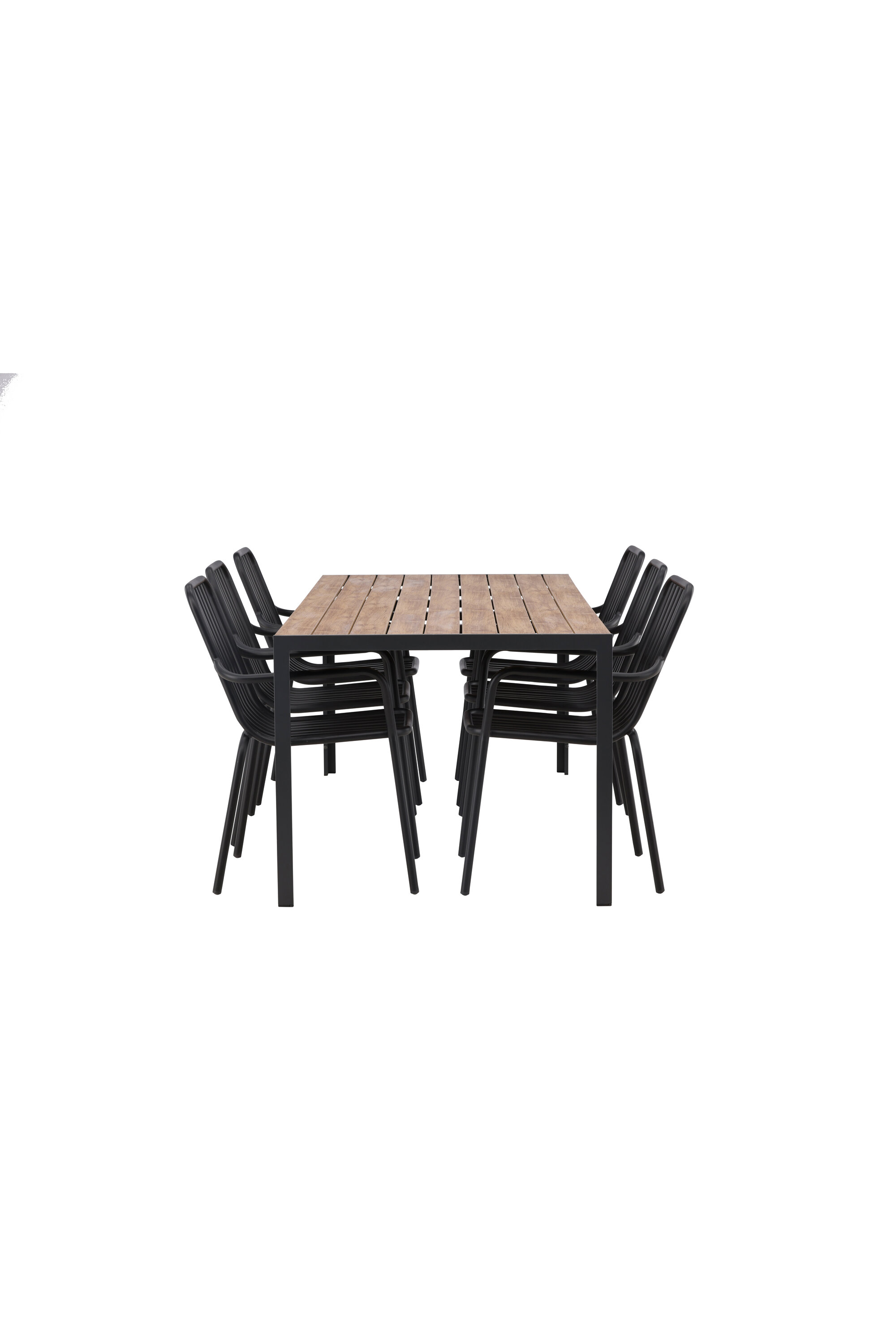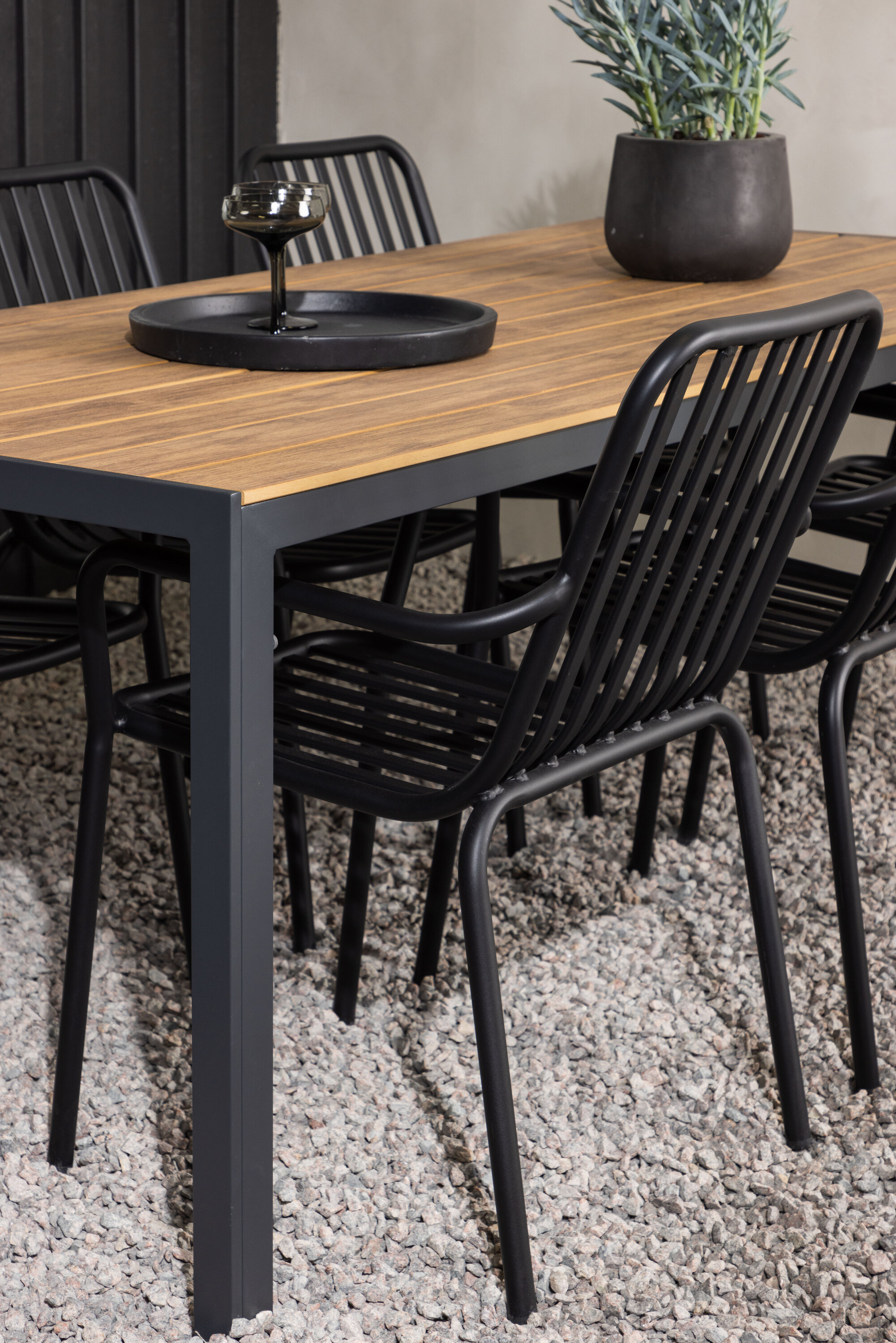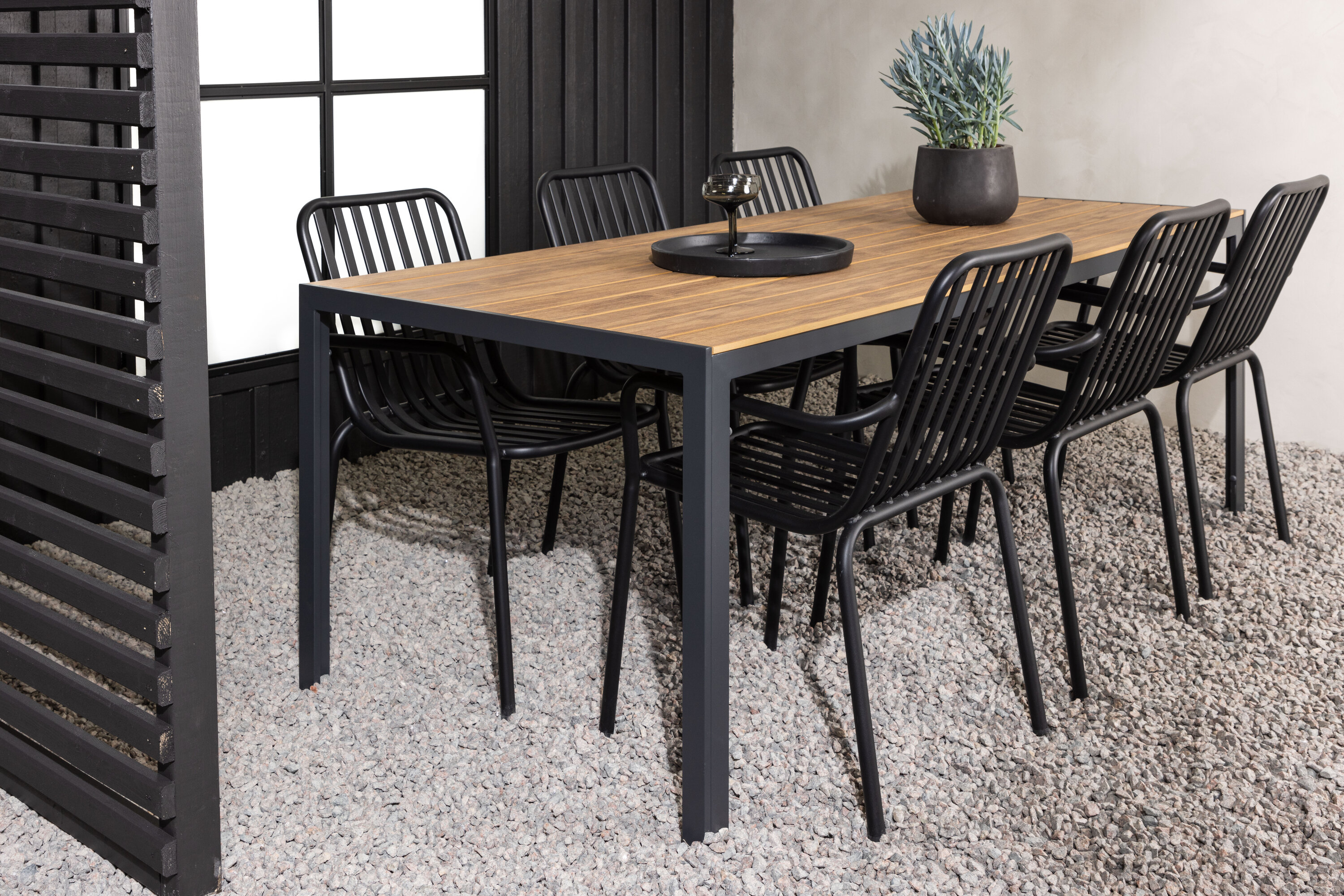 Looge oma terrassile trendikas pilgupüüdja koos sobiva söögigrupiga! Meie ristkülikukujuline söögilaud Break on klassikalise põhjamaise disainiga sirge kujuga, vineerist lauaplaadi ja mustast alumiiniumist lauajalad. Siin on stiilne kombinatsioon Pekingi sarja söögitoolidega. Tooli soonik disain ja tahmane must värv muudavad selle nii modernseks kui ka ajatuks. Valmistatud alumiiniumist, kerge kaal, mis muudab selle hõlpsaks liigutamiseks ja integreeritud käetoed lisamugavuse tagamiseks. Siin saate istuda pikka aega ja nautida oma terrassi! Laua mõõdud: 200x90cm.