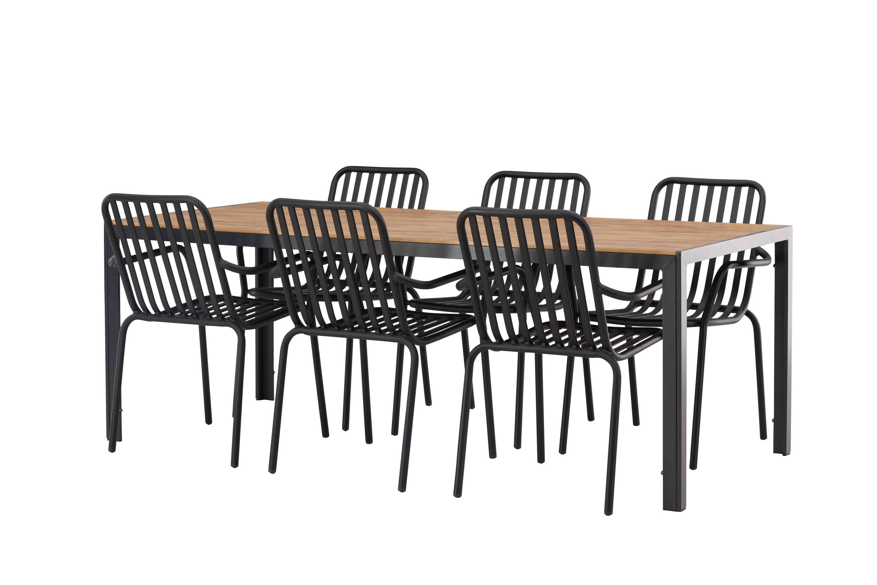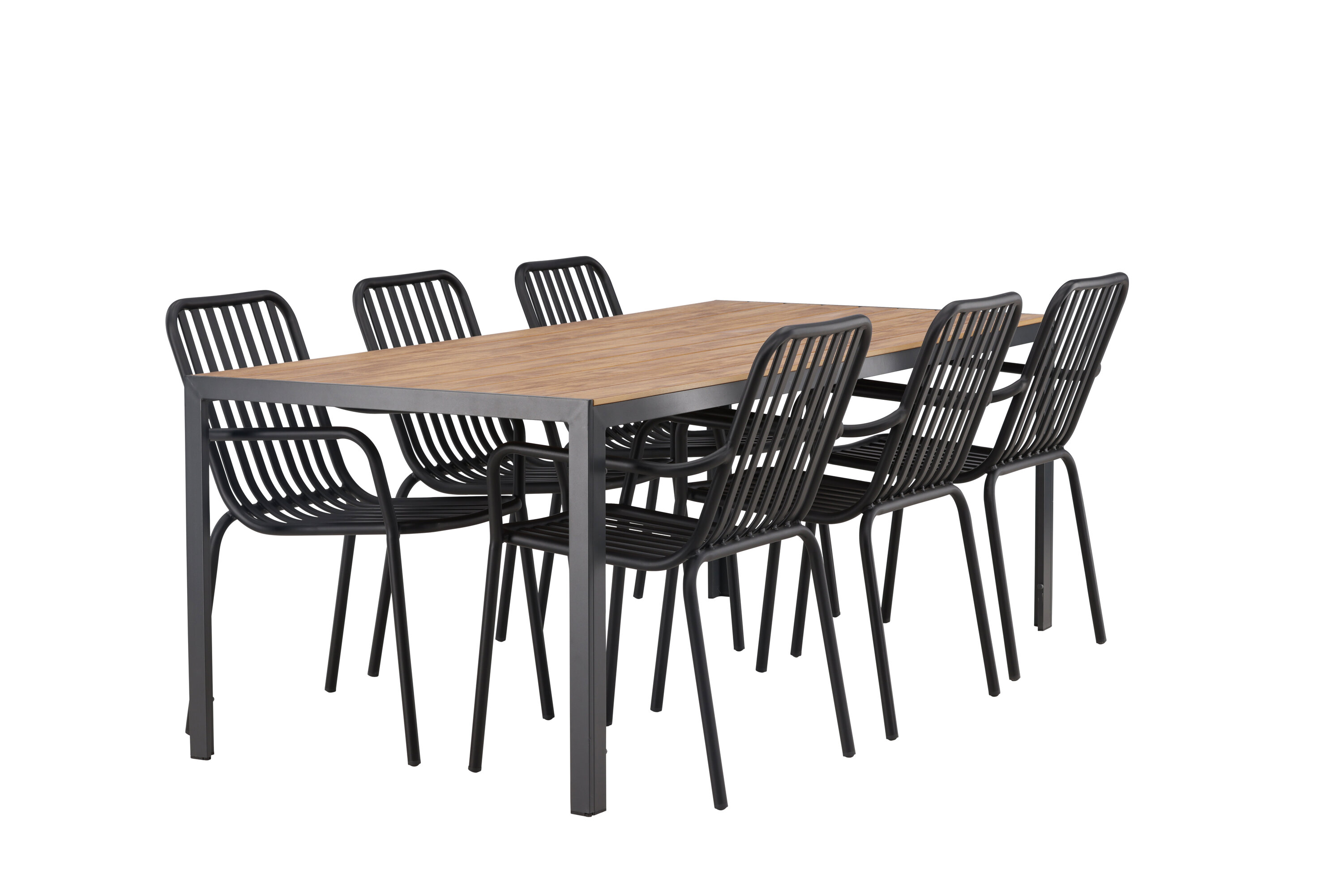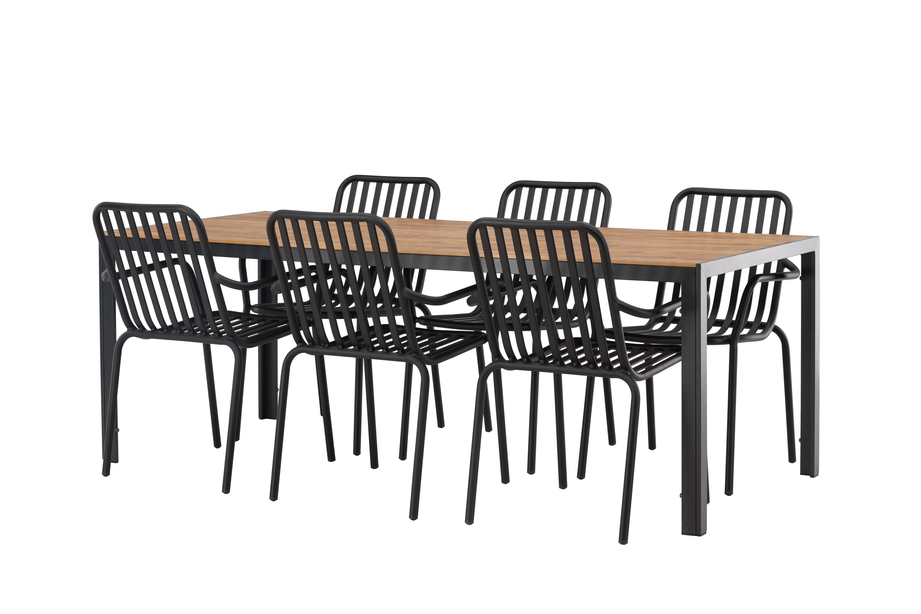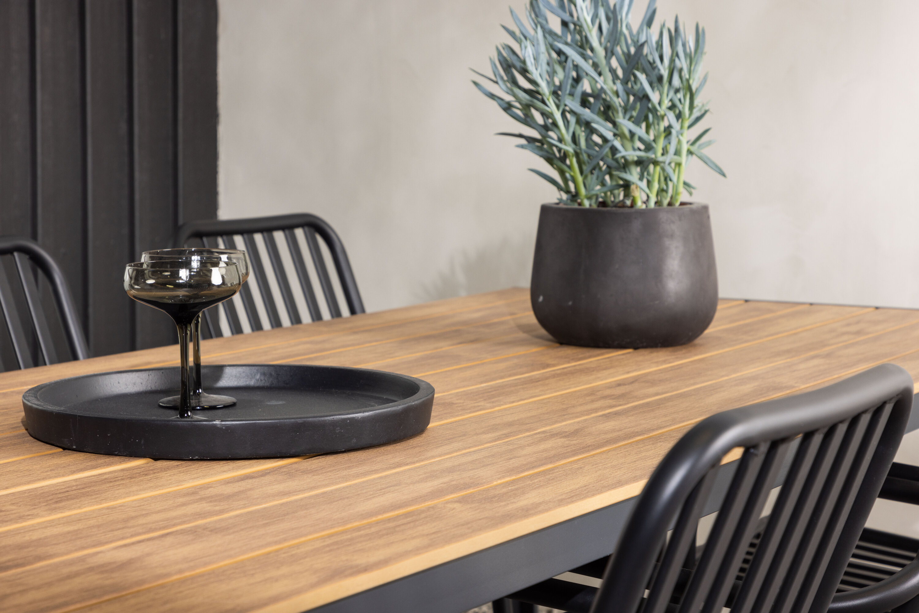 Looge oma terrassile trendikas pilgupüüdja koos sobiva söögigrupiga! Meie ristkülikukujuline söögilaud Break on klassikalise põhjamaise disainiga sirge kujuga, vineerist lauaplaadi ja mustast alumiiniumist lauajalad. Siin on stiilne kombinatsioon Pekingi sarja söögitoolidega. Tooli soonik disain ja tahmane must värv muudavad selle nii modernseks kui ka ajatuks. Valmistatud alumiiniumist, kerge kaal, mis muudab selle hõlpsaks liigutamiseks ja integreeritud käetoed lisamugavuse tagamiseks. Siin saate istuda pikka aega ja nautida oma terrassi! Laua mõõdud: 200x90cm.