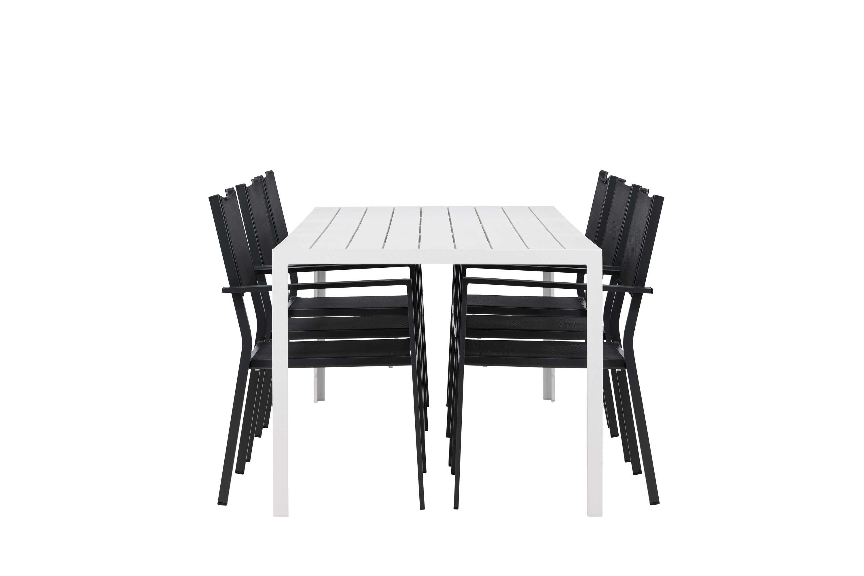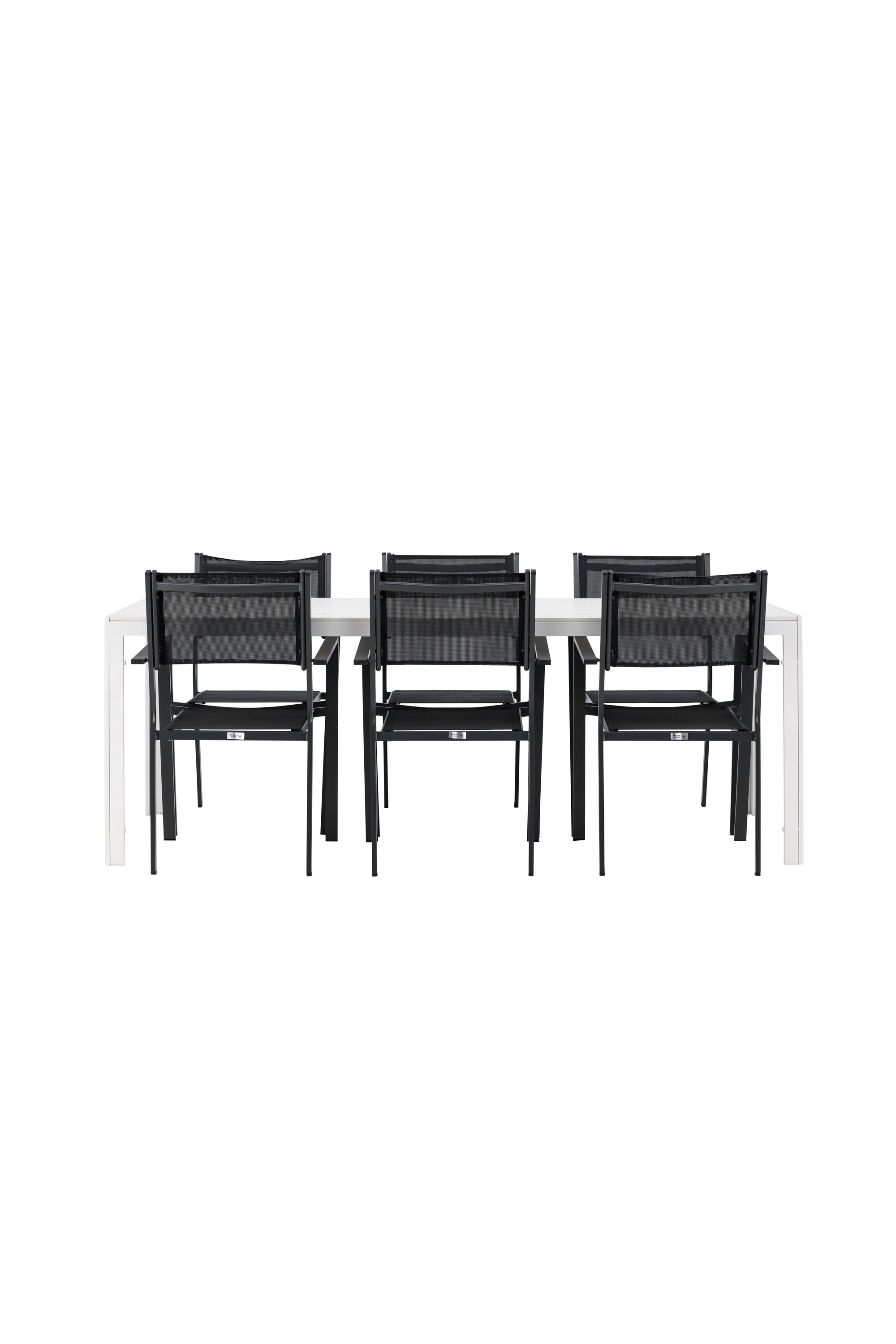 Kuue elegantse Copacabana tooli ja võluva Break lauaga lisab see söögikomplekt teie väliruumi moodsa hõngu. Musta värvi ja mugavate tekstiilist istmetega toolid ühendavad stiili suurepäraselt mugavusega. Alumiiniumraam tagab stabiilsuse disainis järeleandmisi tegemata.