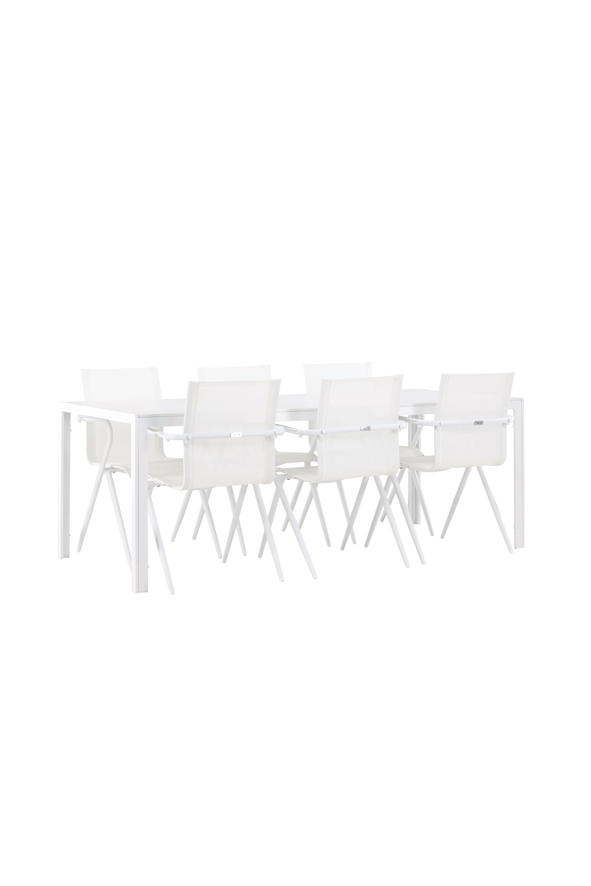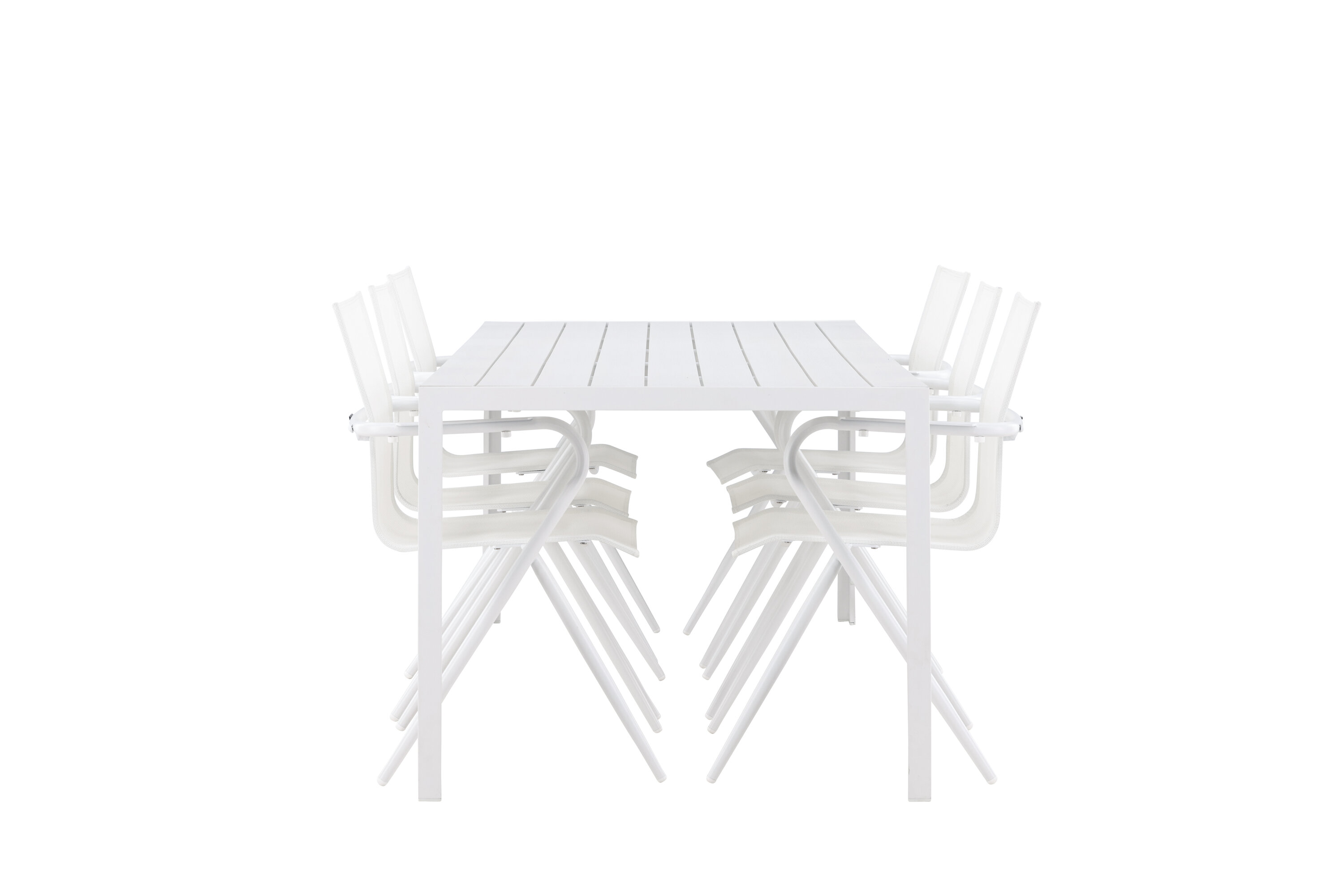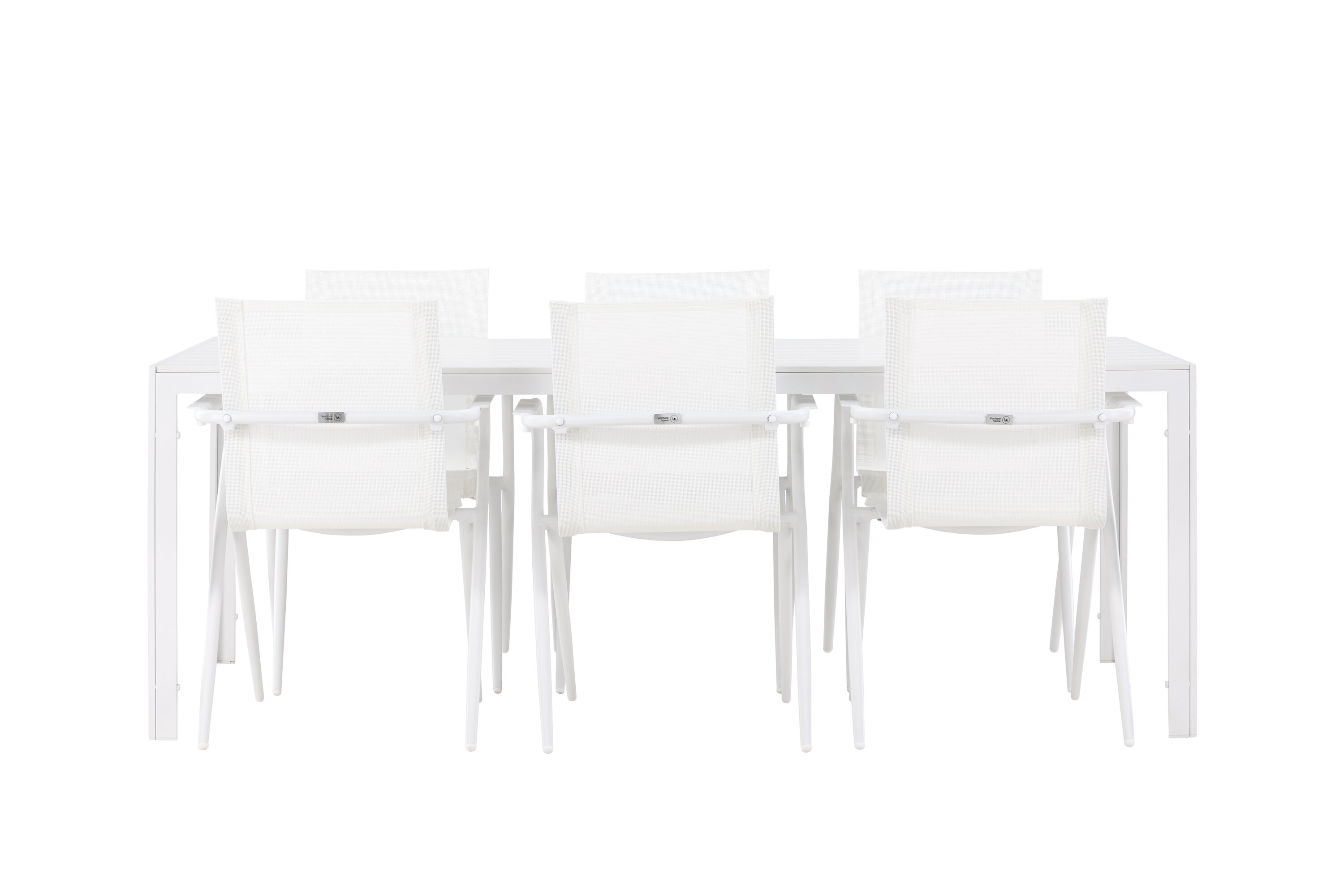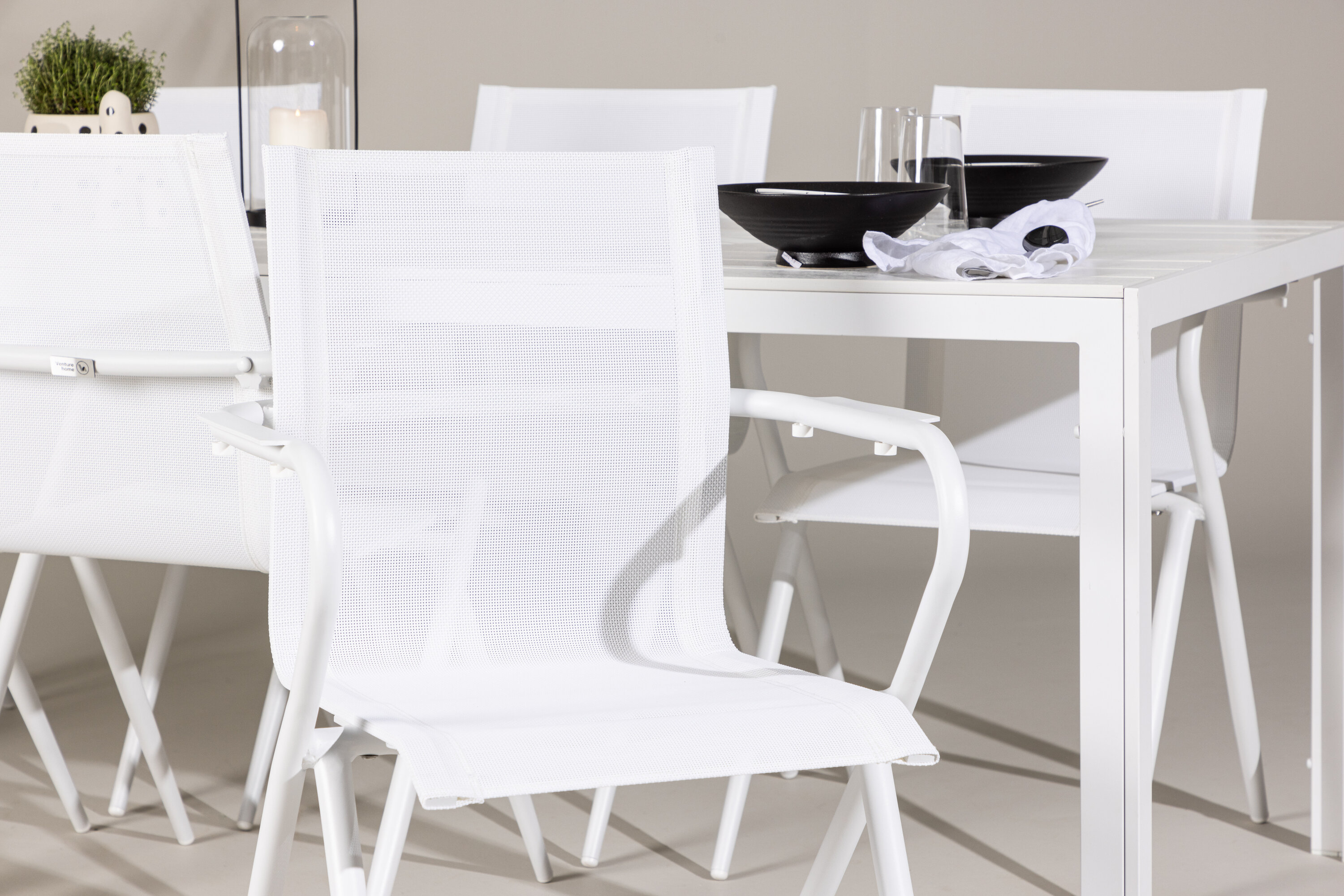 Alina toolid, mis on oma valges värvitoonis elegantsed, on ehitatud vastu pidama õues kasutamiseks, ühendades lihtsuse elegantsiga. Nende istmed on valmistatud vastupidavast tekstiilmaterjalist ja raam on valmistatud alumiiniumist, pakkudes ideaalset tasakaalu stiili ja vastupidavuse vahel.