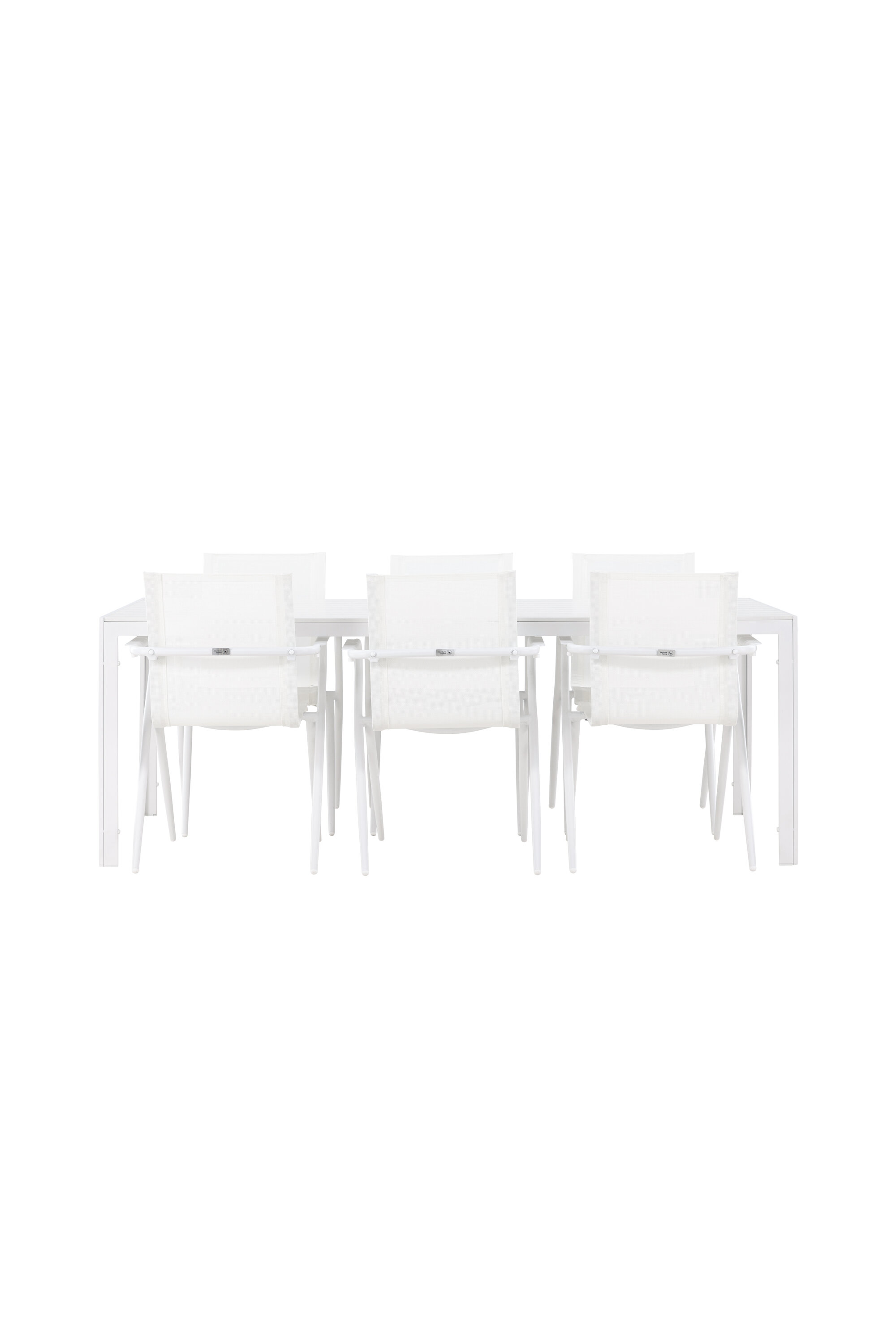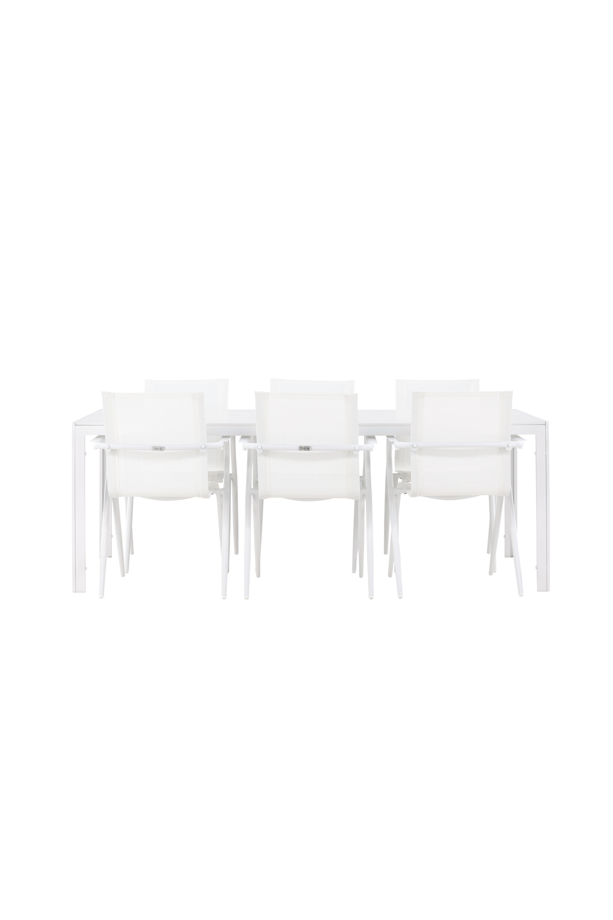 Avastage täiuslik stiili ja funktsionaalsuse kombinatsioon meie eksklusiivse söögikomplektiga, mis koosneb kuue elegantse Alina tooli ja stiilse Break lauaga. See silmapaistev ansambel on loodud pakkuma teile kutsuvat õhkkonda koosviibimisteks sõprade ja perega teie väliruumis.