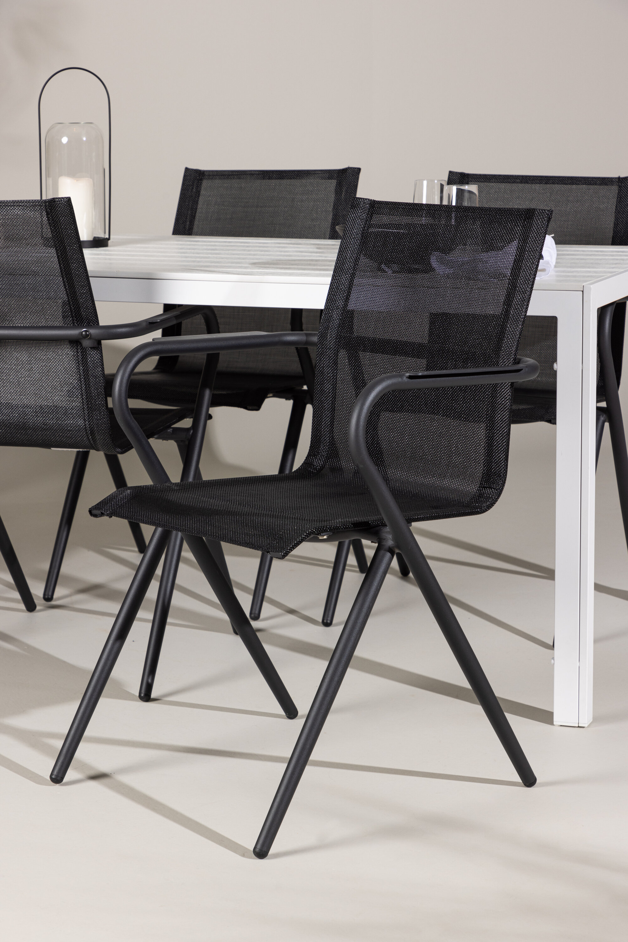 Alina toolid oma elegantse musta disaini ja vastupidava tekstiilist istmega pakuvad nii stiili kui ka mugavust. Toolide alumiiniumraam tagab stabiilsuse ja sulandub sujuvalt väliskeskkonda.