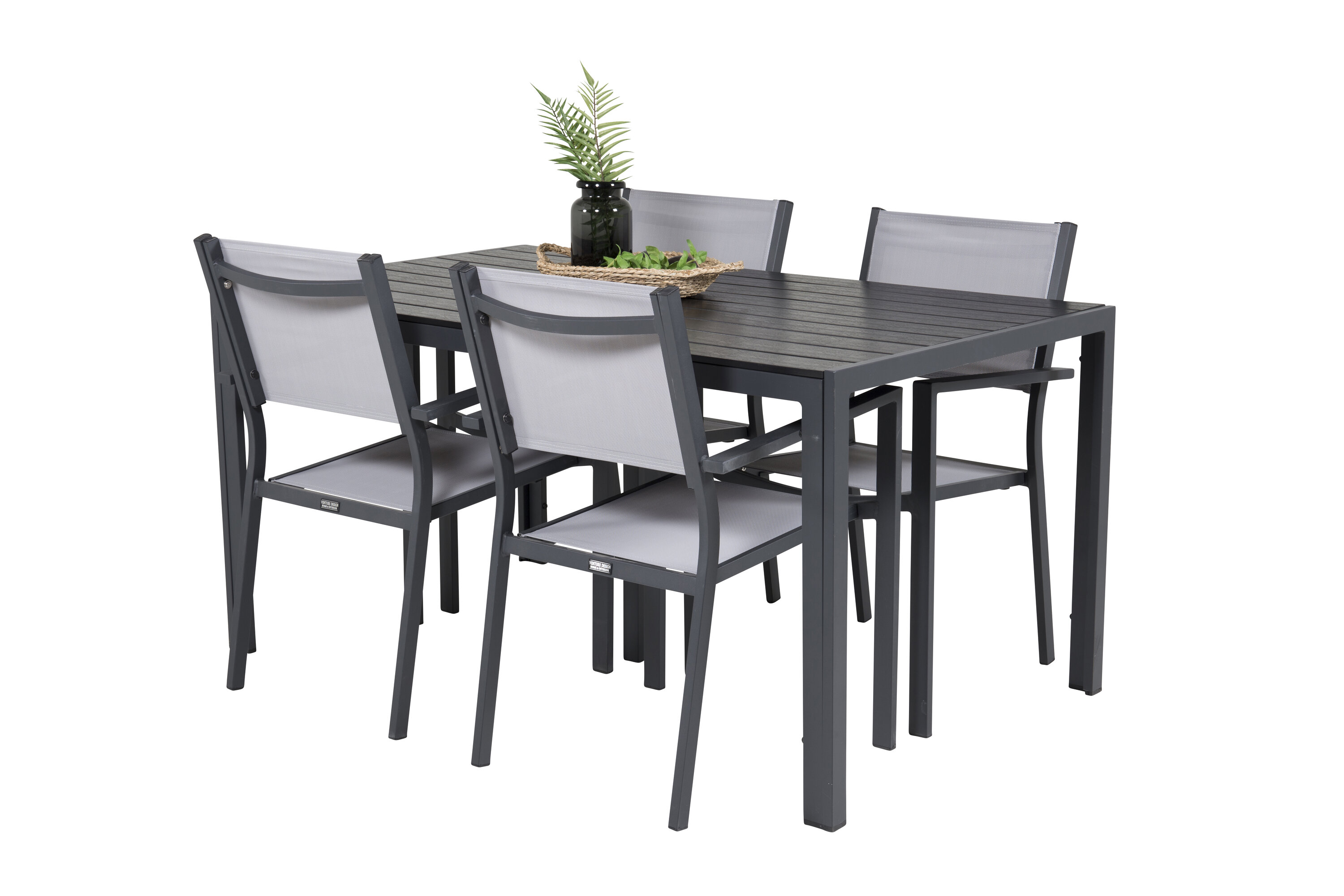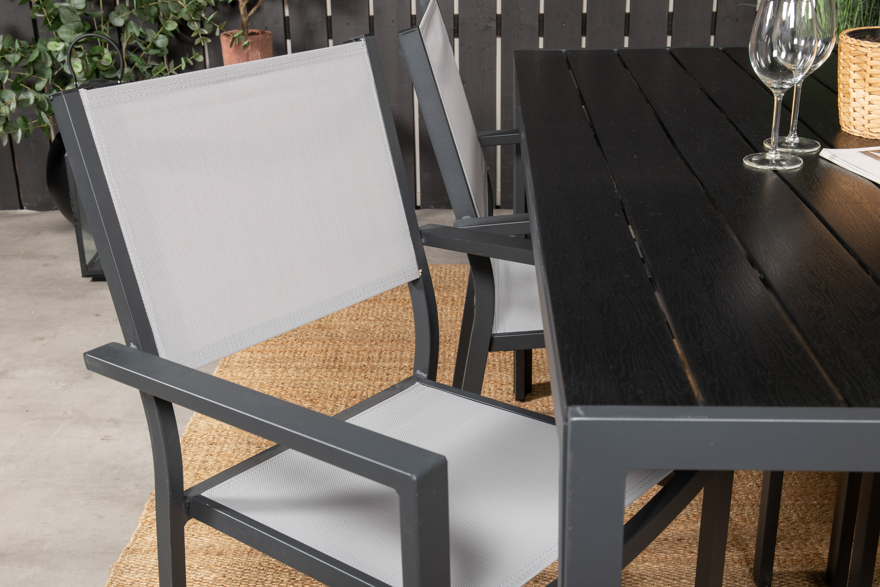 Kaasaegne hubase ja peretundega toidugrupp! Meie ilus söögilaud Break must puidust lauaplaat on suurepäraselt ühendatud meie söögitoolidega Copacabana. Sisusta õues või rõdul ja kogu pere päikeselisele suvelõunale sellesse pilkupüüdvasse toidugruppi.