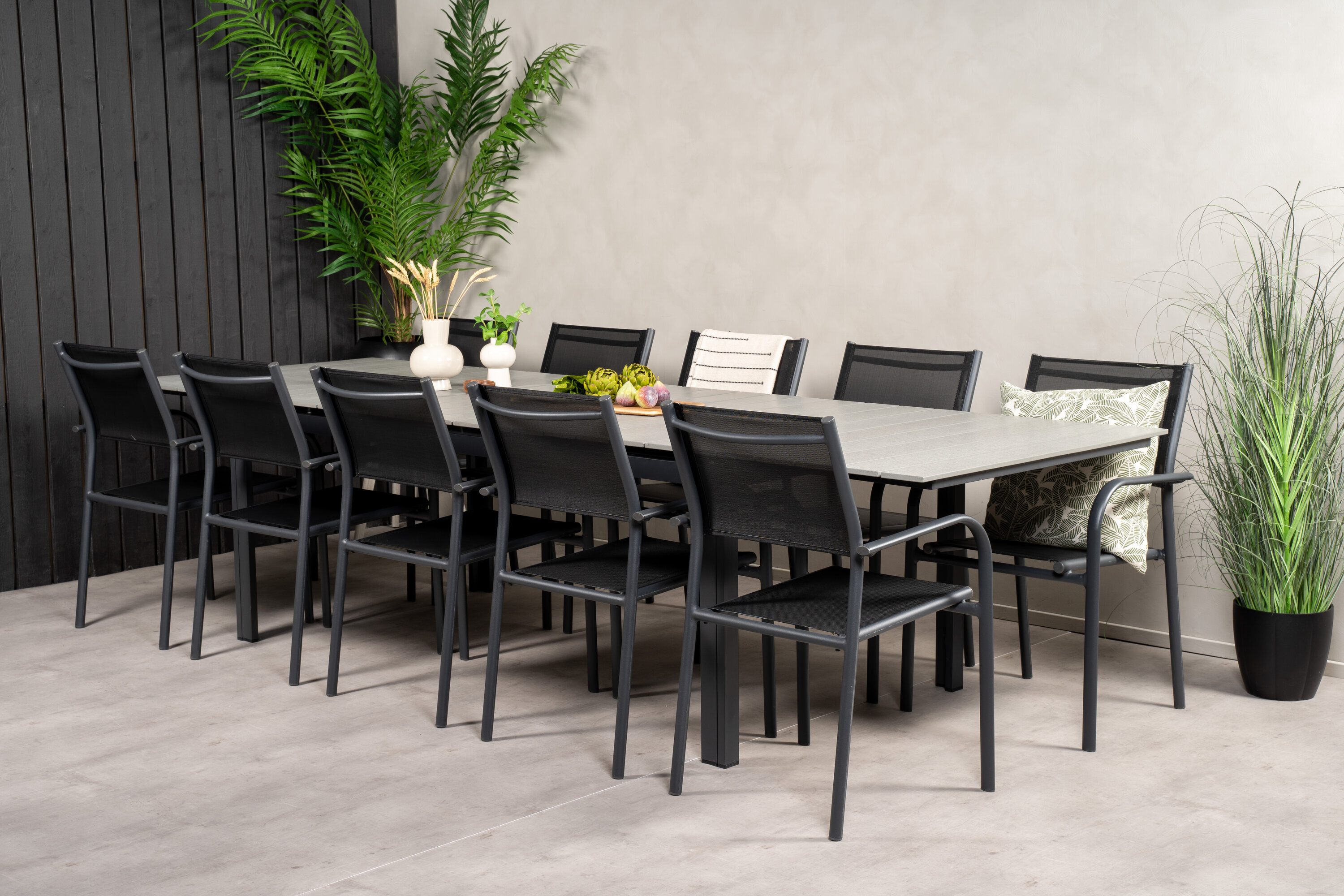 Pikendatav söögilaud Tasaneb stiilse ja kaasaegse disainiga. Meie elegantsed söögitoolid Santorini on lauaga kaasas. Siit saate kombinatsiooni, mis loob õues või rõdul sooja, loomuliku ja kutsuva tunde. Laiendage oma õhtusöögikutseid ja ärge muretsege, et kõigil on ruumi!
